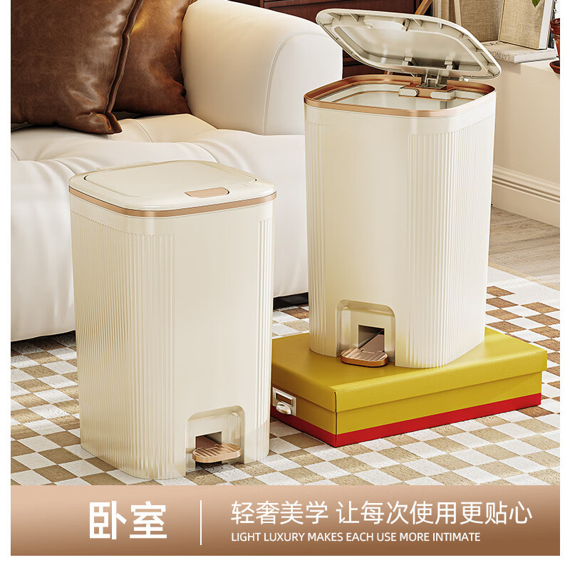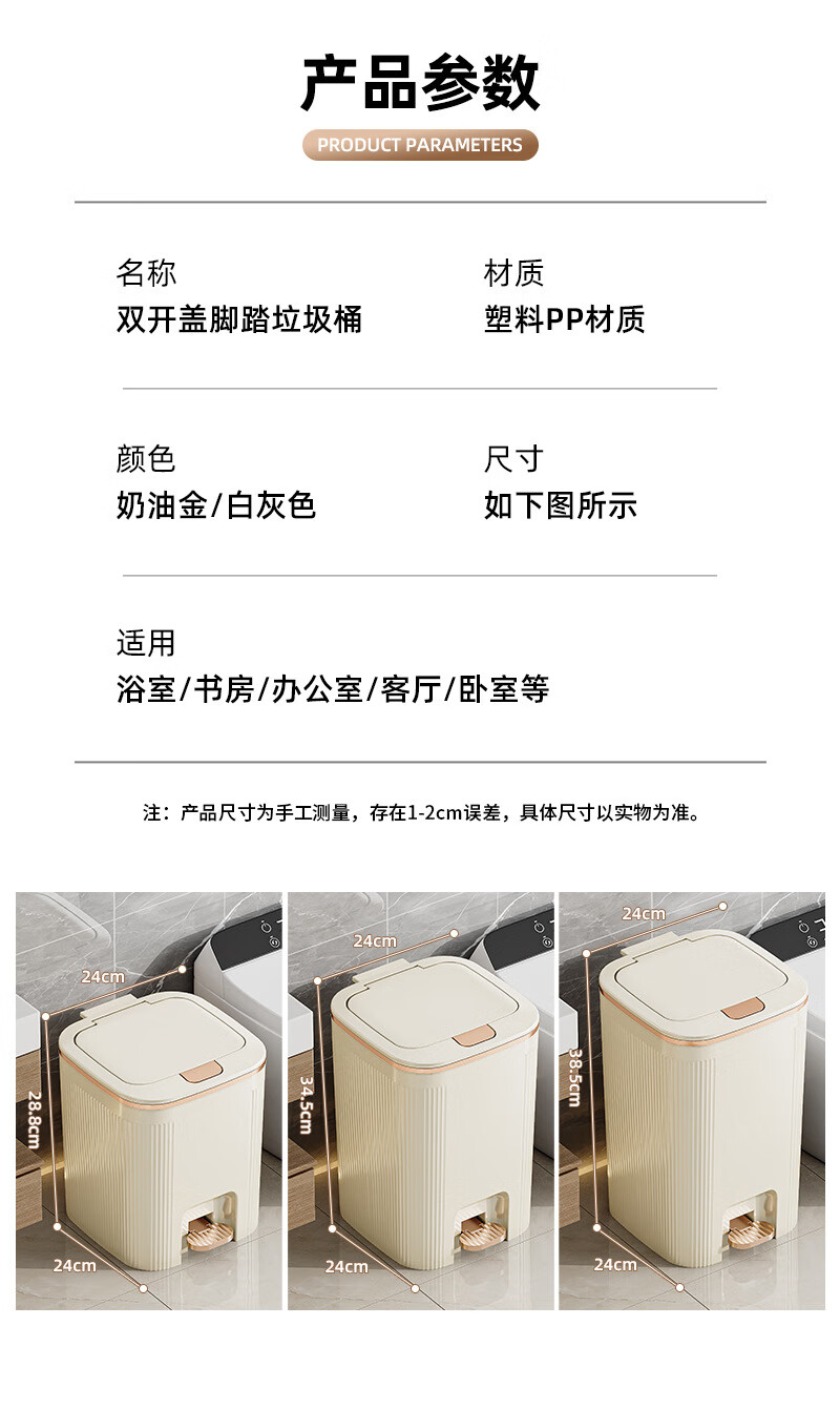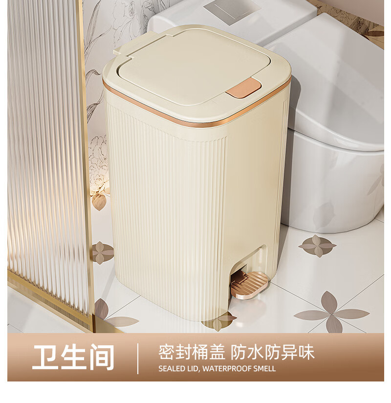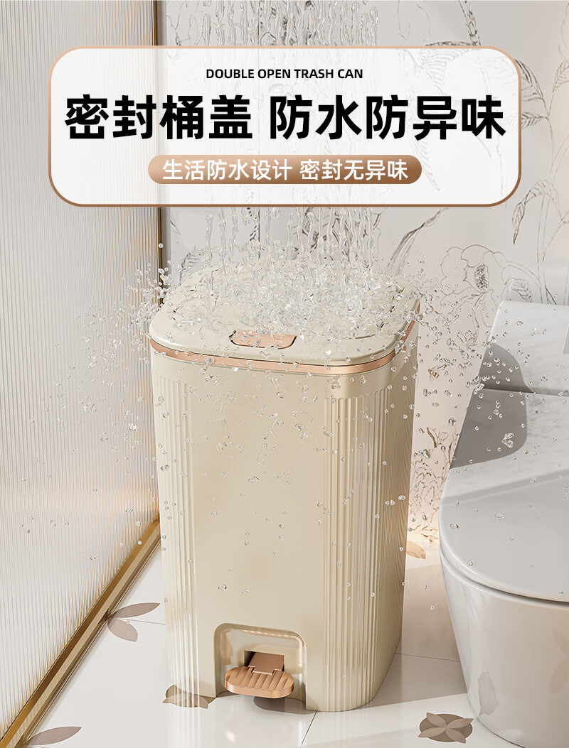 沐鸣双开盖垃圾桶防水浴室客厅家用垃圾桶简约风大容量按压脚踏带盖 白灰色-特大号