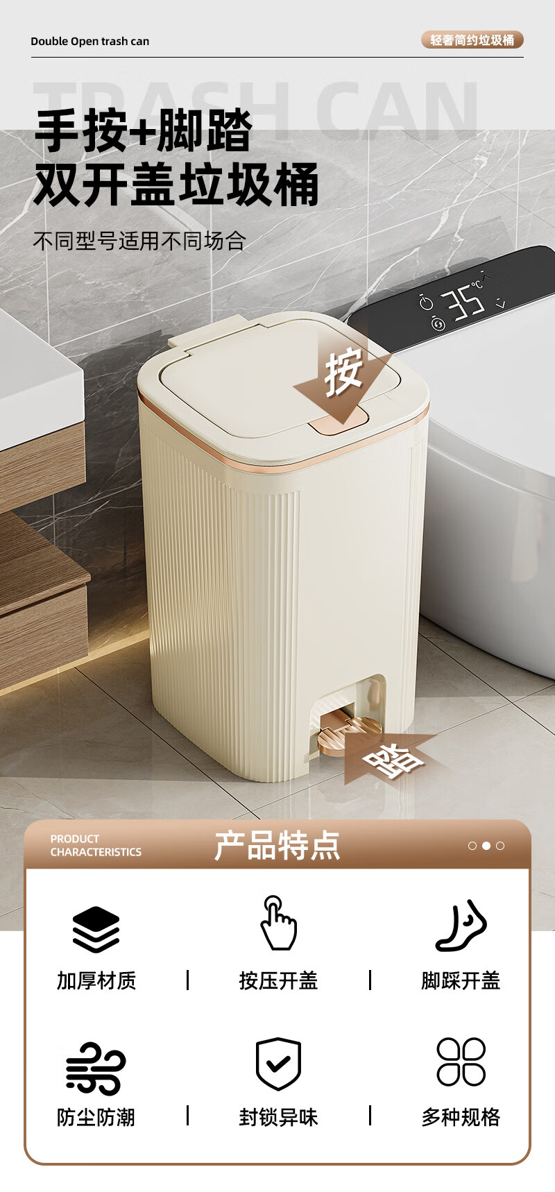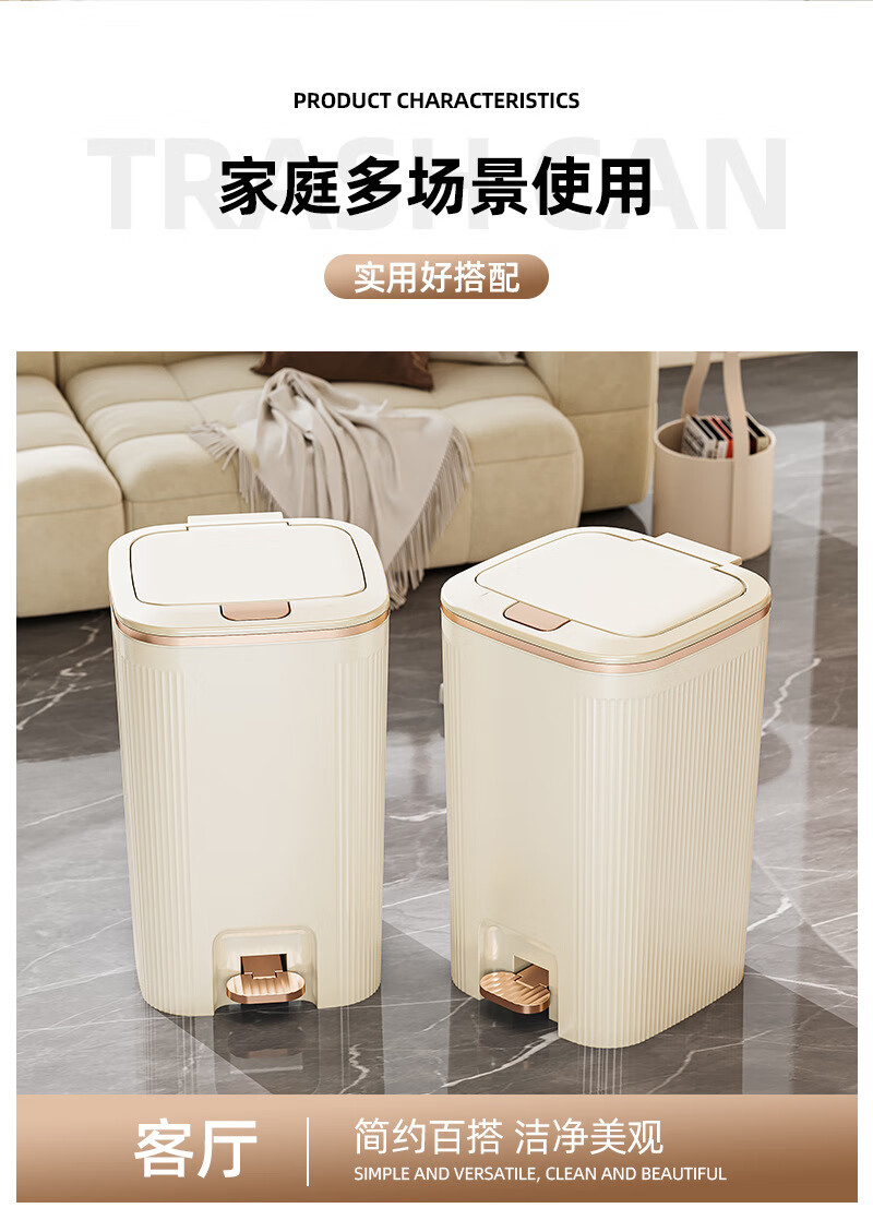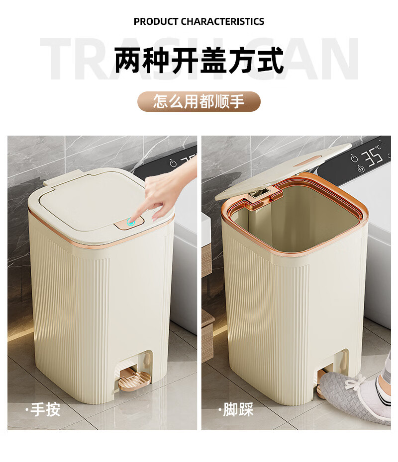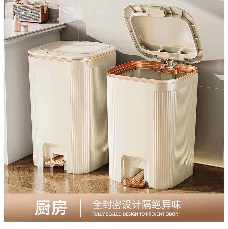 沐鸣双开盖垃圾桶防水浴室客厅家用垃圾桶简约风大容量按压脚踏带盖 白灰色-特大号