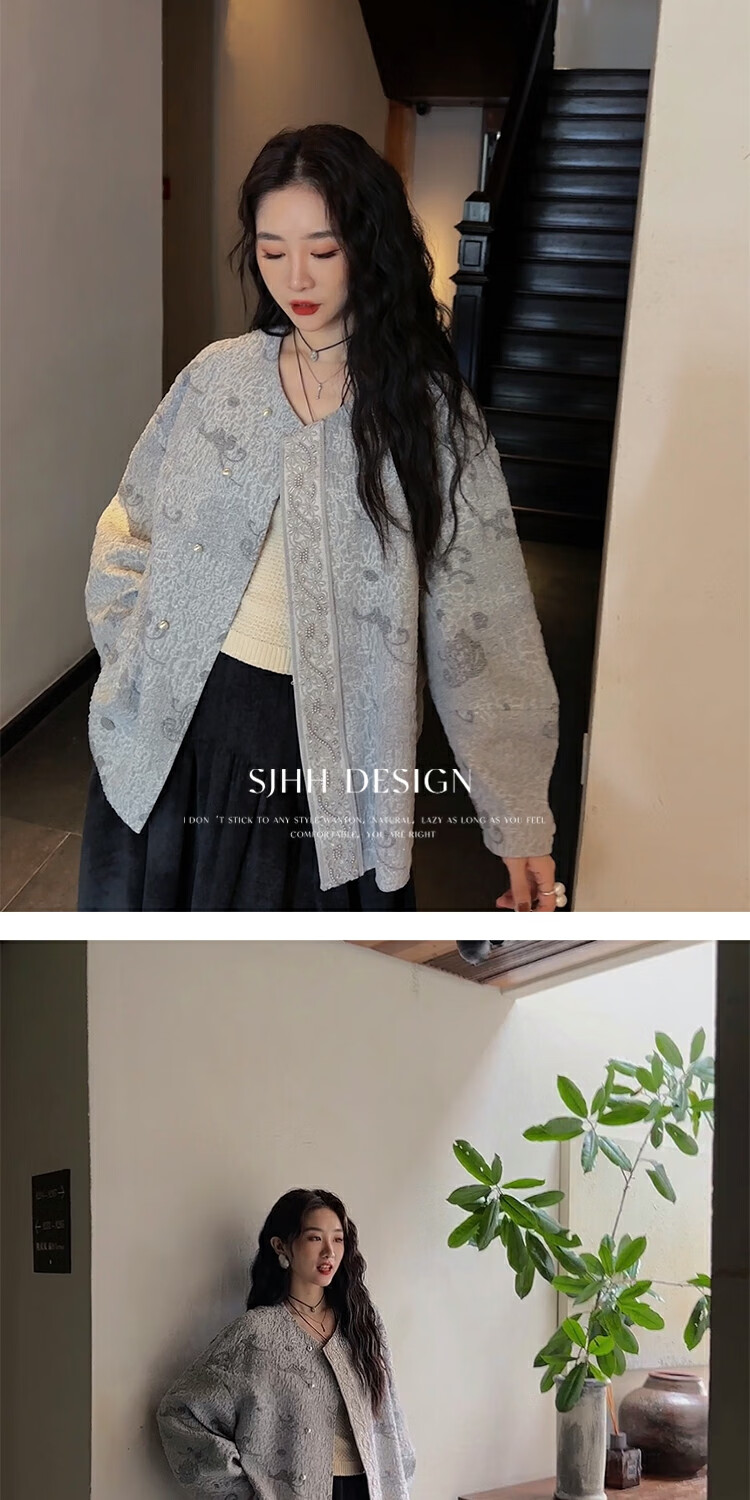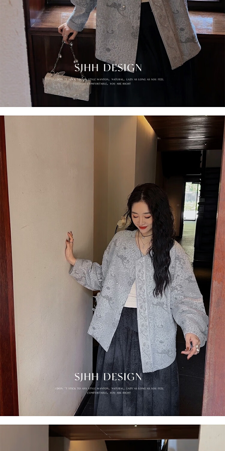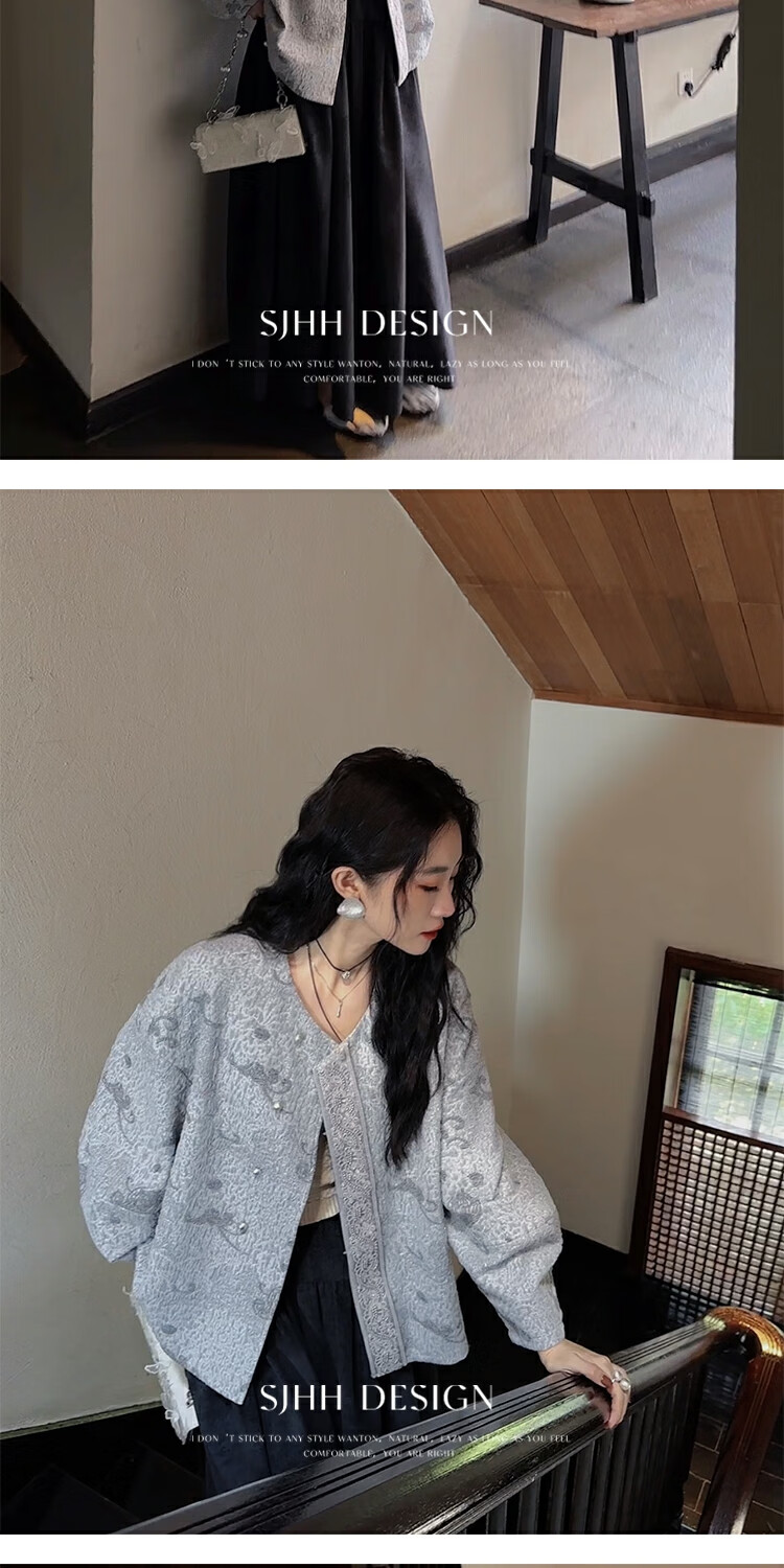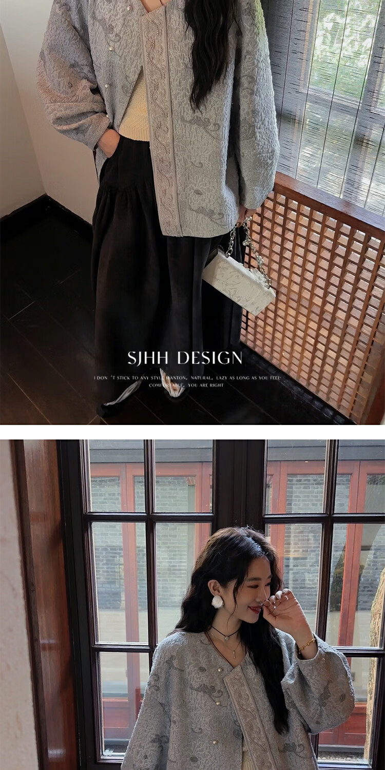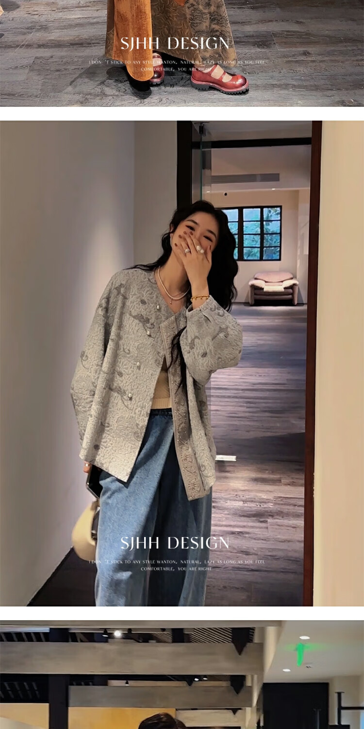 三吉黑花鹦鹉梨严选【凛冬】新中式国风外套女棒球服独特超好看SJB240261 浅灰 M