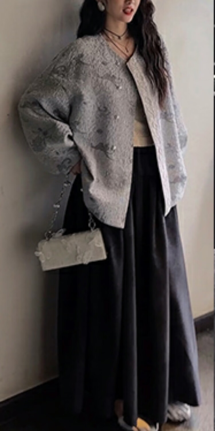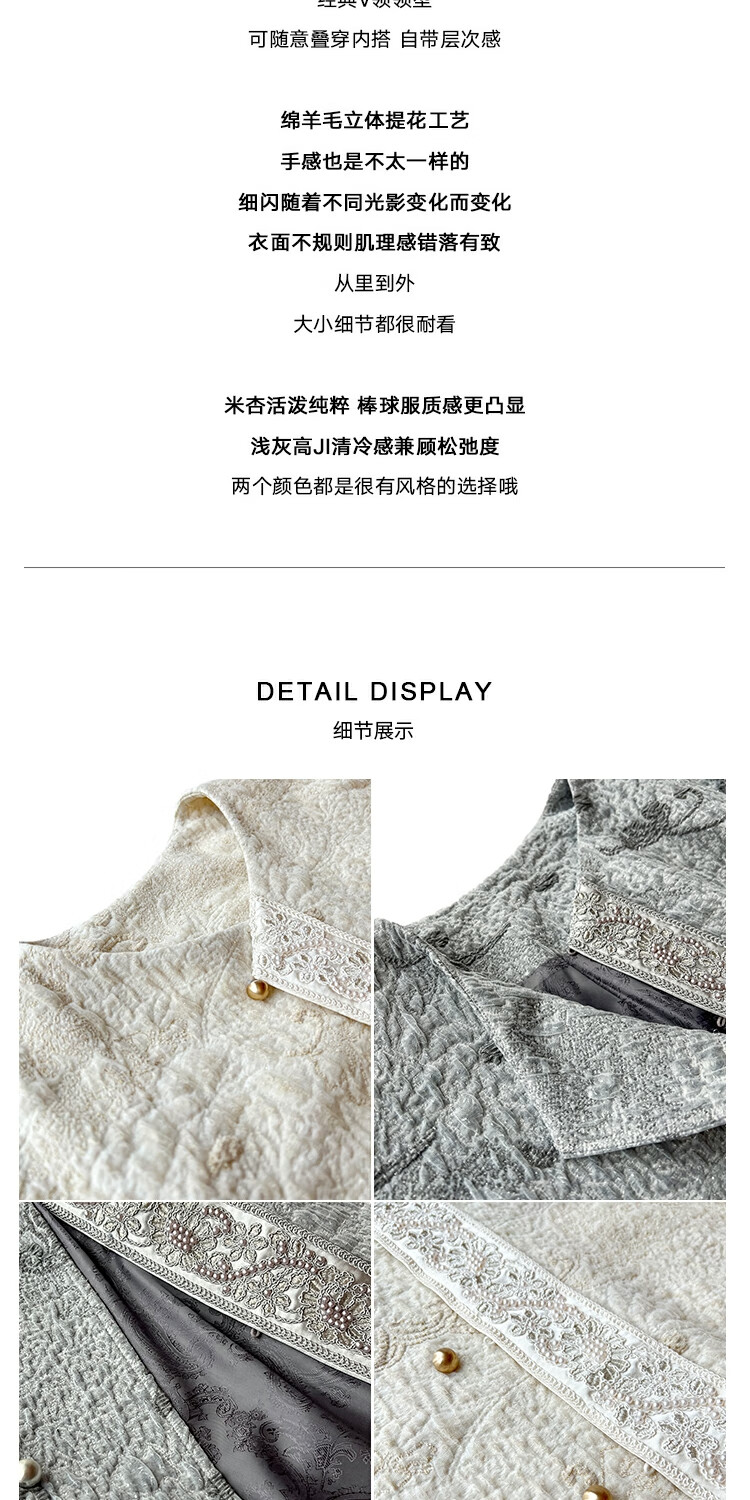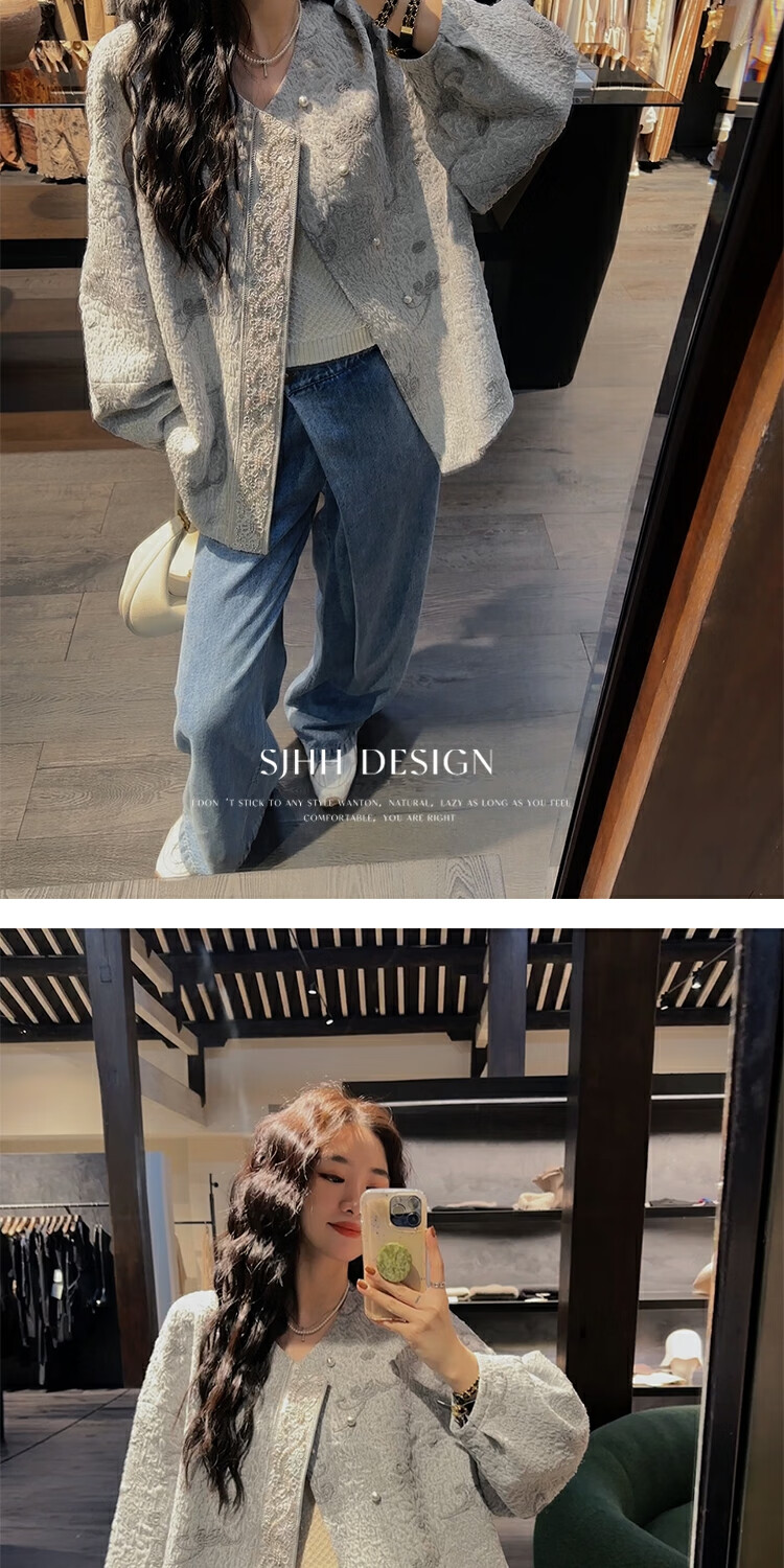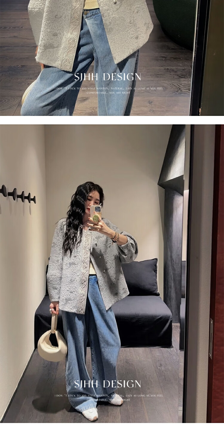 三吉黑花鹦鹉梨严选【凛冬】新中式国风外套女棒球服独特超好看SJB240261 浅灰 M