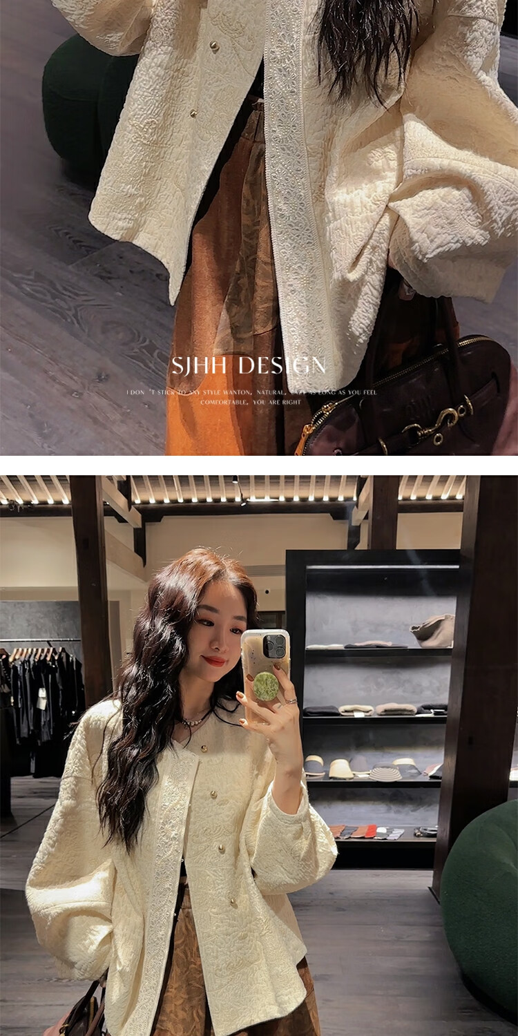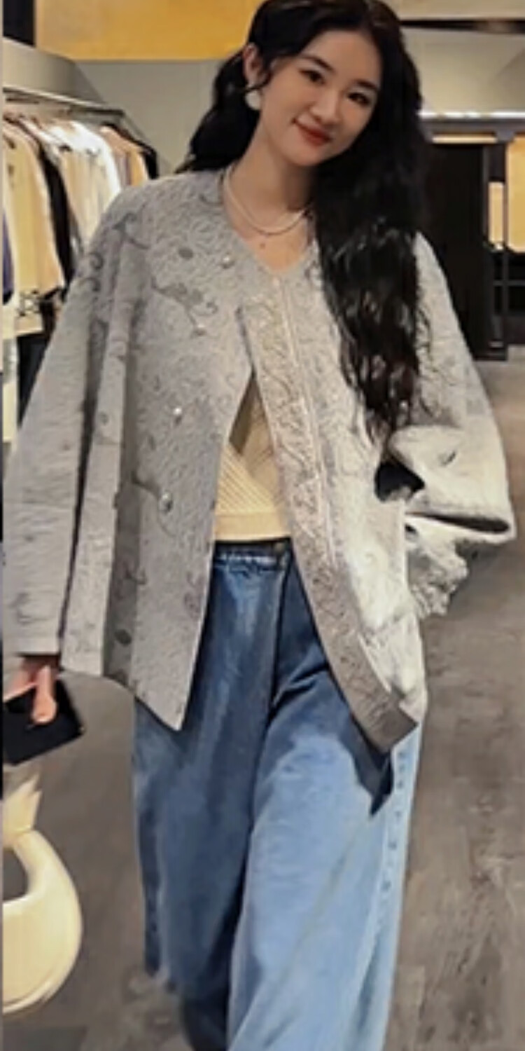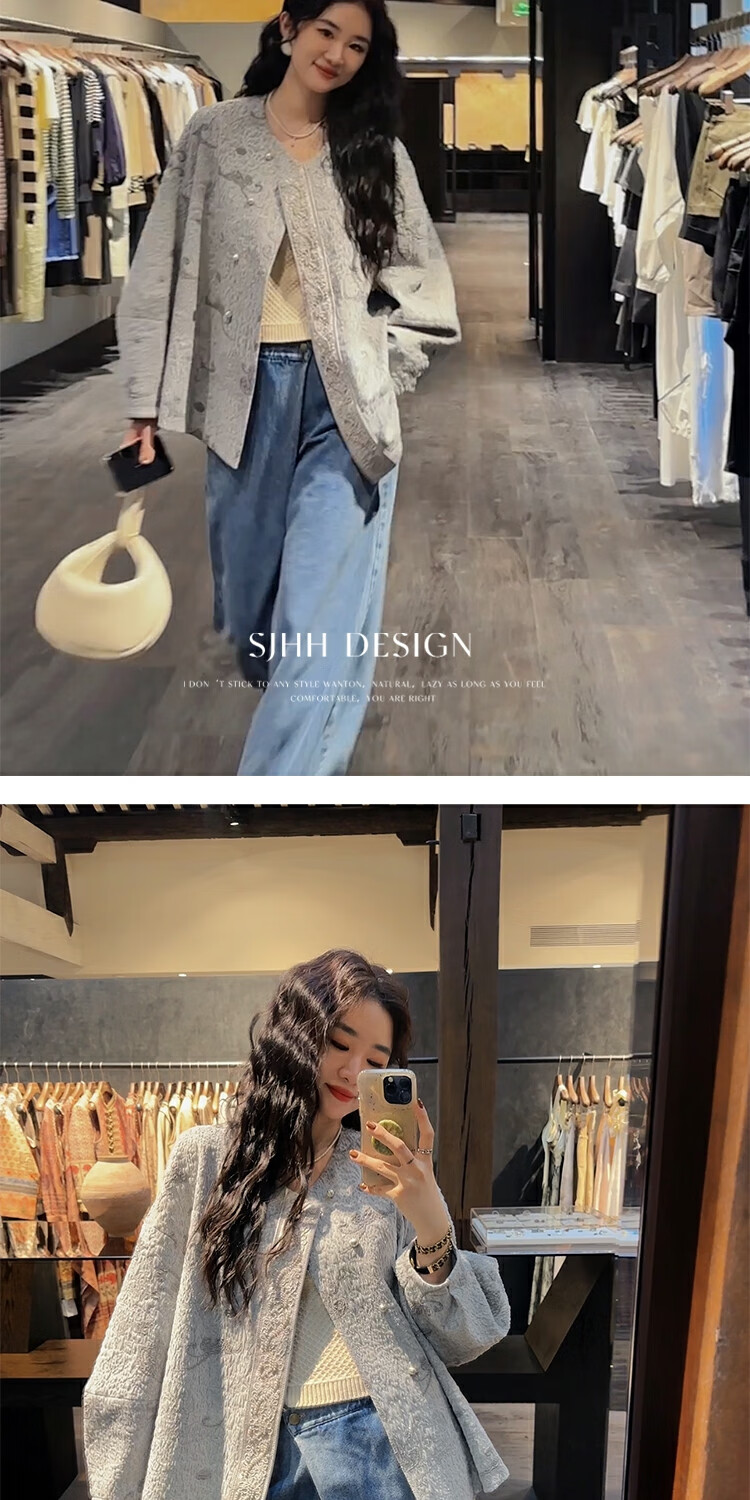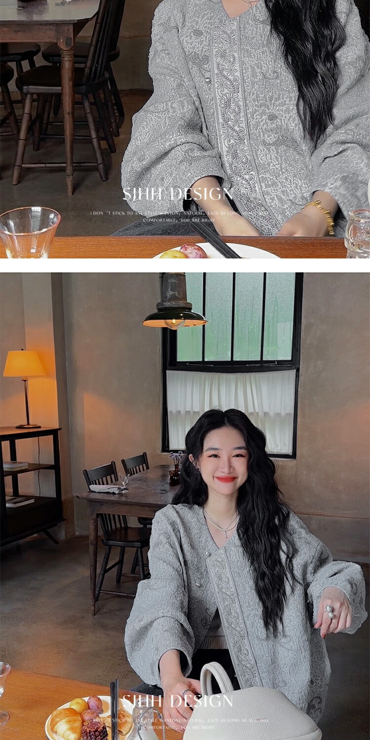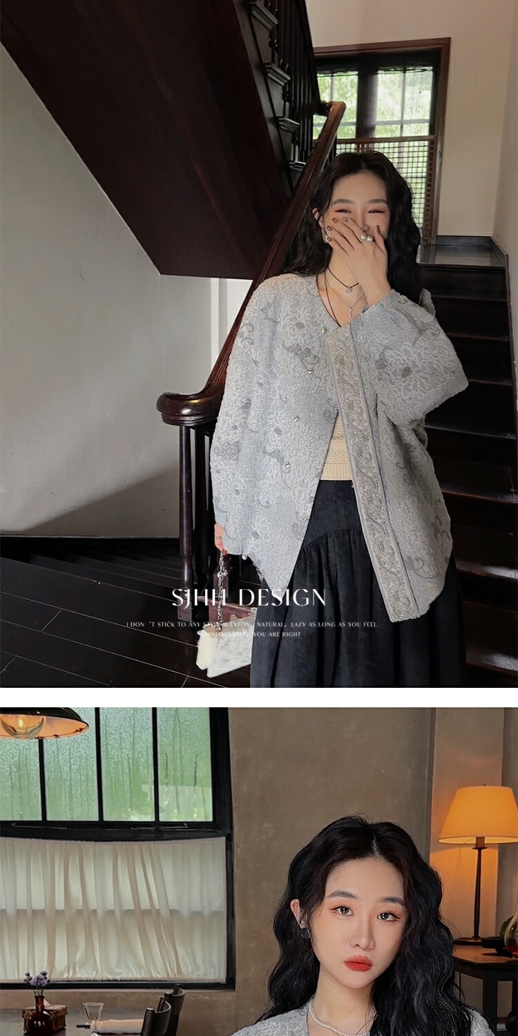 三吉黑花鹦鹉梨严选【凛冬】新中式国风外套女棒球服独特超好看SJB240261 浅灰 M