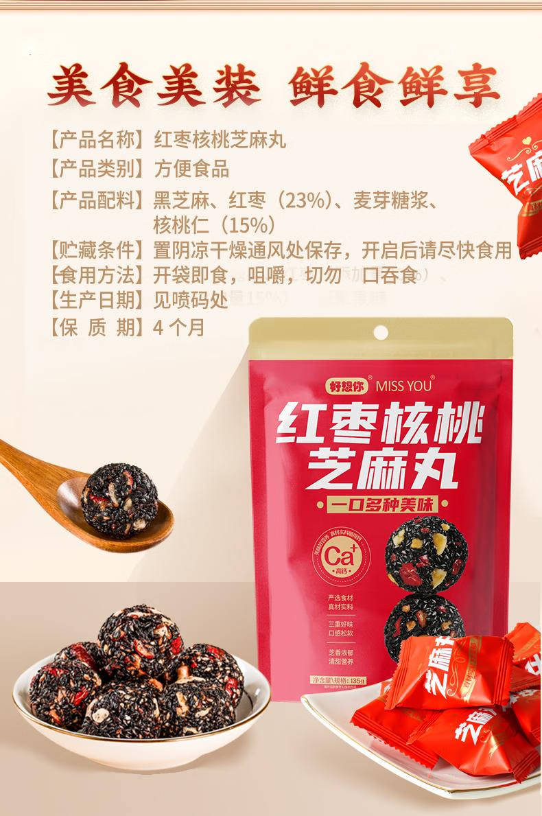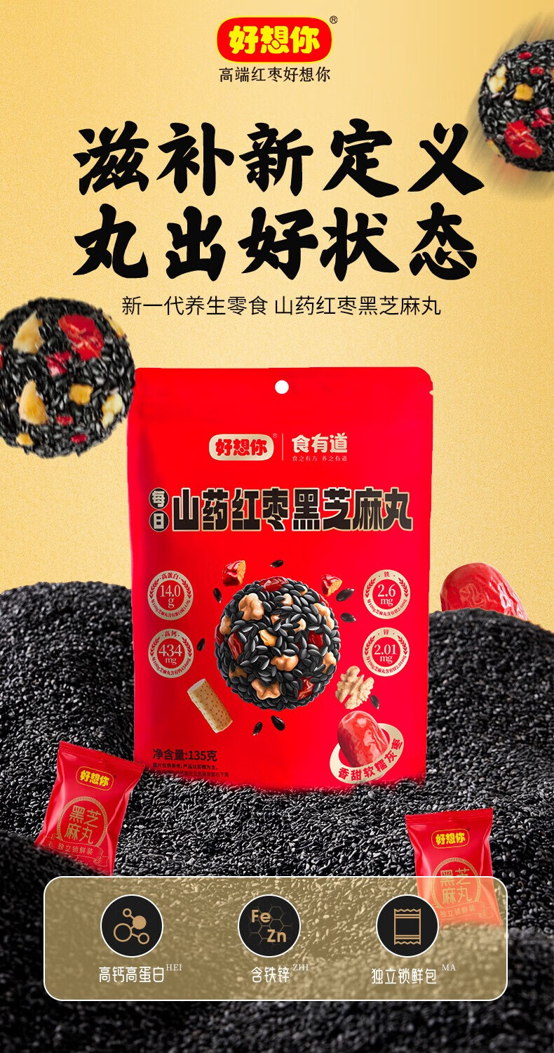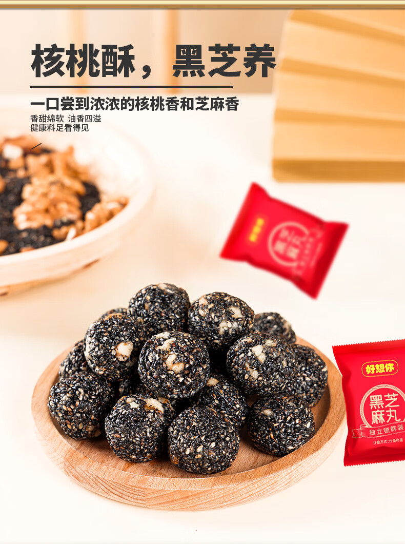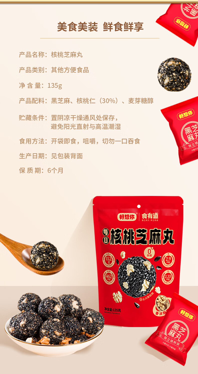 好想你芝麻丸135g红枣核桃芝麻软糕营养高钙熬夜追剧零食早餐丸子 135g红枣核桃芝麻丸*3袋