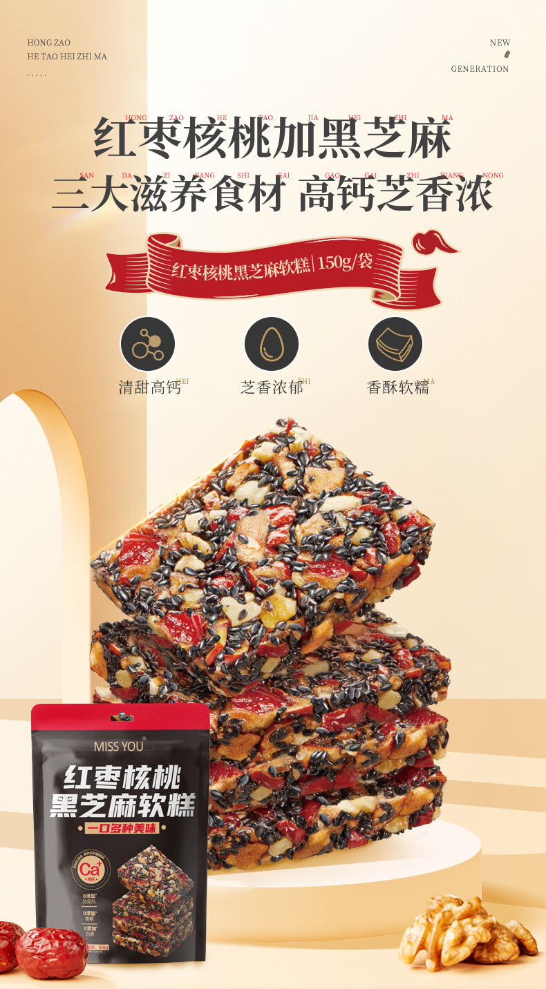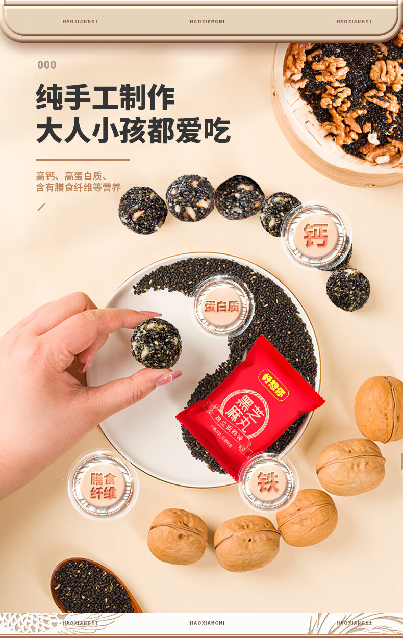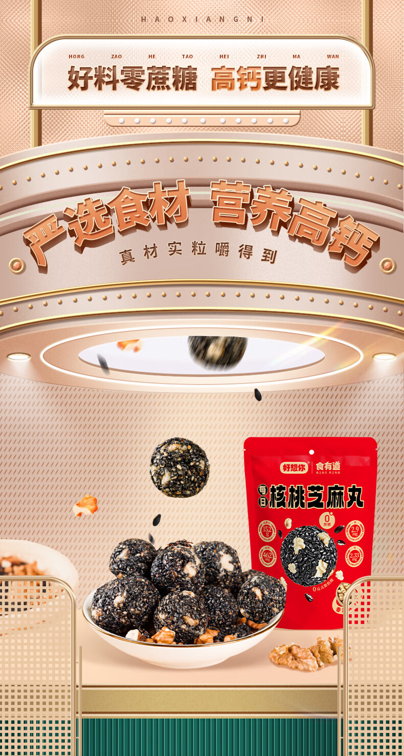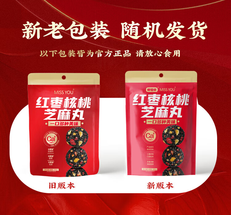 好想你芝麻丸135g红枣核桃芝麻软糕营养高钙熬夜追剧零食早餐丸子 135g红枣核桃芝麻丸*3袋