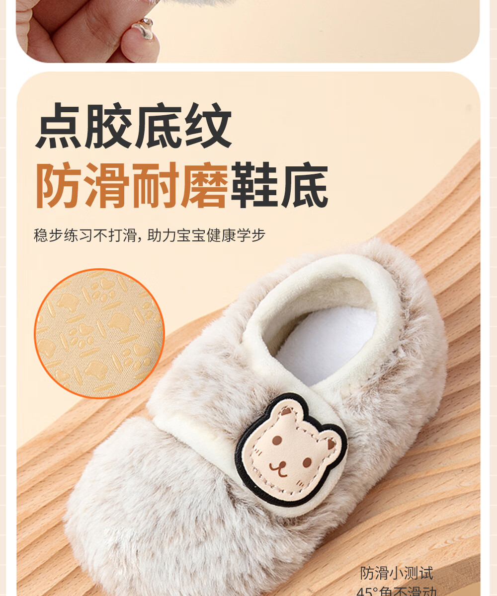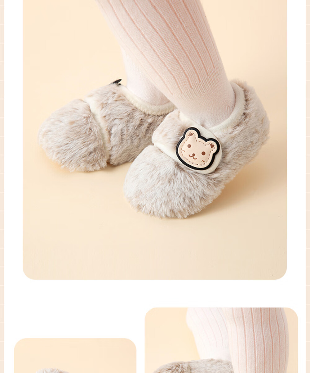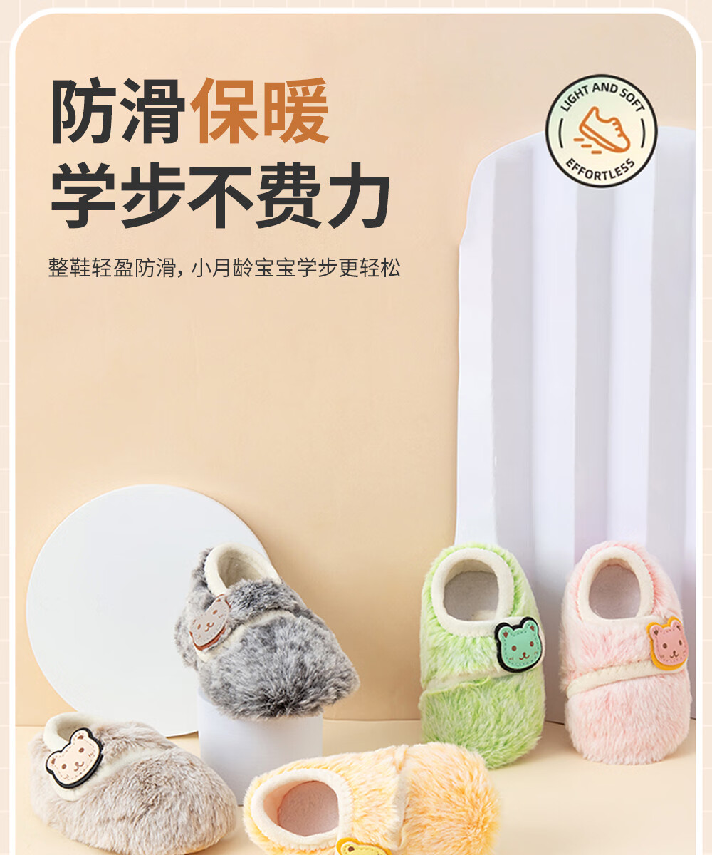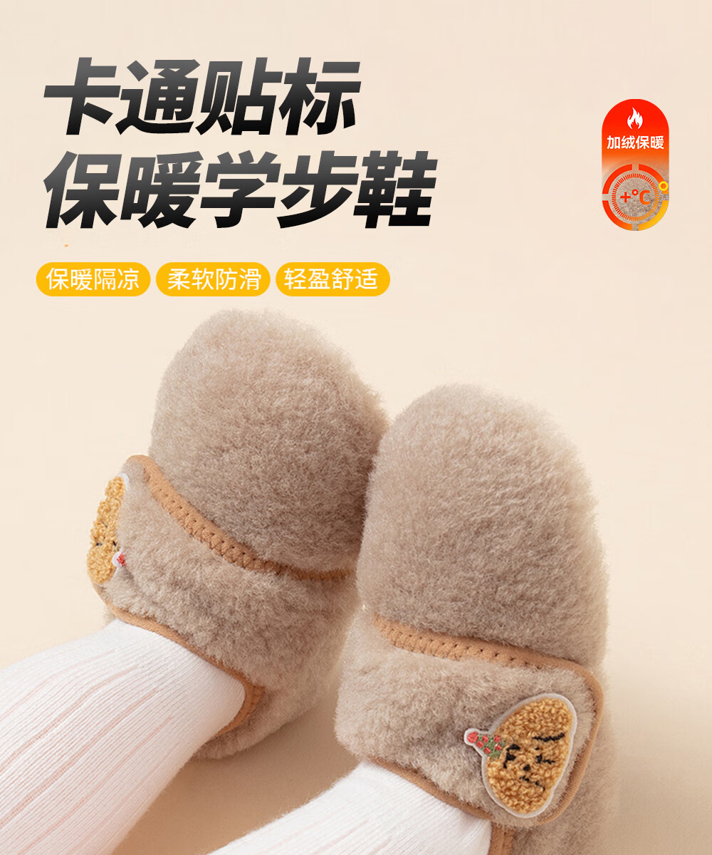 贝肽斯宝宝室内鞋新款婴儿鞋袜冬季学步鞋0-1岁保暖棉鞋防滑软底步前鞋 粉色 卡通标保暖步前鞋 13 cm(S码,建议脚长12-13cm)