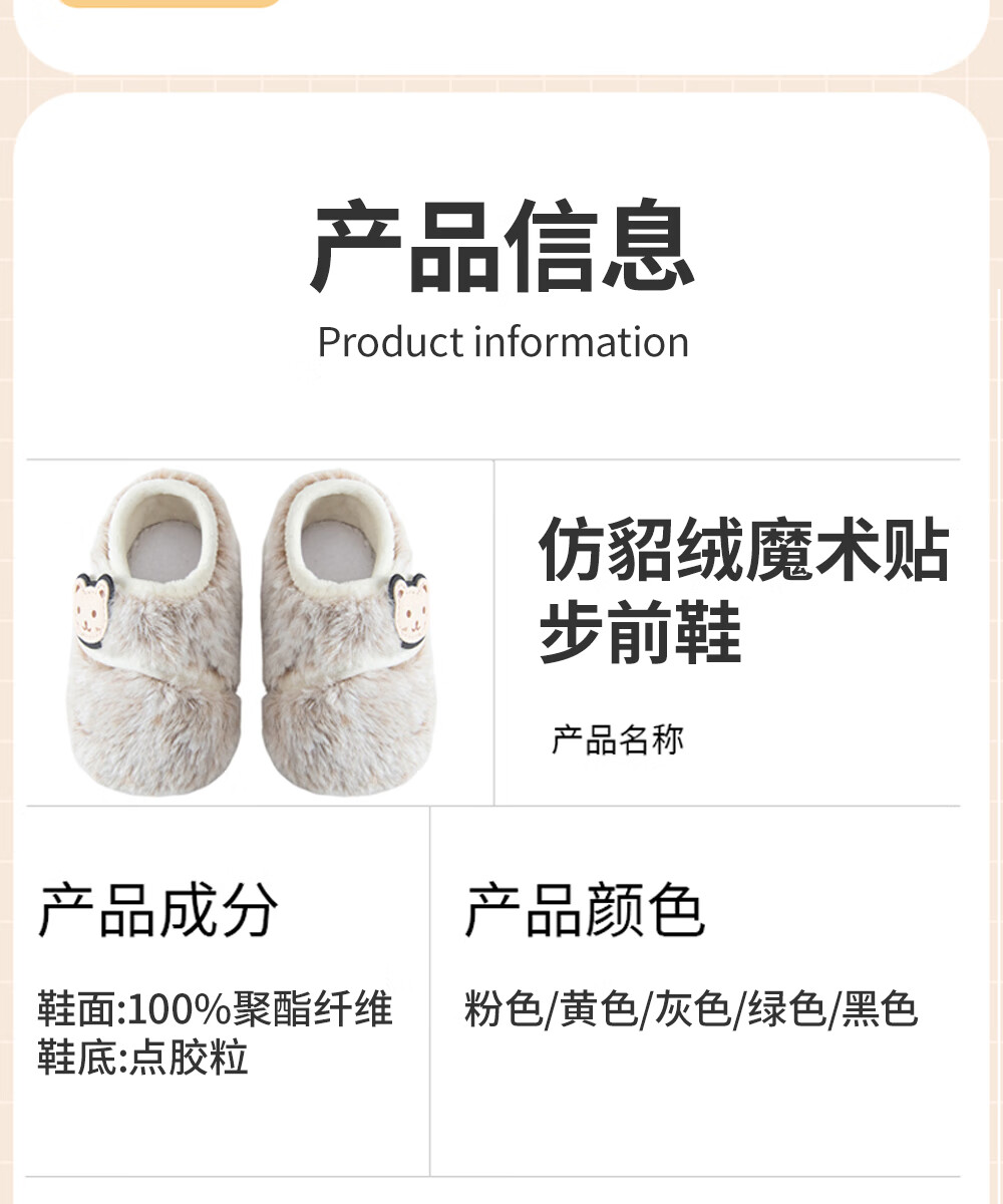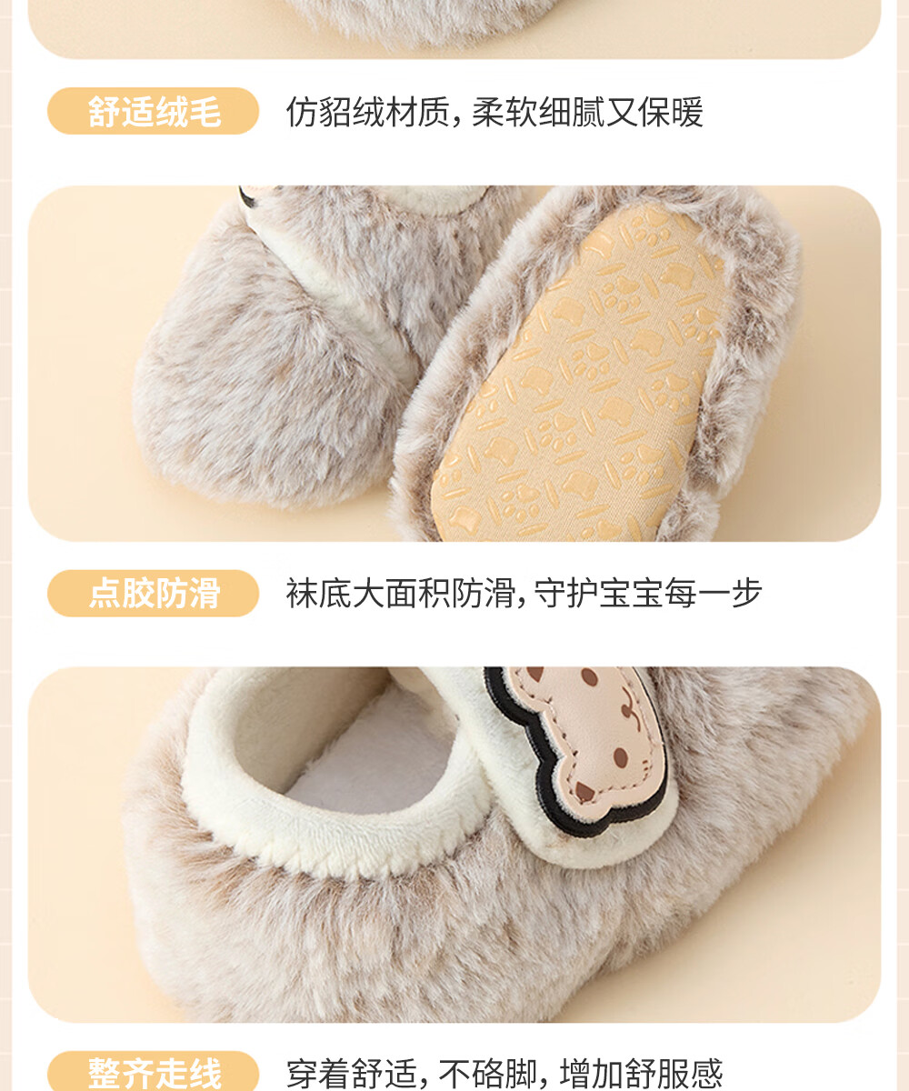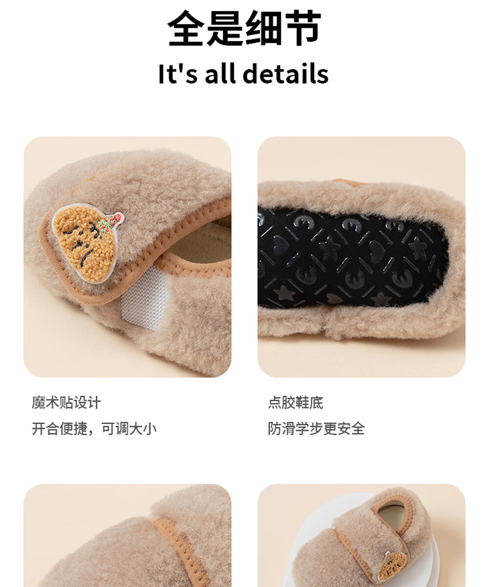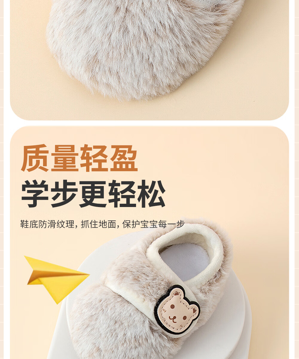 贝肽斯宝宝室内鞋新款婴儿鞋袜冬季学步鞋0-1岁保暖棉鞋防滑软底步前鞋 粉色 卡通标保暖步前鞋 13 cm(S码,建议脚长12-13cm)