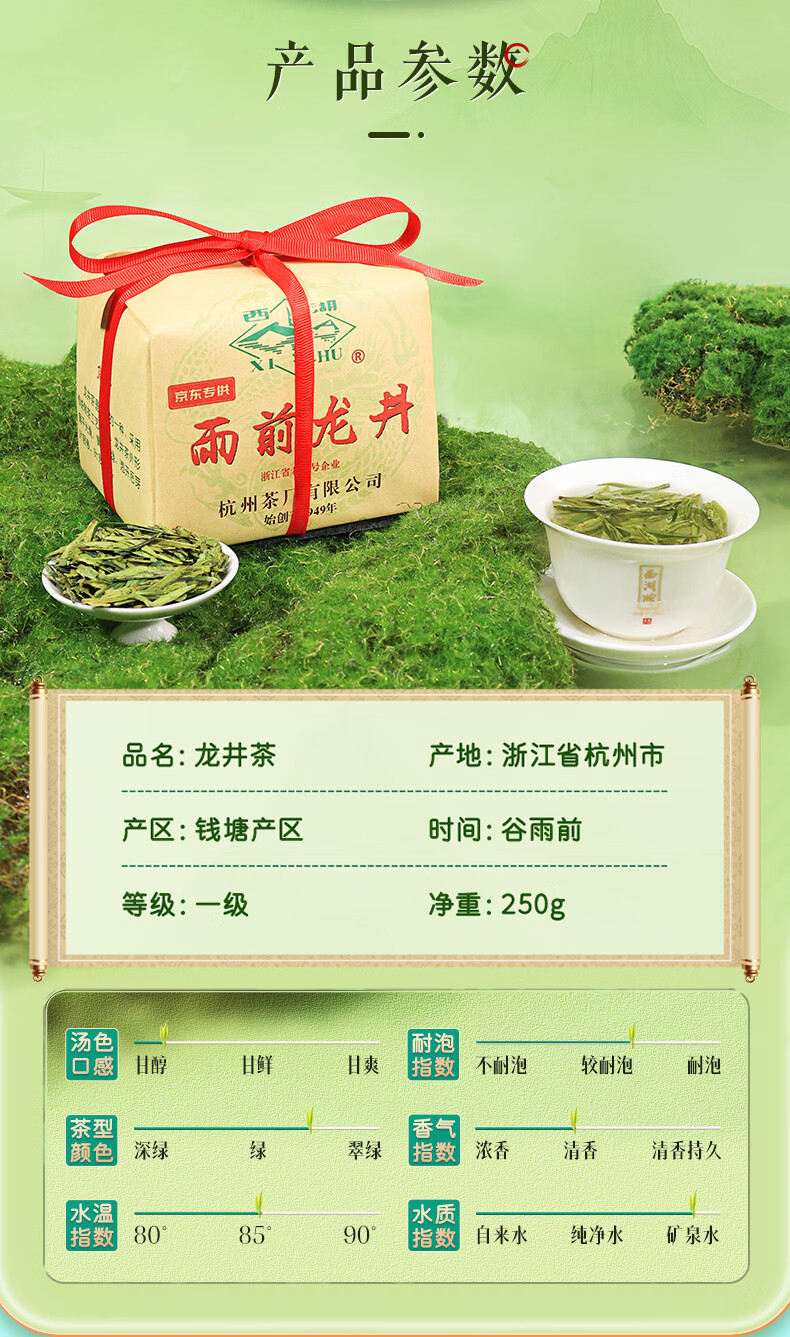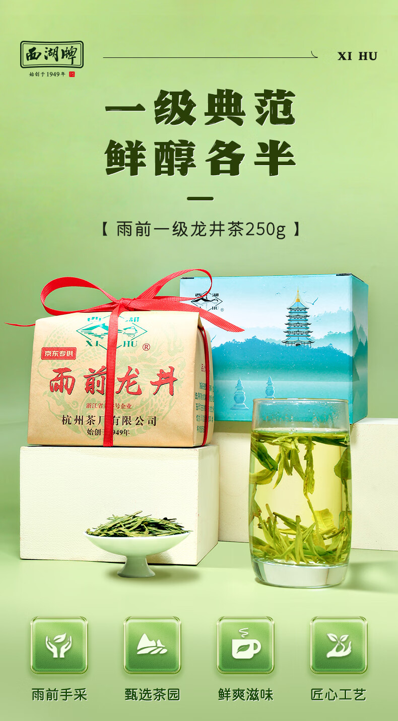 西湖牌2025新茶上市绿茶龙井茶叶 雨前一级250g春茶传统纸包自饮送礼