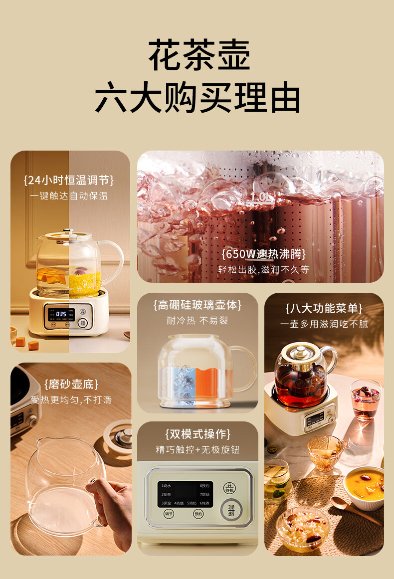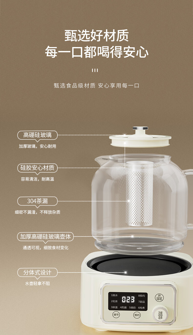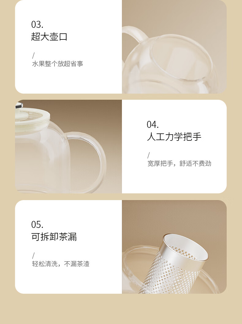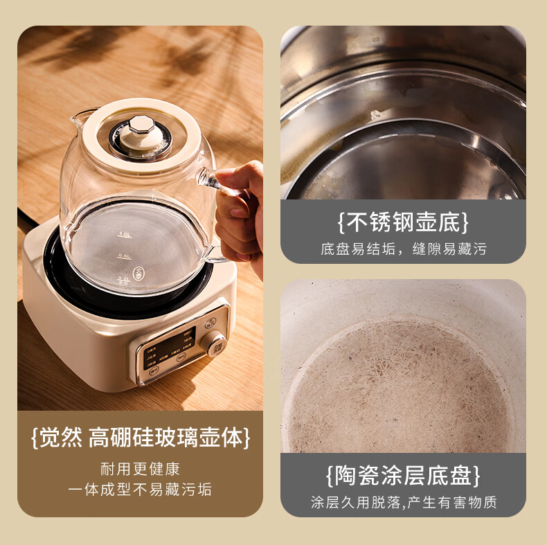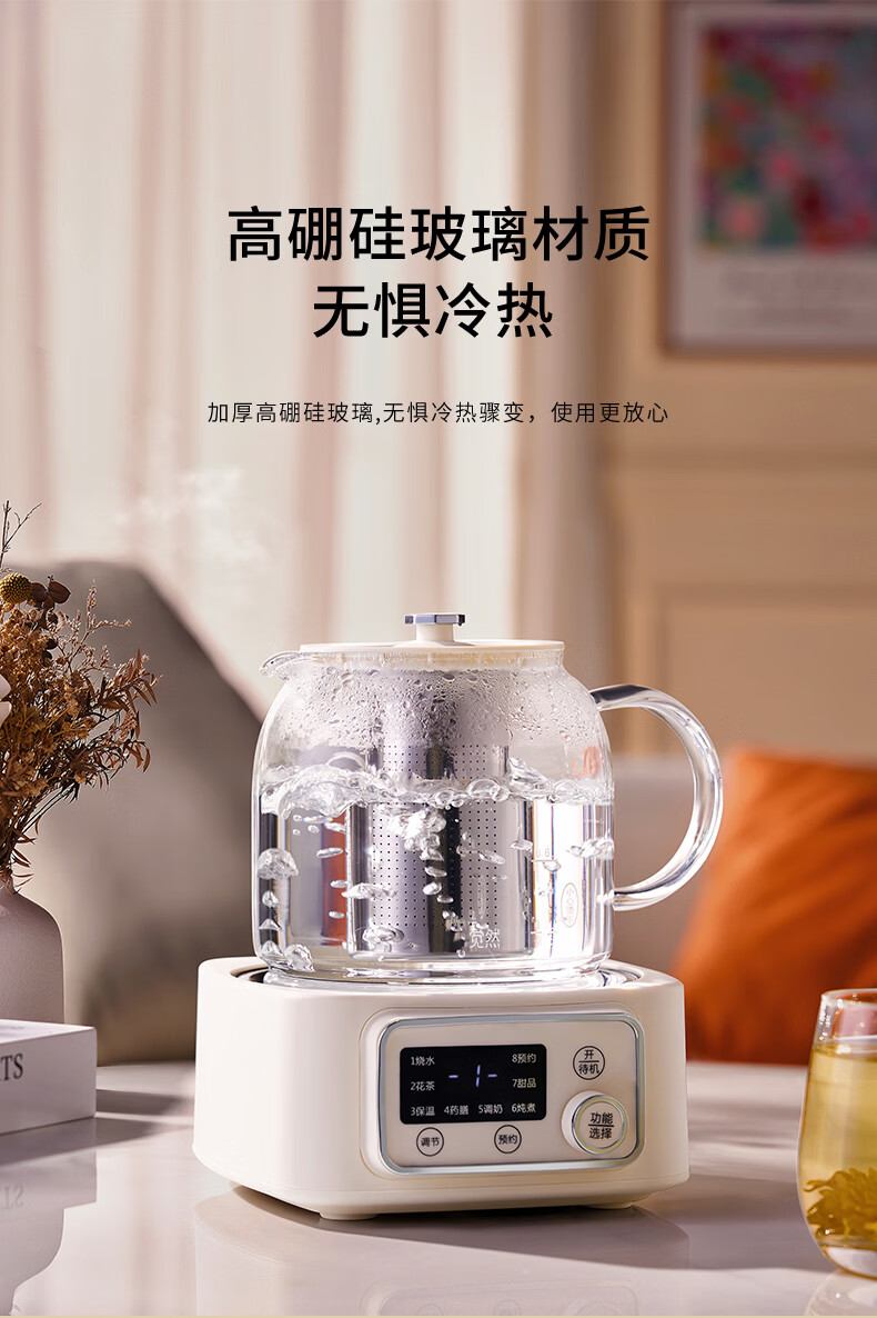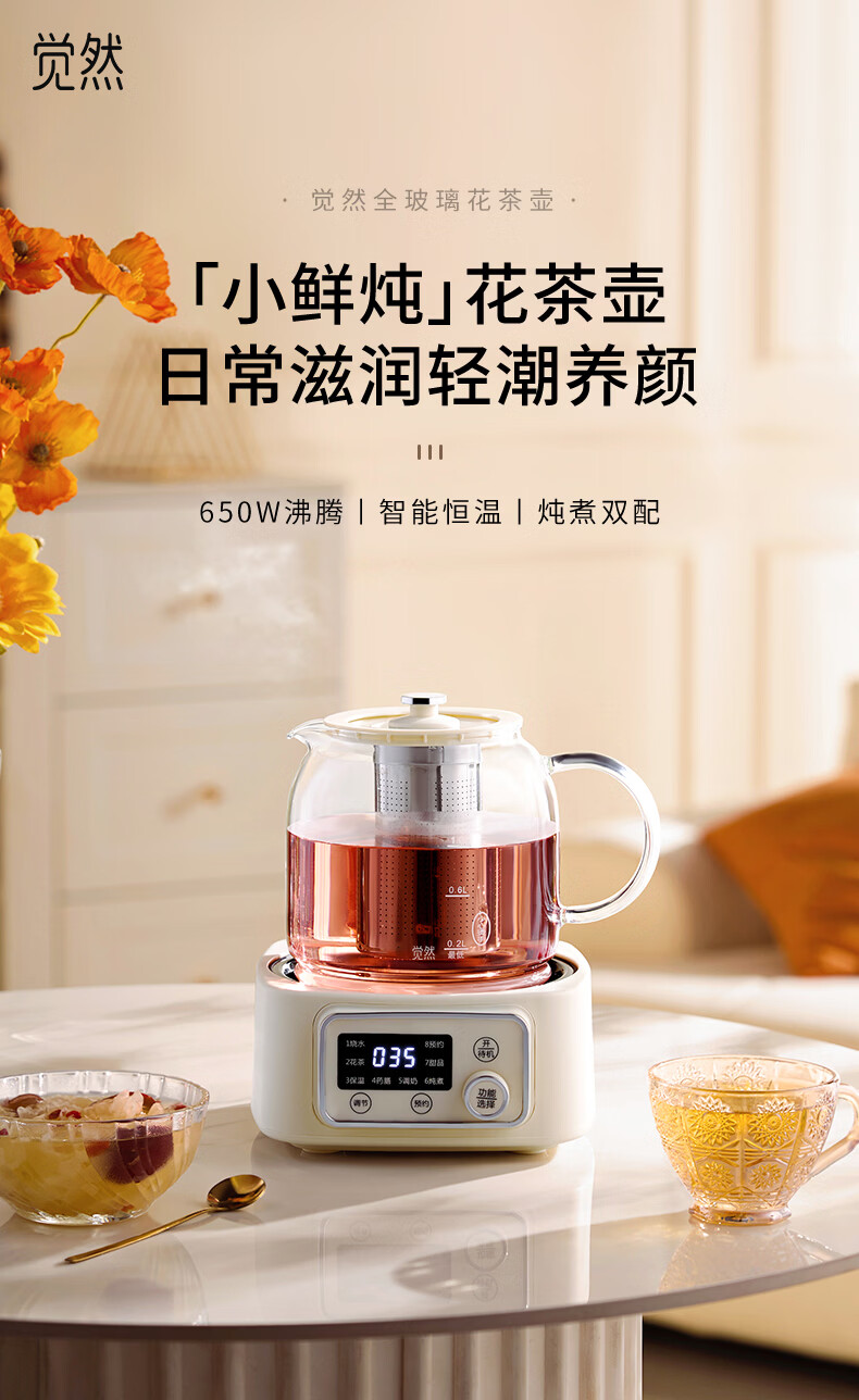 觉然花茶壶全玻璃养生壶炖煮一体保温壶办公室家用花茶壶新款烧水壶 1L 全玻璃花茶壶-配茶漏