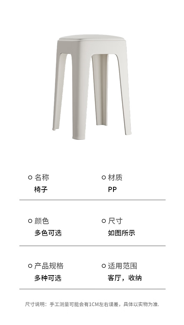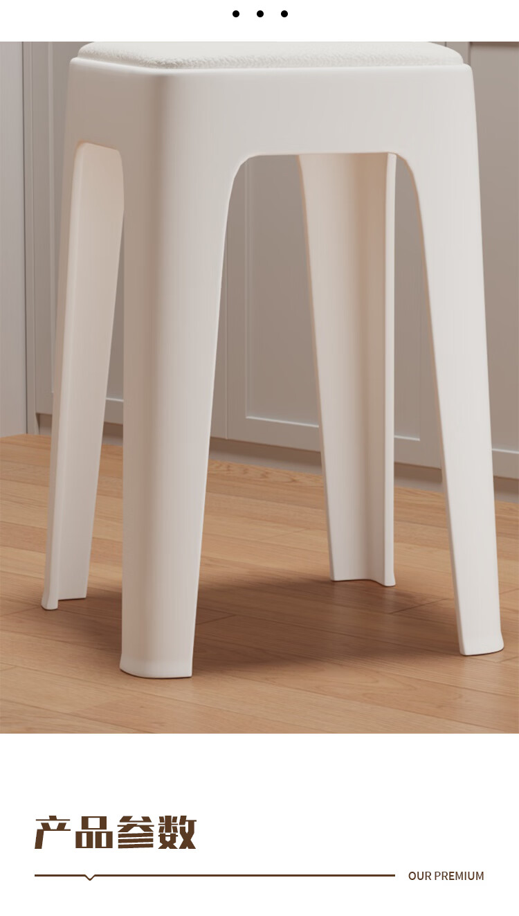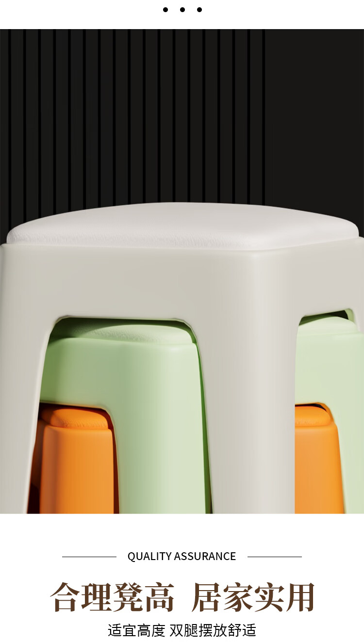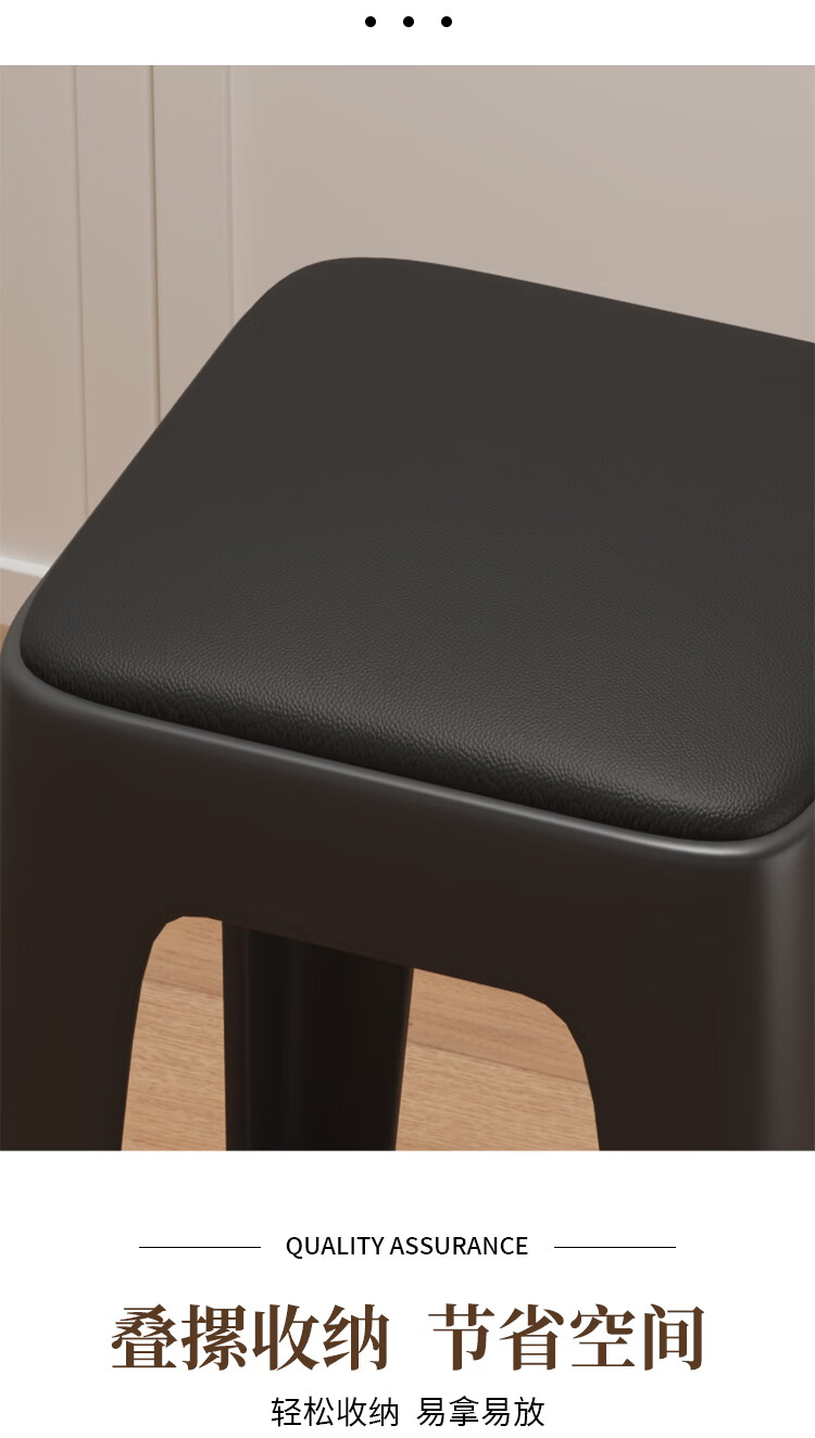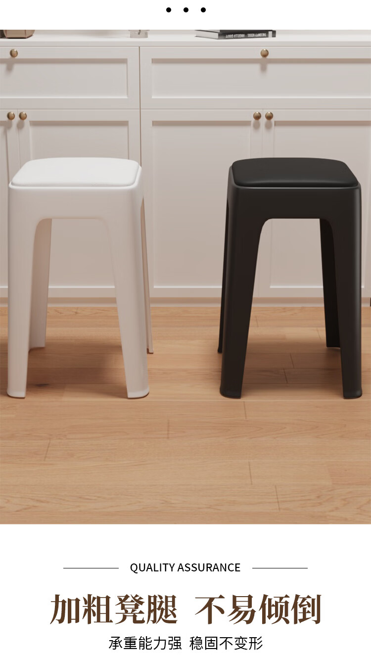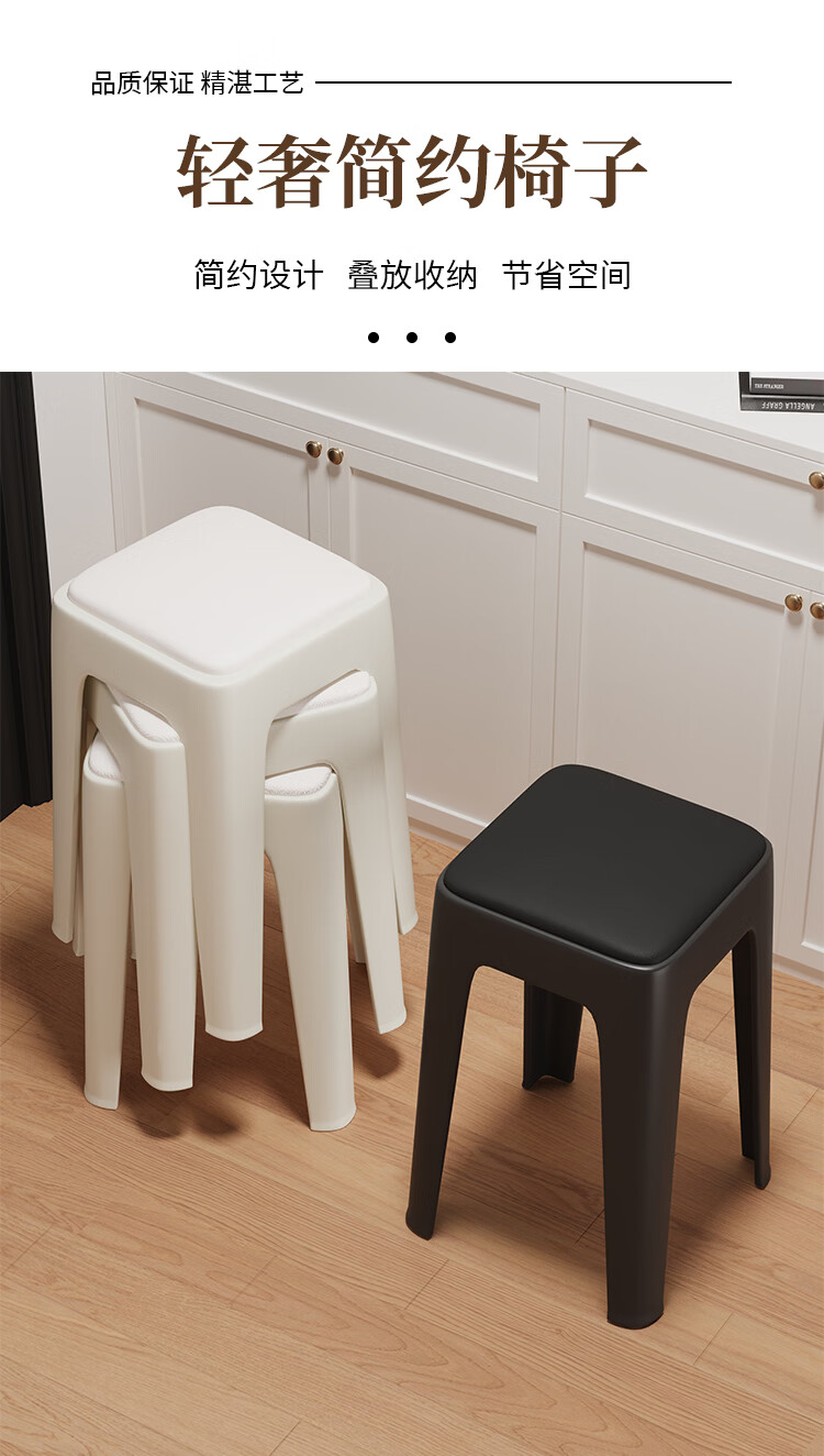 馨婺家家用凳子塑料凳子加厚家用客厅高凳餐厅凳简约可摞叠特厚圆塑胶凳 黑色-小号【软包款】