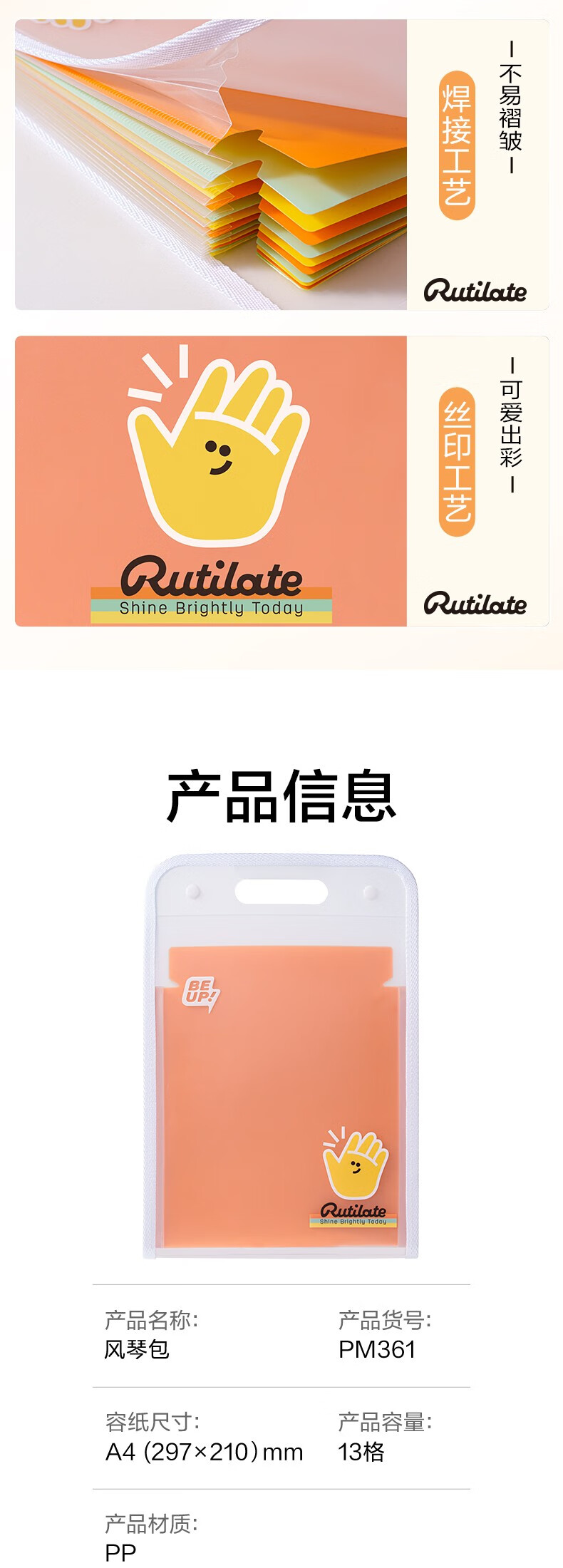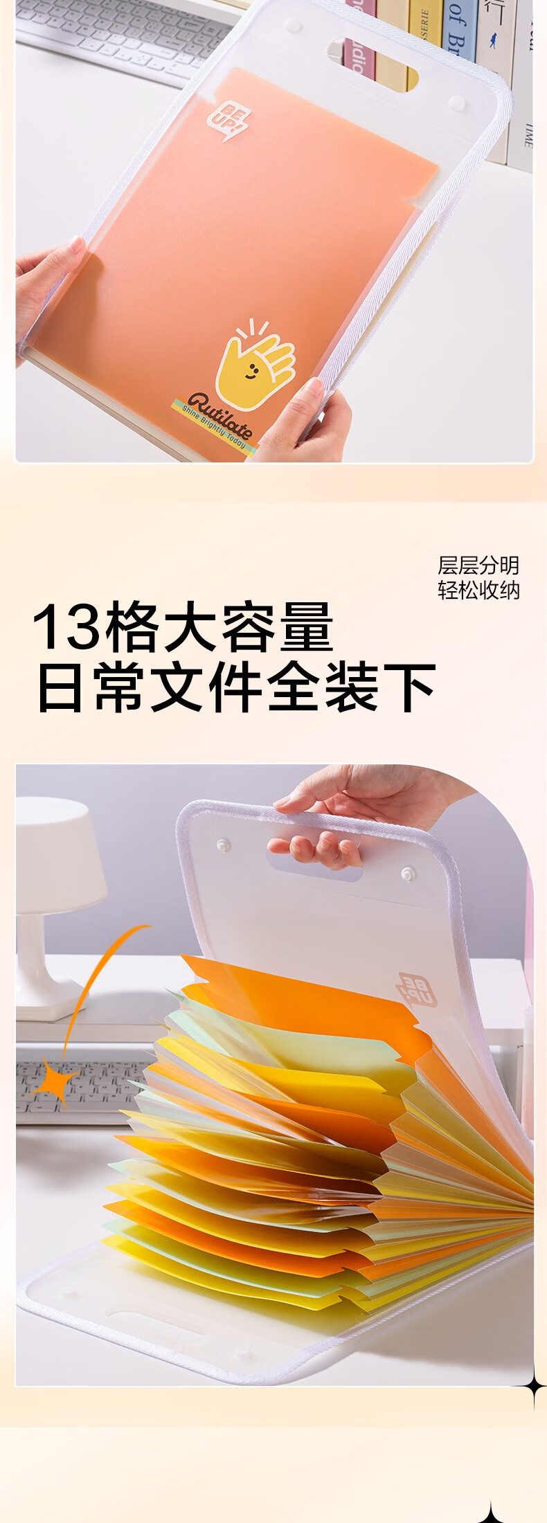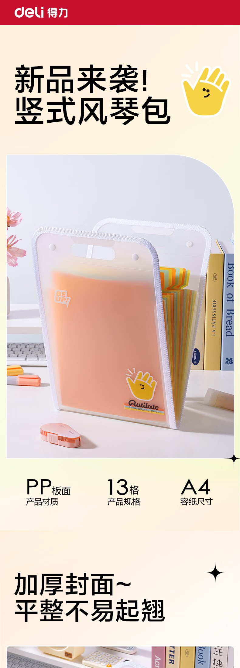 得力(deli)竖式13格彩虹内页风琴包 文件夹资料册分类风琴包 学生试卷收纳袋 多层文件袋PM361