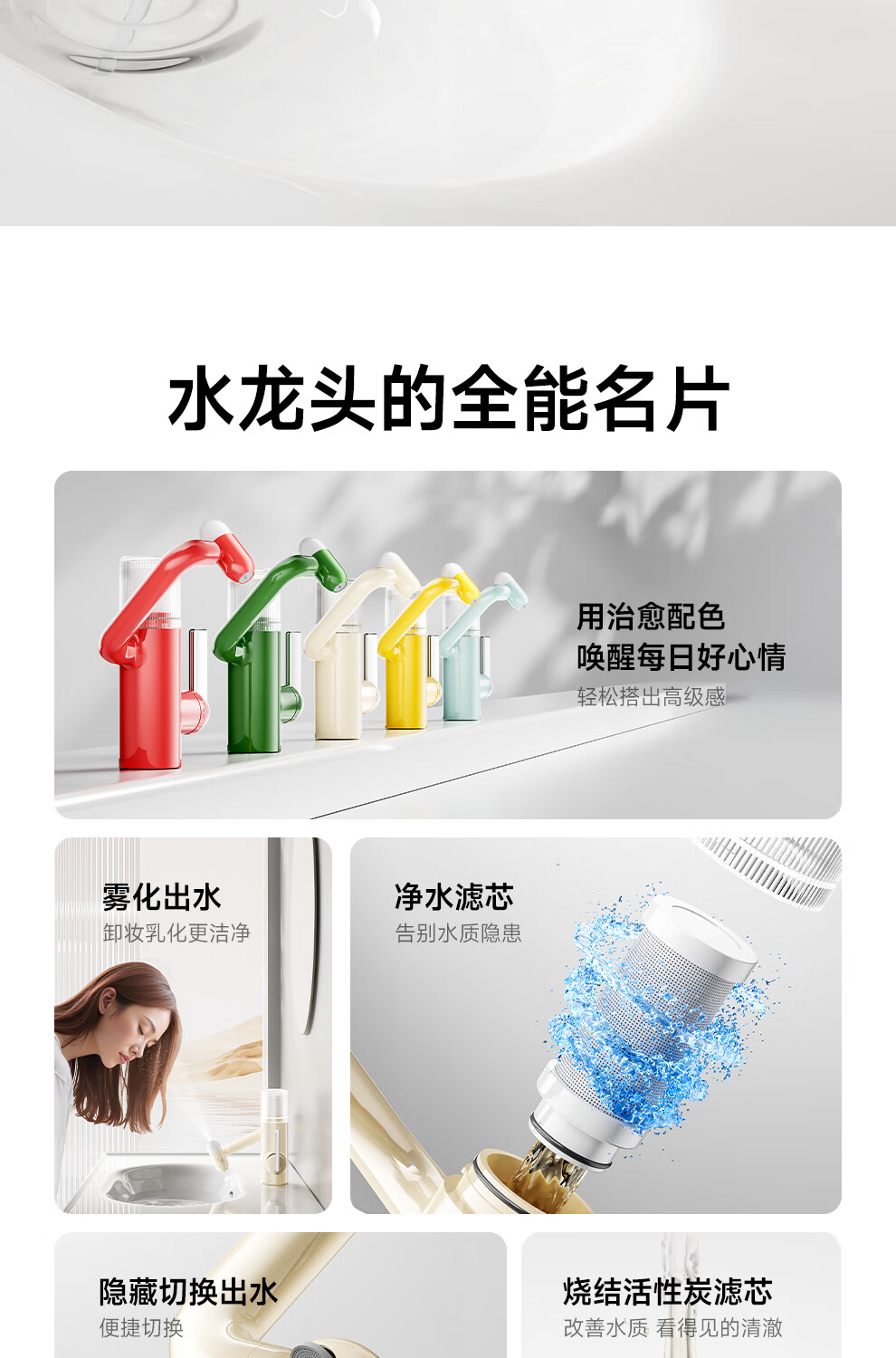NOEO雾化美肤洗手脸盆水龙头多功能万向机械臂卫生间洗漱台盆冷热龙头 雾霭蓝