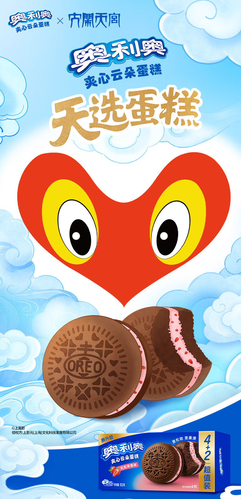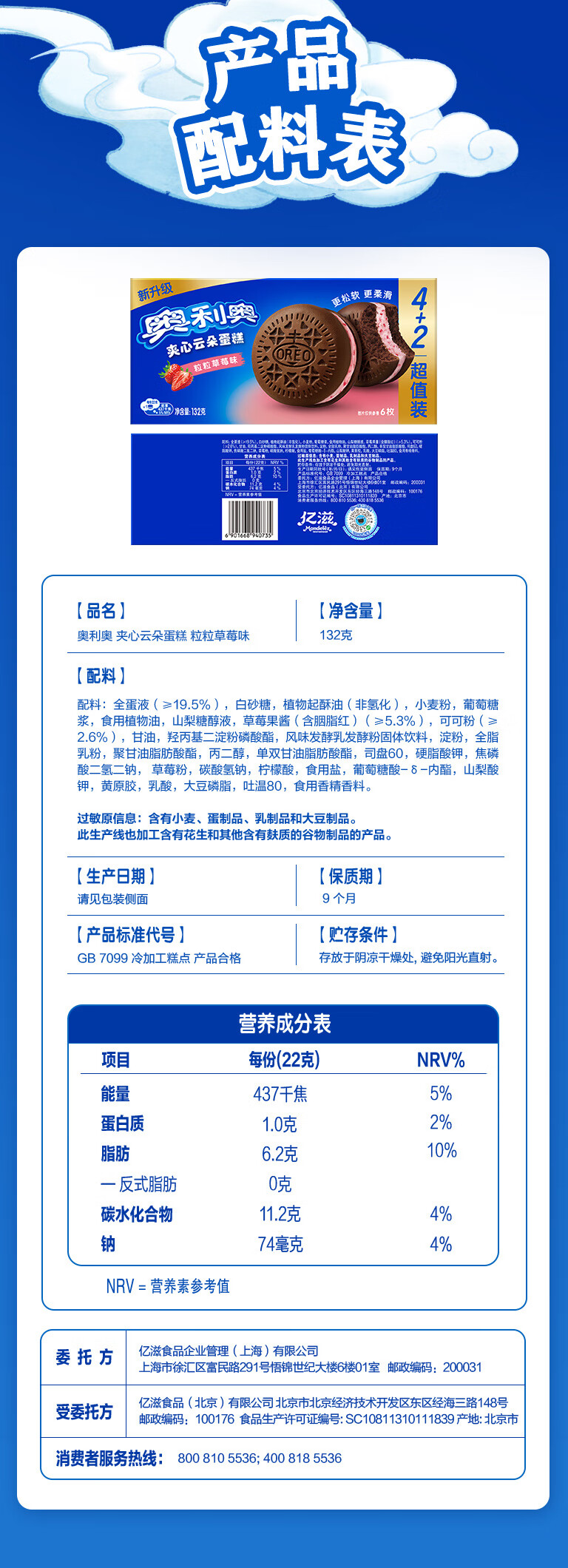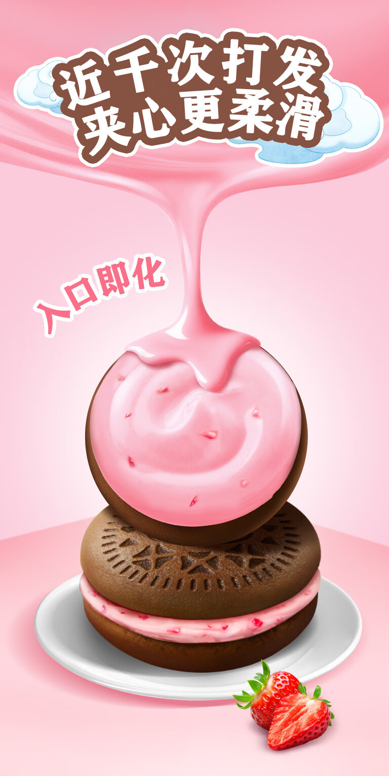 奥利奥(Oreo)夹心云朵蛋糕粒粒草莓味6枚132g 糕点休闲零食 早餐下午茶
