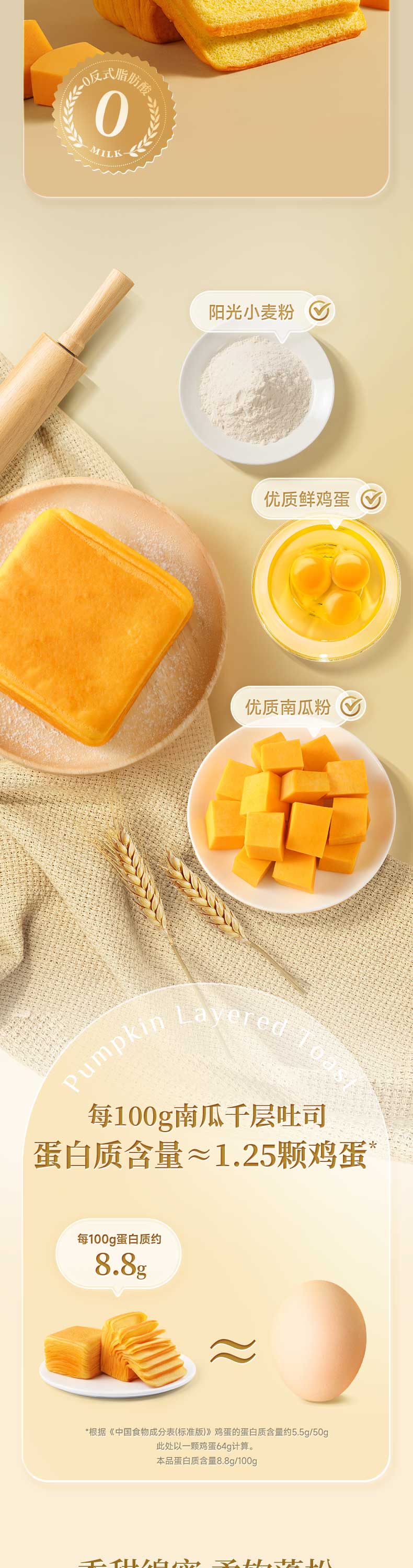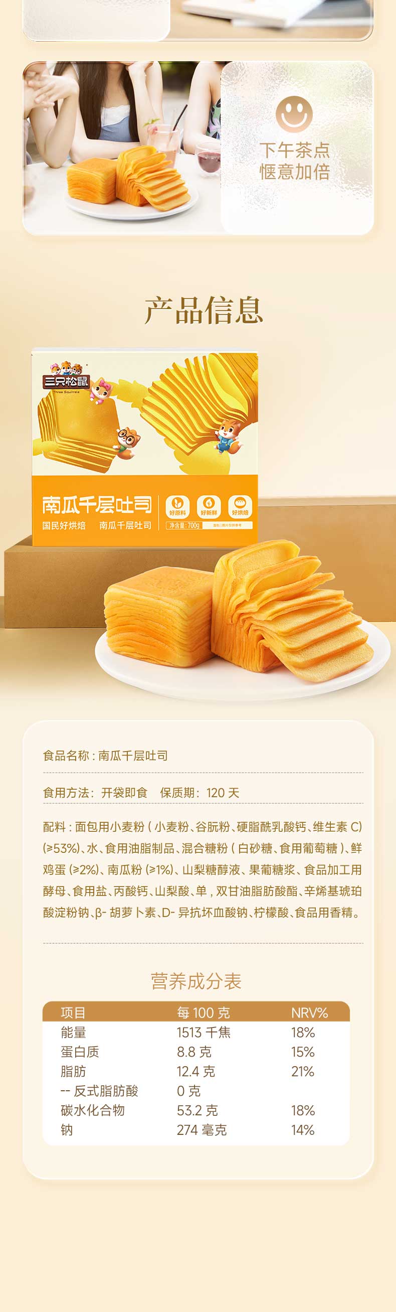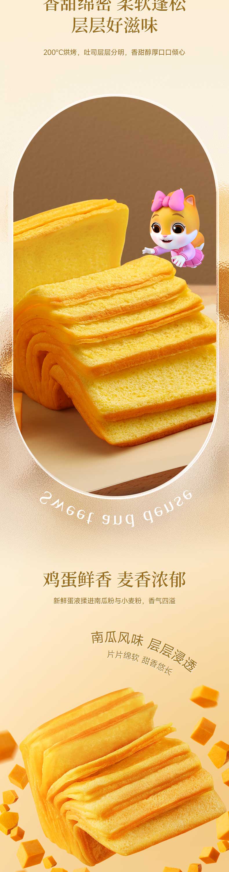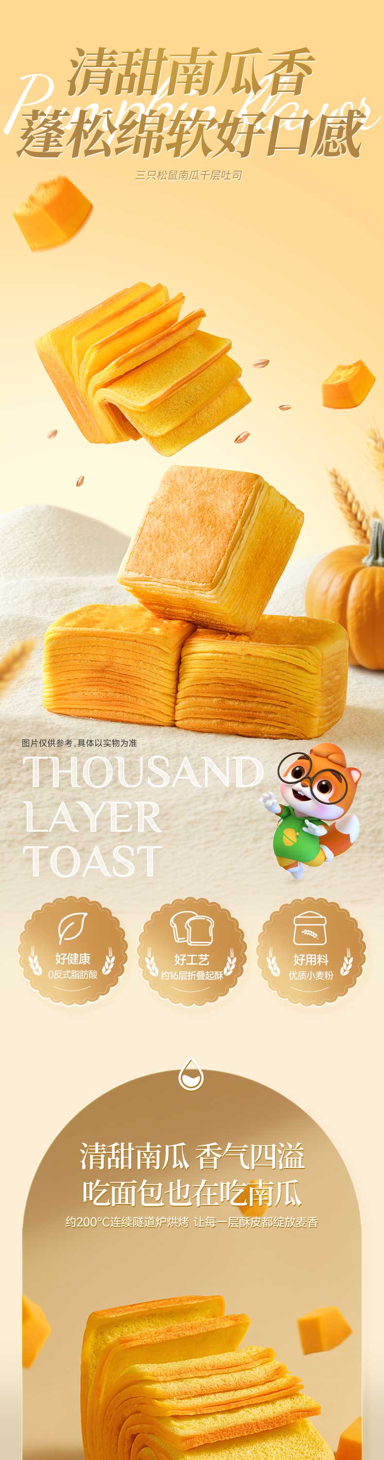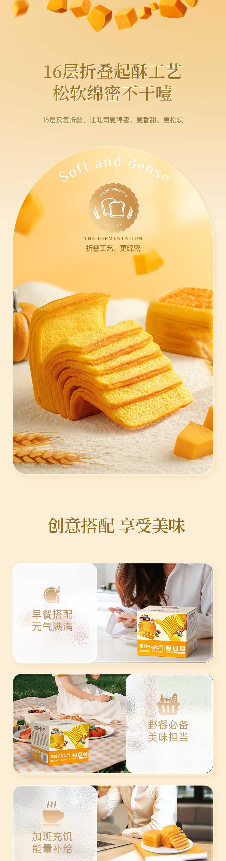 三只松鼠南瓜千层吐司700g 营养早餐吐司面包蛋糕办公室抵饱代餐整箱糕点
