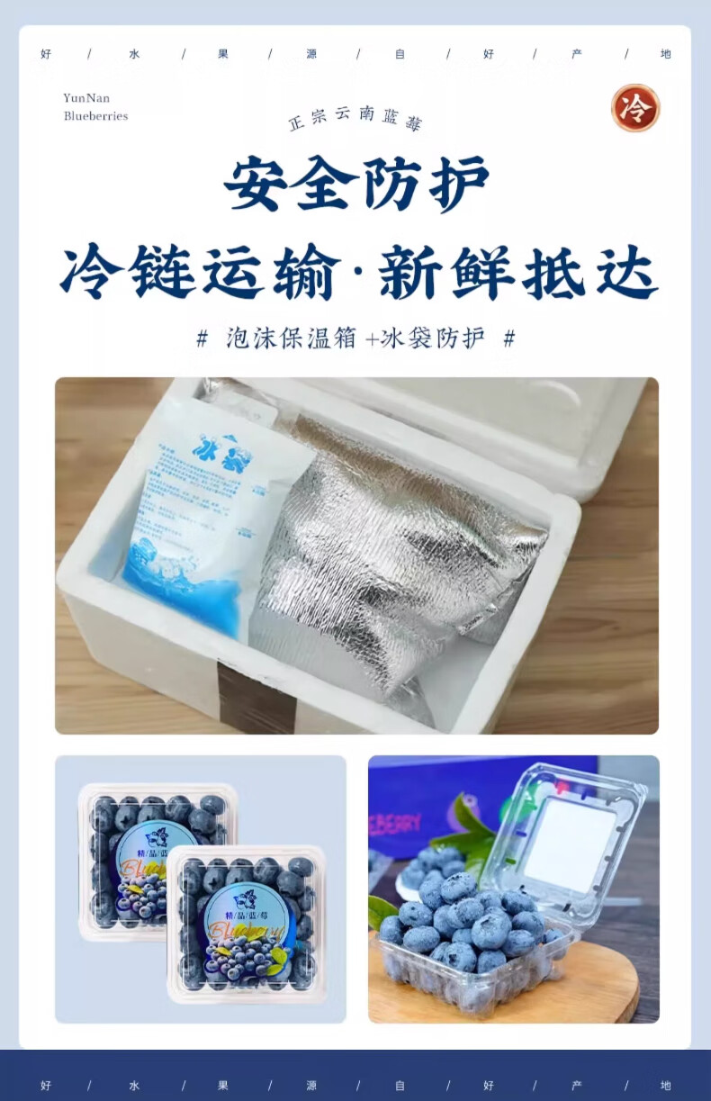 晟容果蔬云南花香蓝莓【JD/顺丰-多地次日达】孕妇当季鲜果应季新鲜水果 【爆款80%选】金奖·特级果 | 单果16-20m 4盒装【爆款推荐-80%人买】100g/盒*