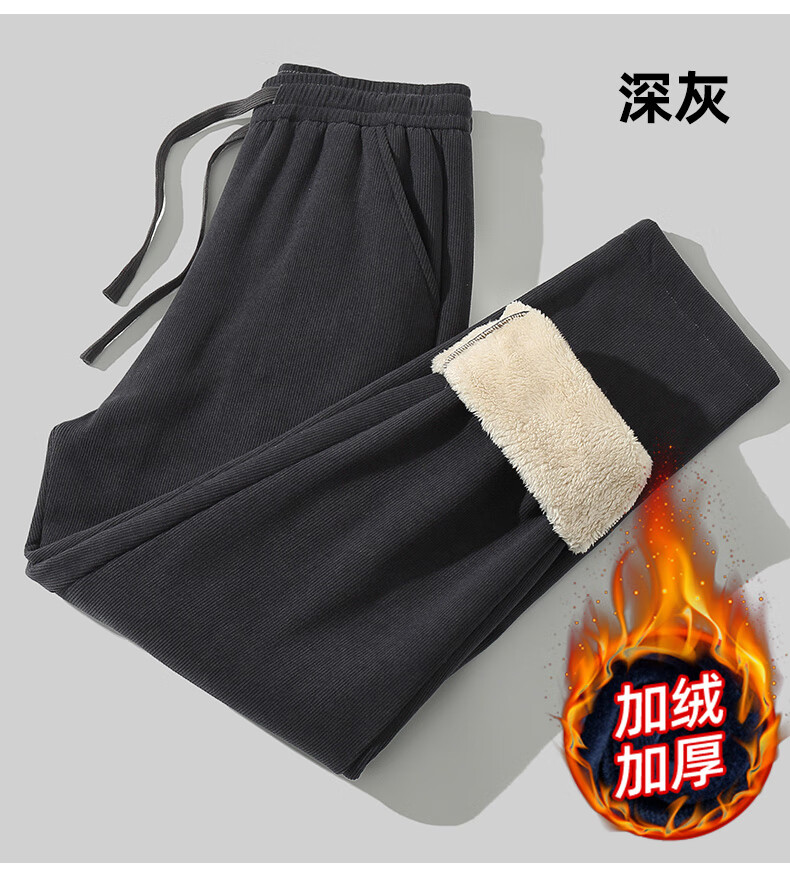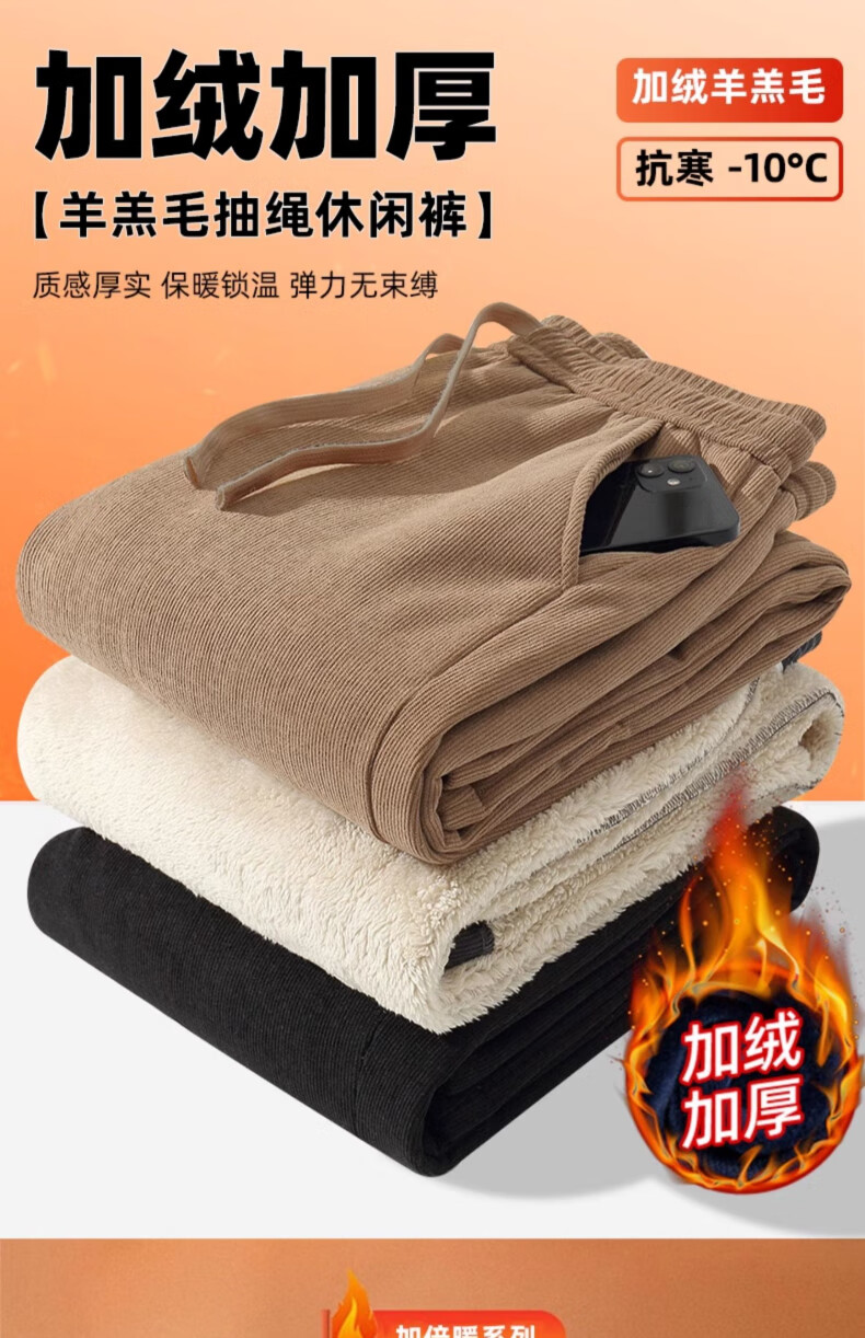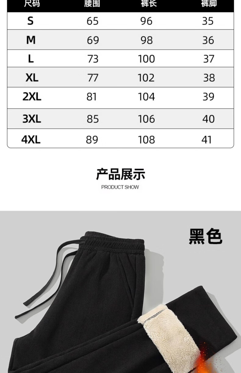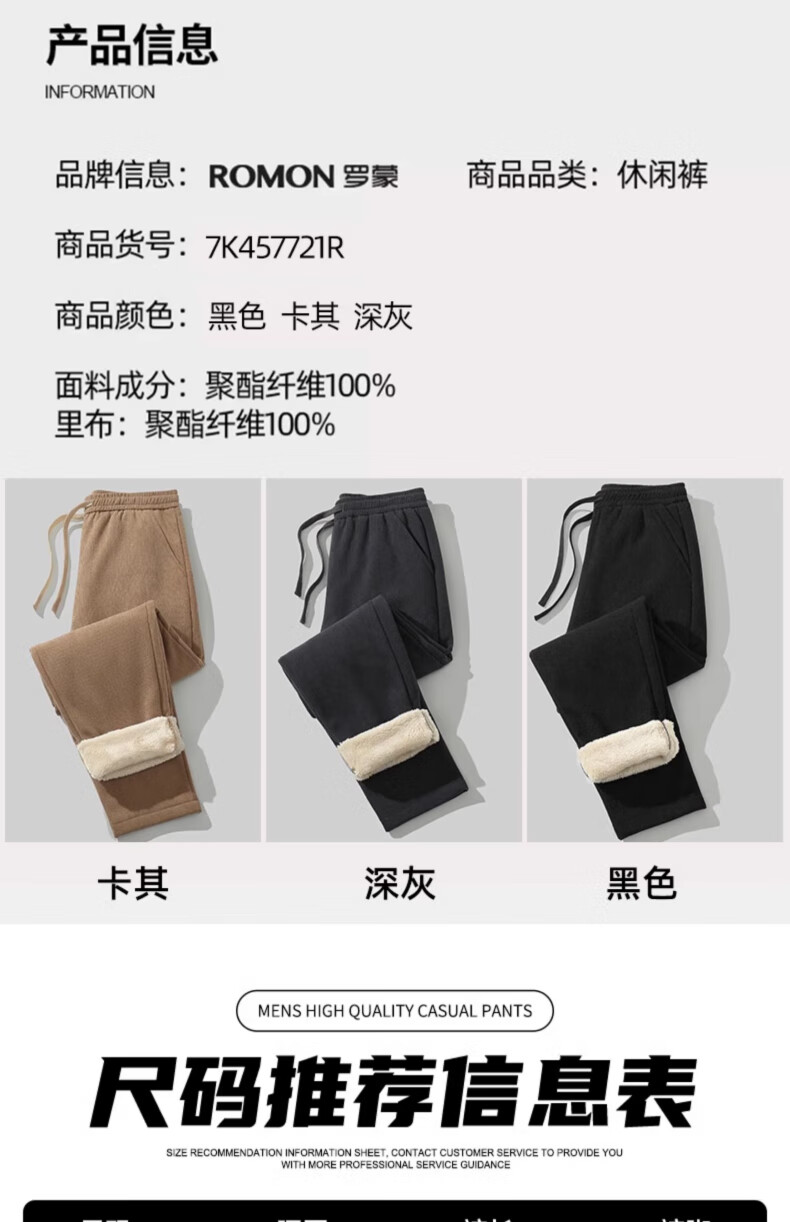 罗蒙羊羔绒双层加绒加厚休闲裤男冬季中青年运动卫裤防寒保暖直筒棉裤 黑色 XL (180) 适合135-155斤