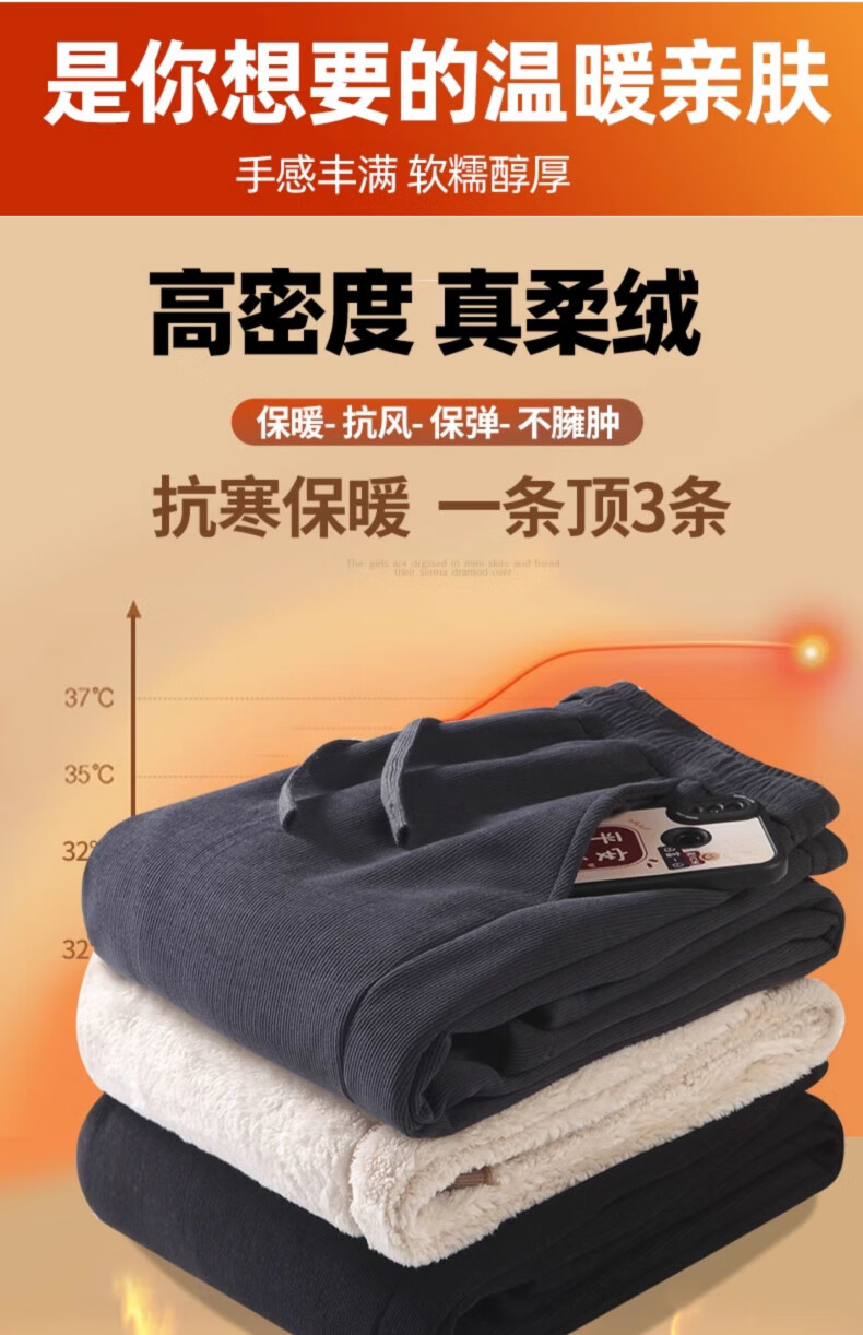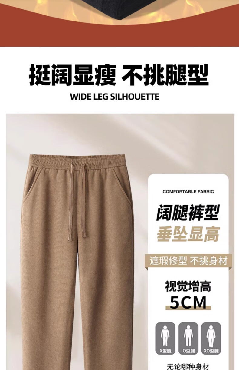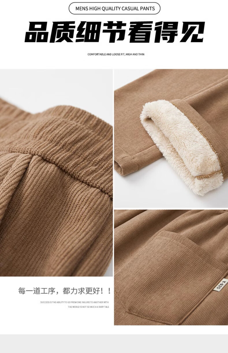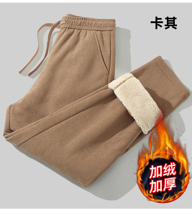 罗蒙羊羔绒双层加绒加厚休闲裤男冬季中青年运动卫裤防寒保暖直筒棉裤 黑色 XL (180) 适合135-155斤