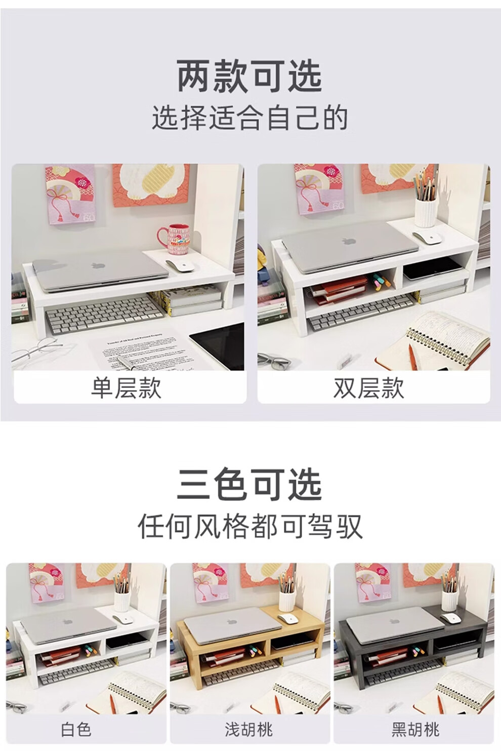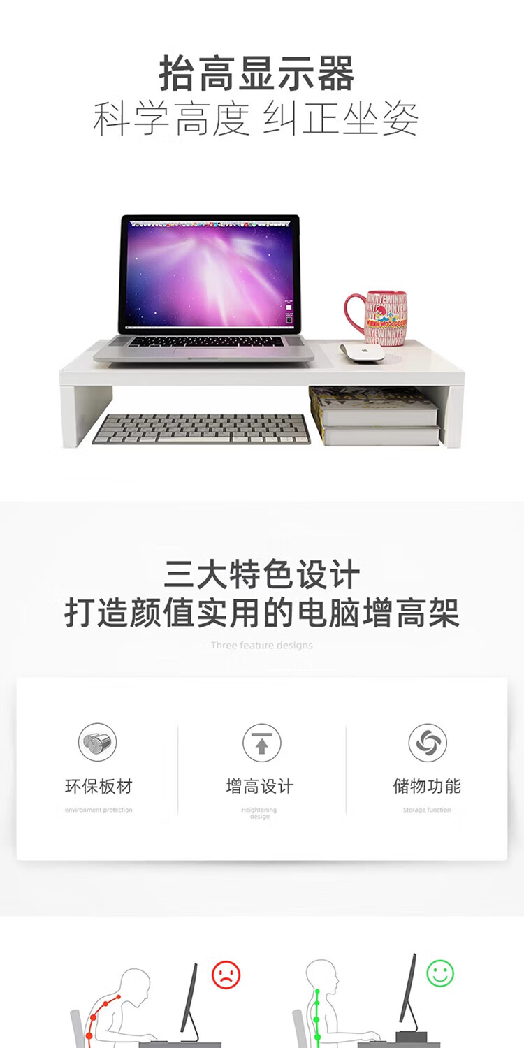 木格格电脑架显示器增高架桌面电脑增高架台式显示屏电脑支架电脑置物架 单层【原木】