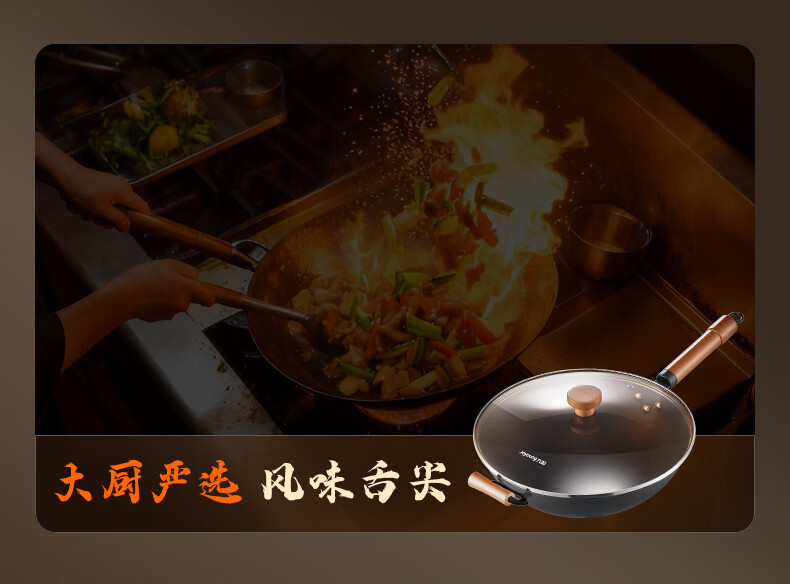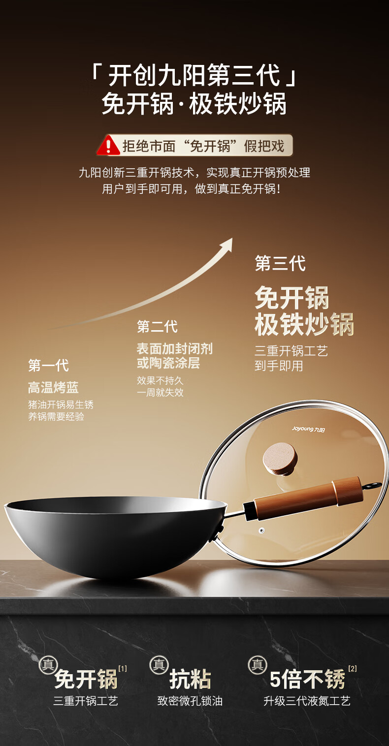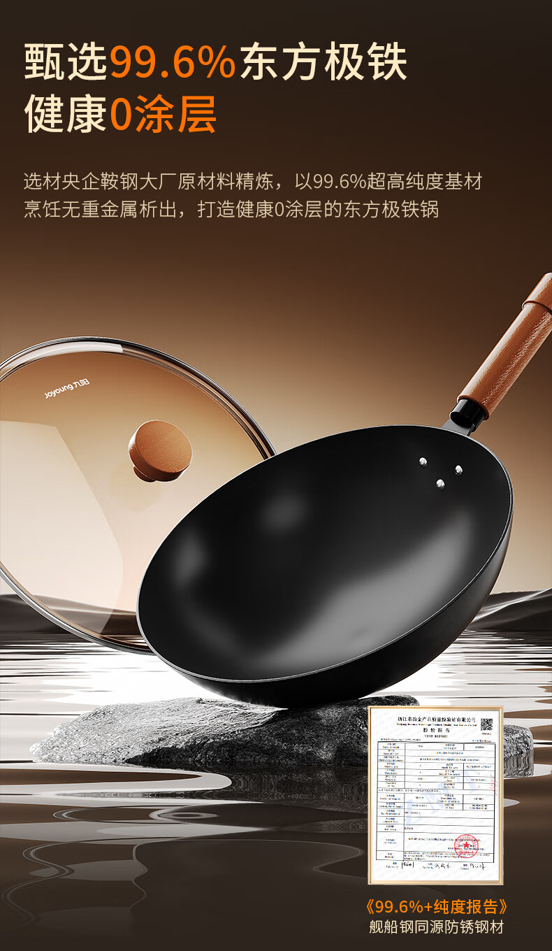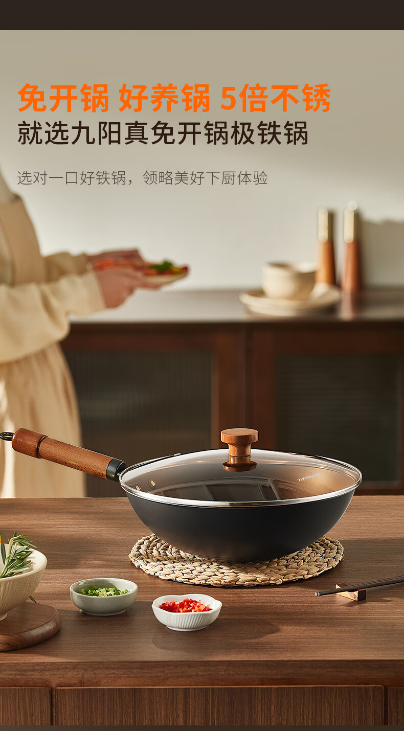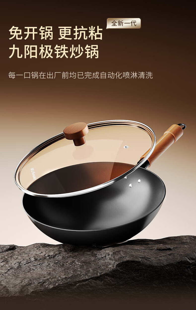 九阳(Joyoung)炒锅铁锅0涂层免开锅煎锅极铁精铁燃气灶爆炒不易粘锅炒菜锅32cm