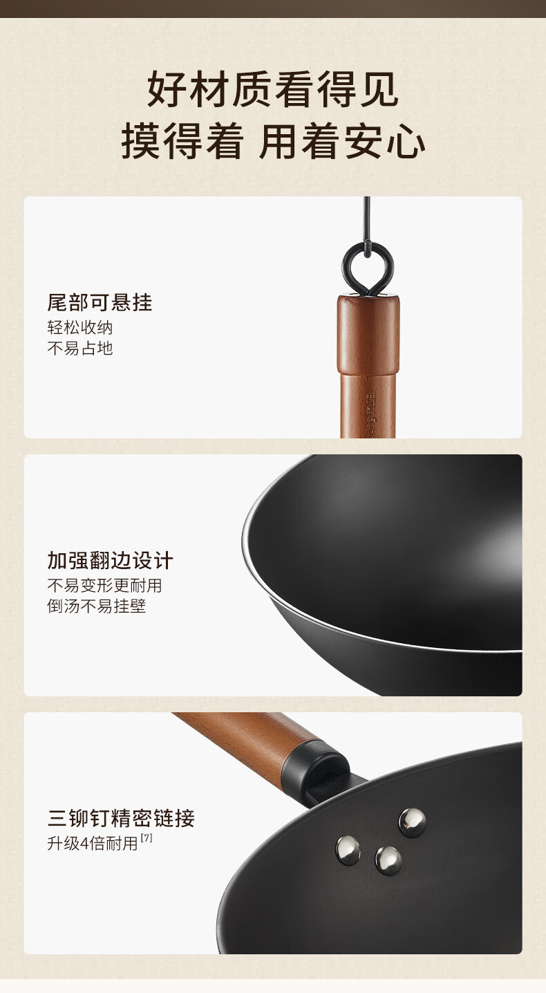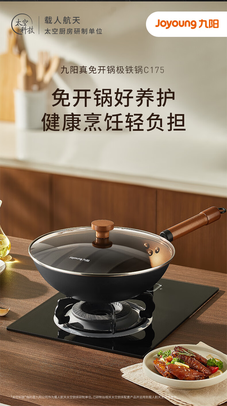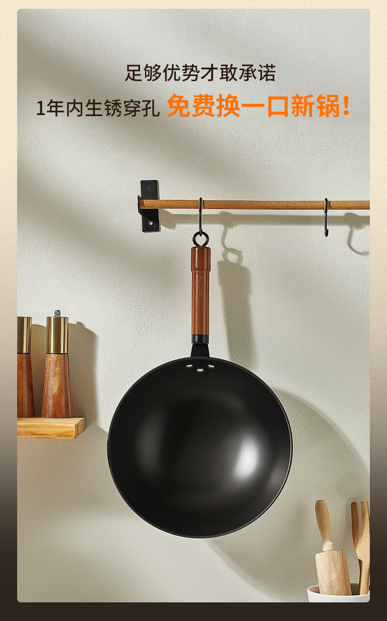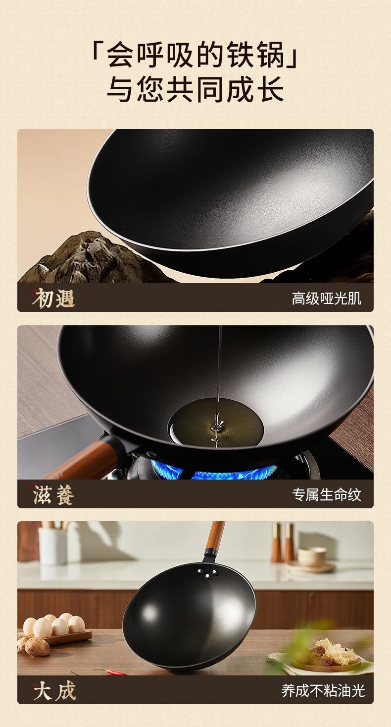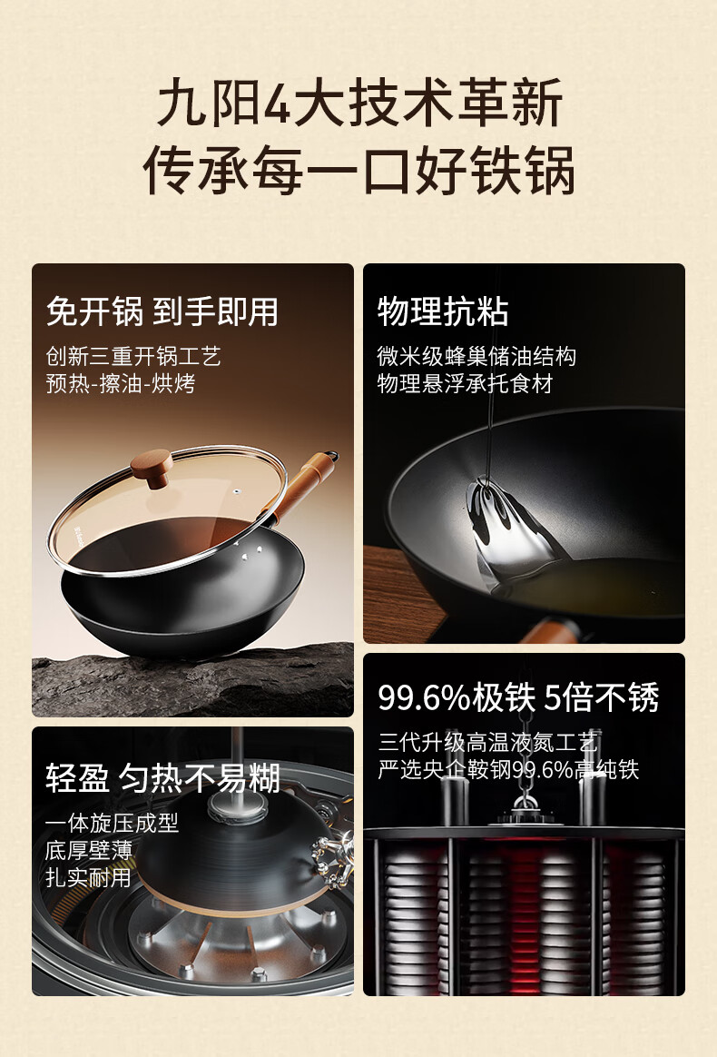 九阳(Joyoung)炒锅铁锅0涂层免开锅煎锅极铁精铁燃气灶爆炒不易粘锅炒菜锅32cm