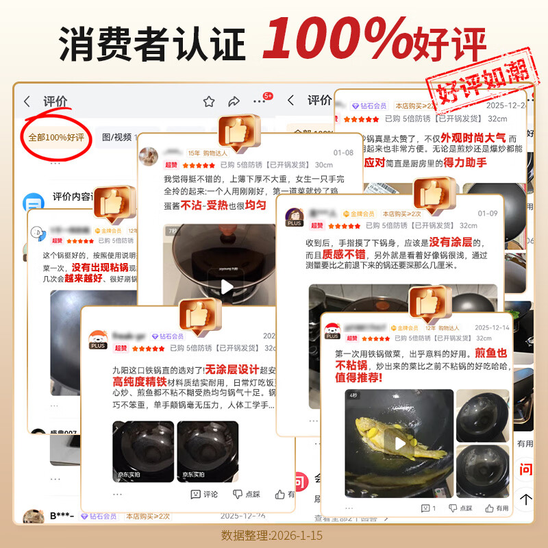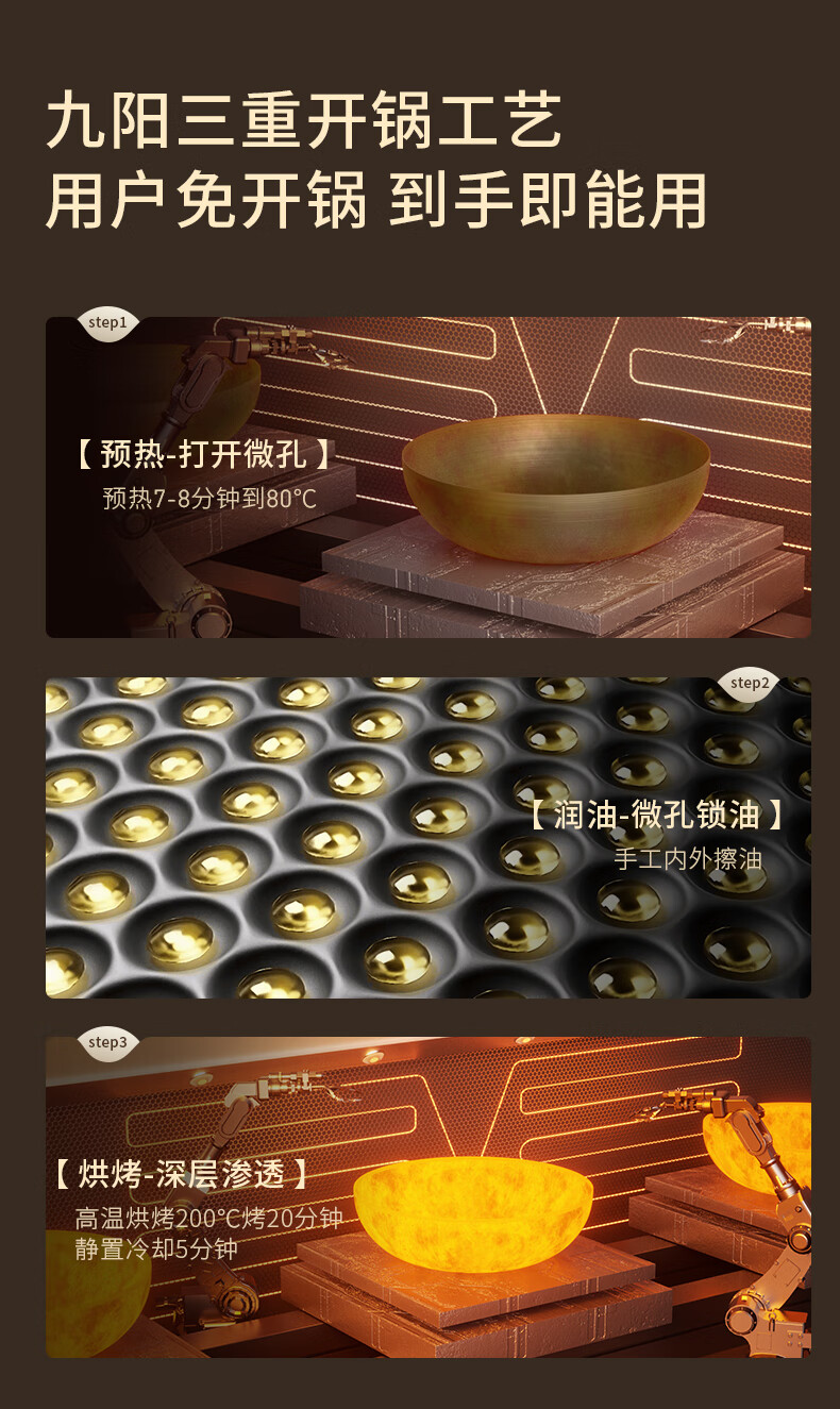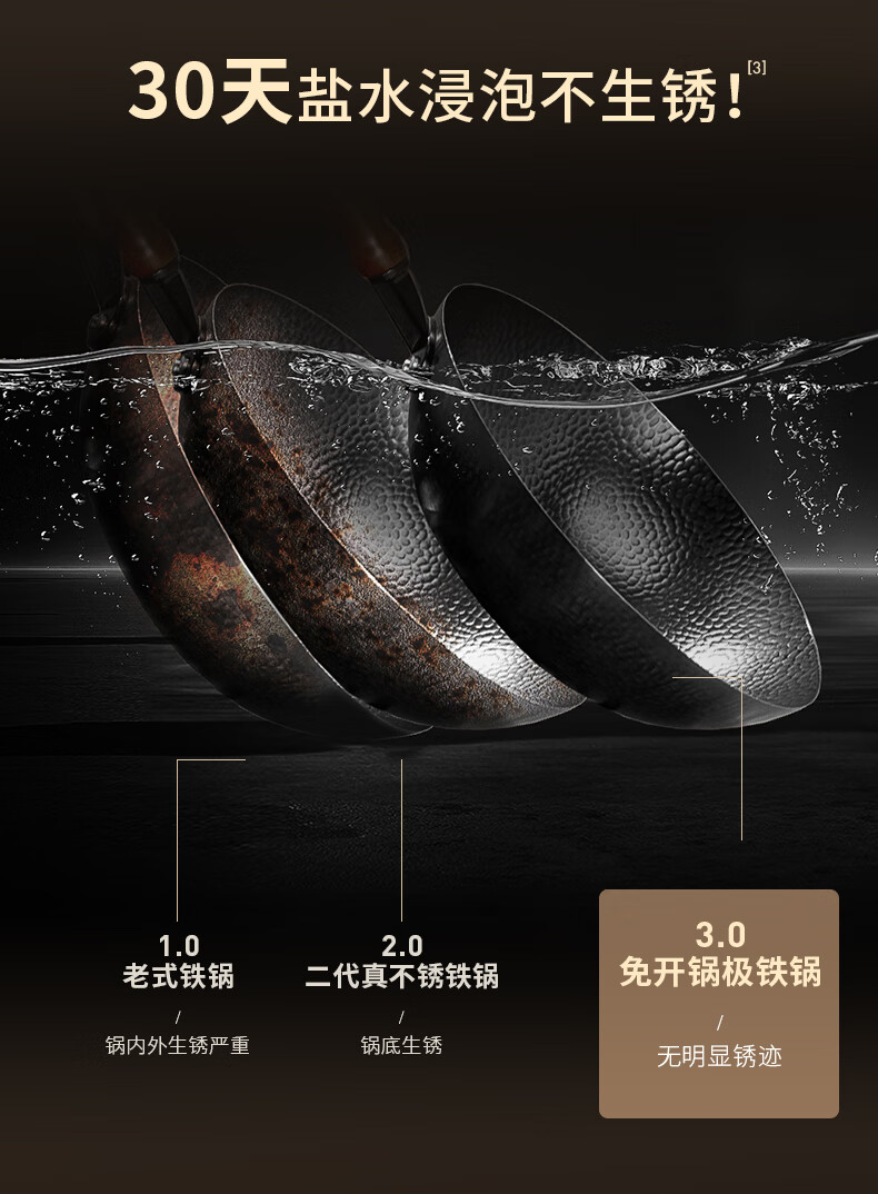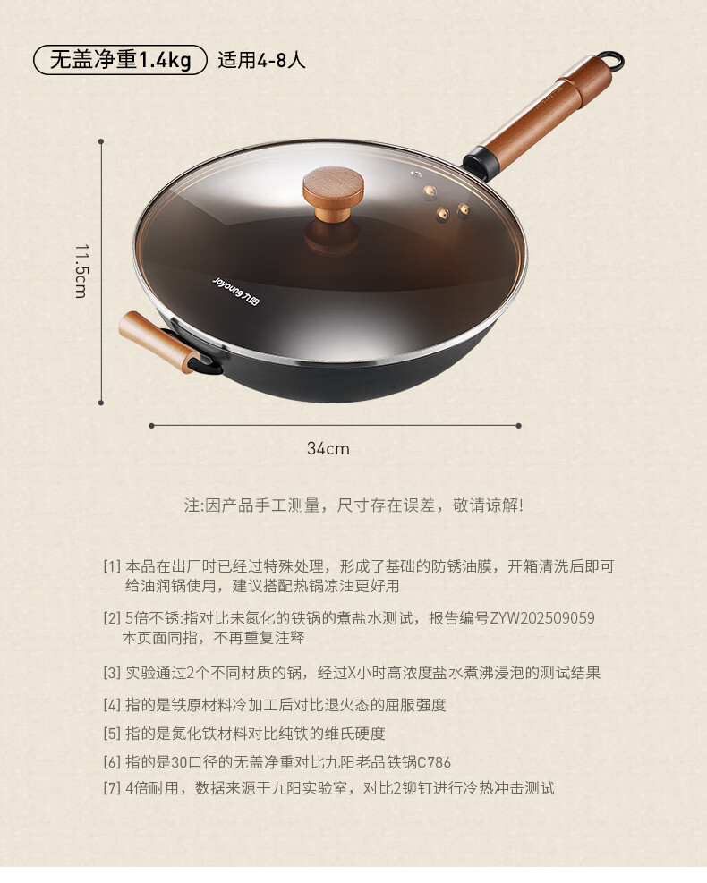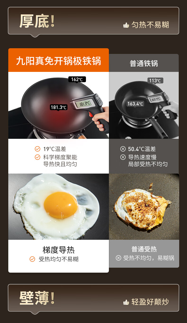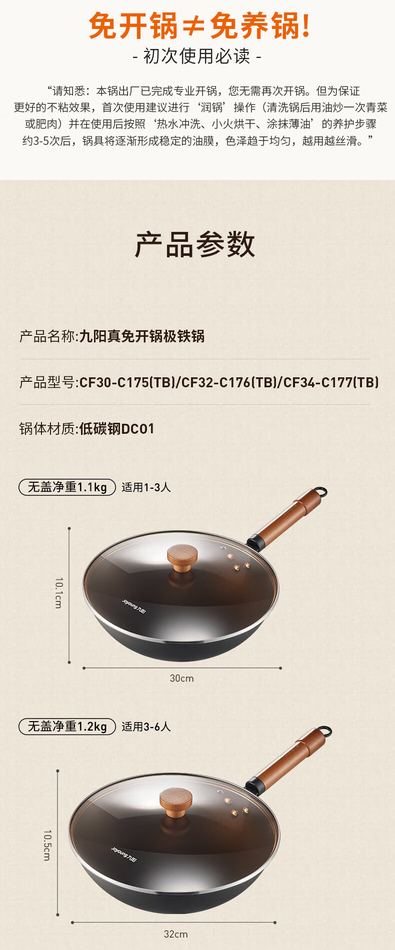 九阳(Joyoung)炒锅铁锅0涂层免开锅煎锅极铁精铁燃气灶爆炒不易粘锅炒菜锅32cm
