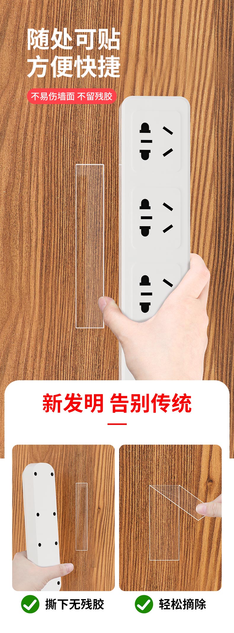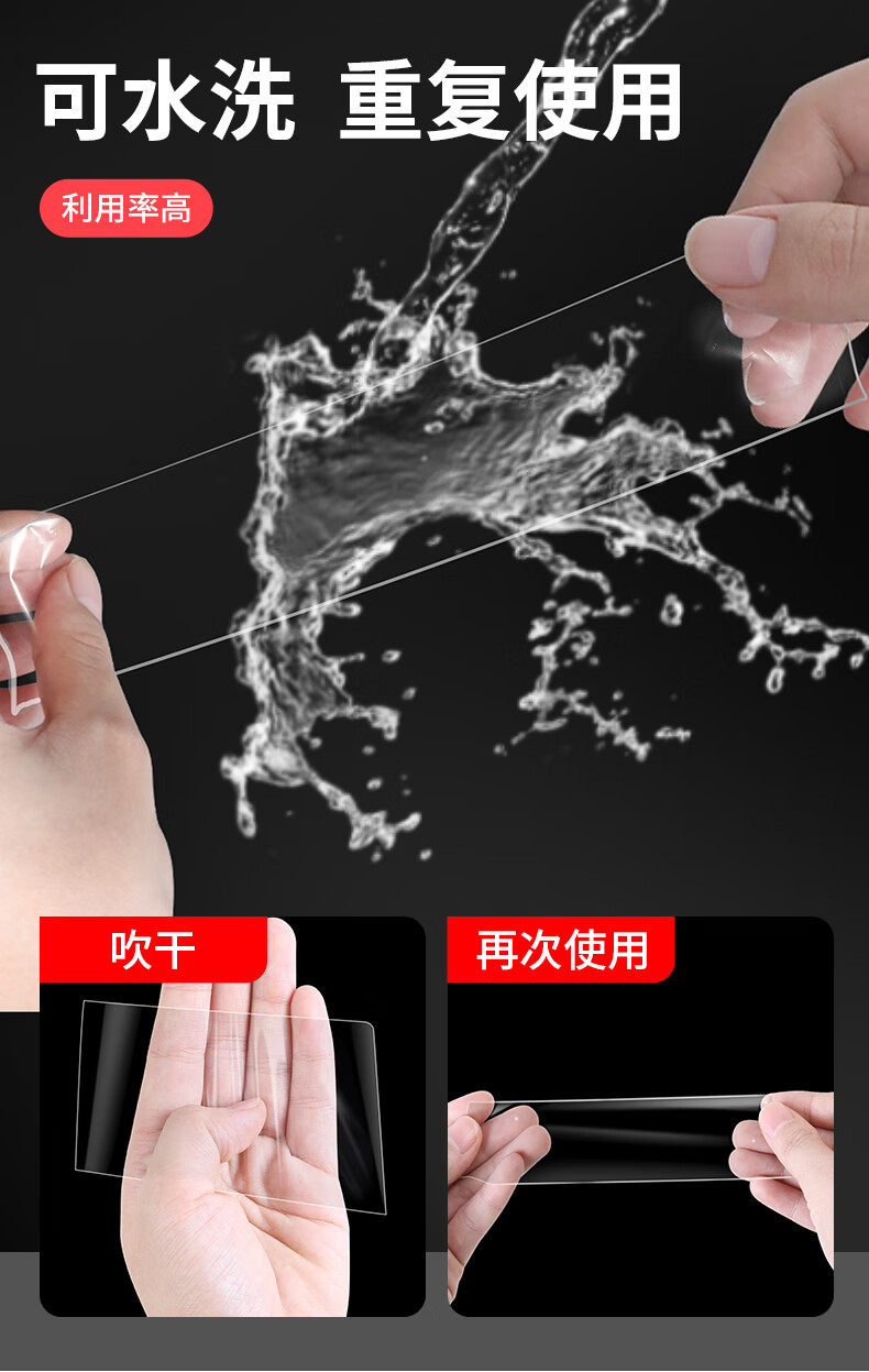 米乐奇强力纳米无痕双面胶带透明胶带免打孔粘墙不伤墙面称重力强 2cm宽*3米长*1卷装