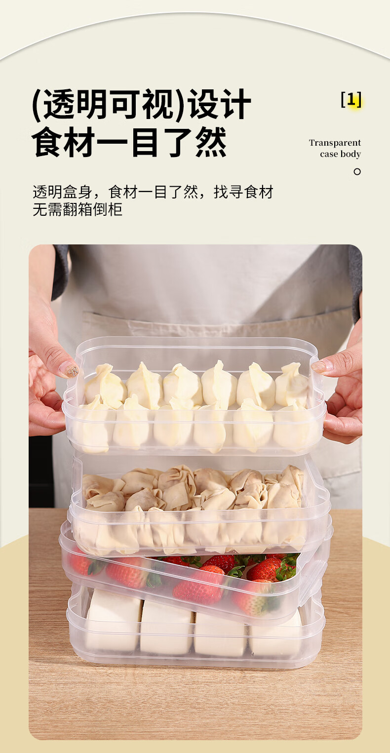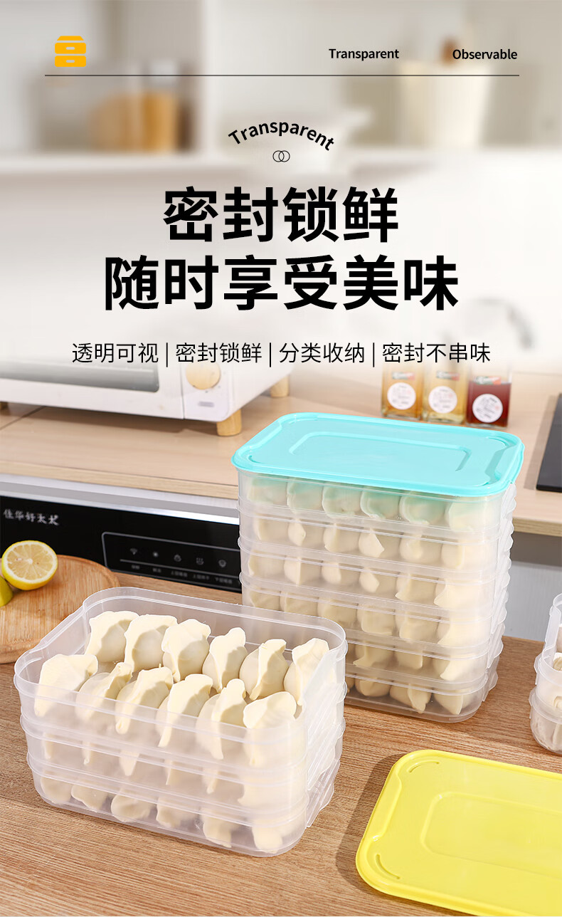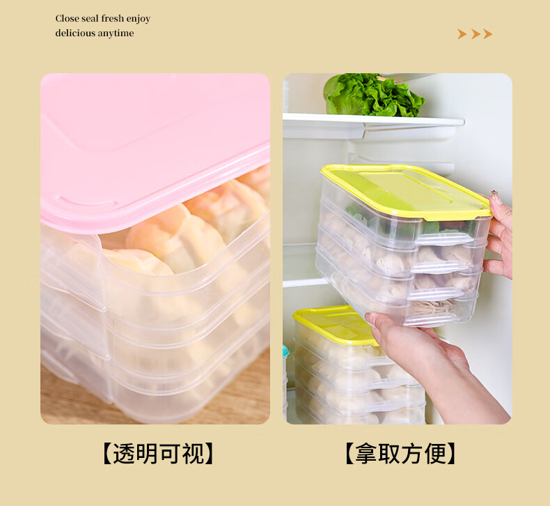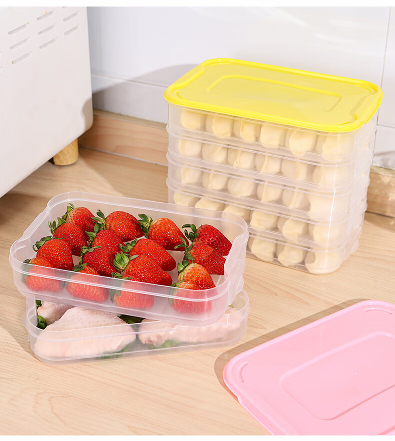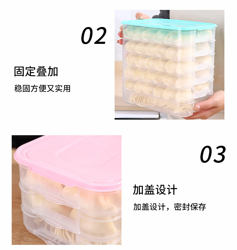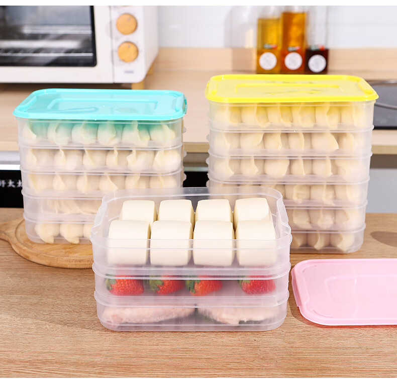 新款饺子盒家用食品级冷冻专用盒密封保鲜馄饨速冻厨房冰箱收纳盒 饺子盒1盖3层(随机色) 马卡龙色盖