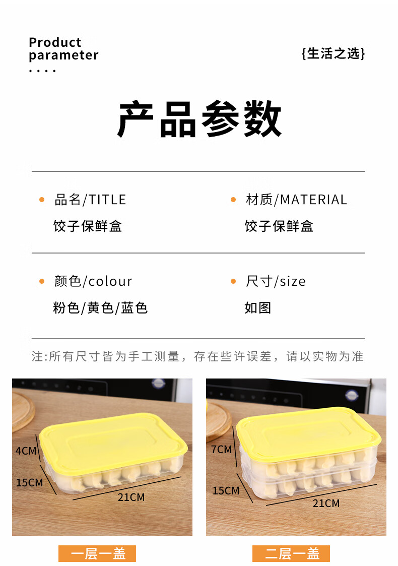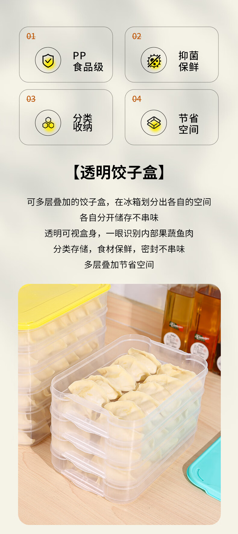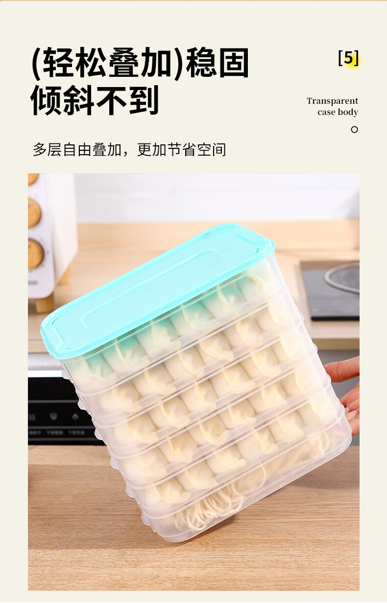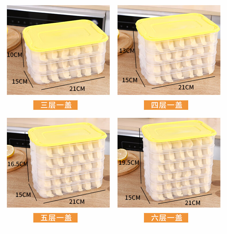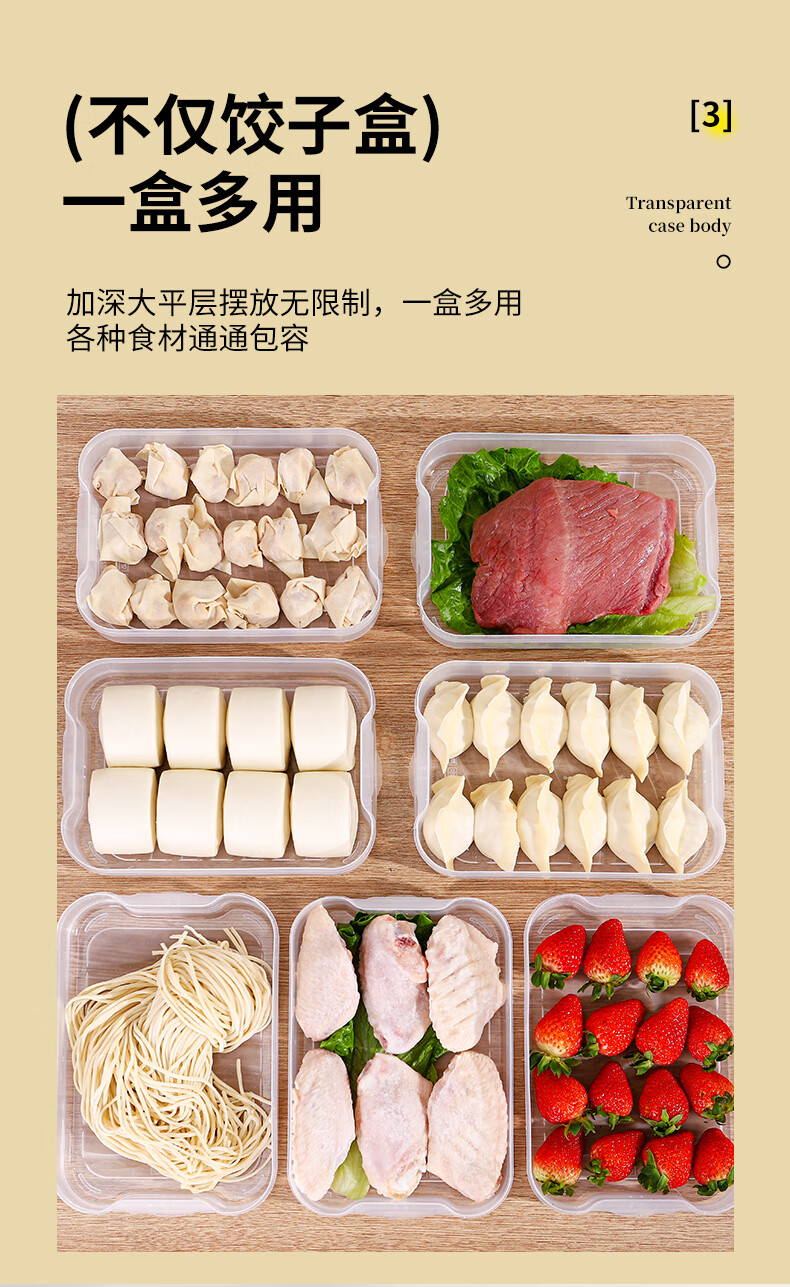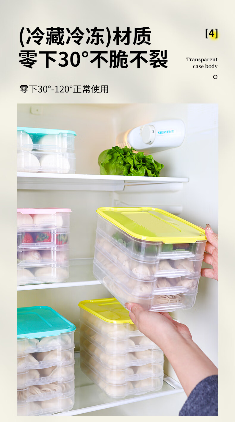 新款饺子盒家用食品级冷冻专用盒密封保鲜馄饨速冻厨房冰箱收纳盒 饺子盒1盖3层(随机色) 马卡龙色盖