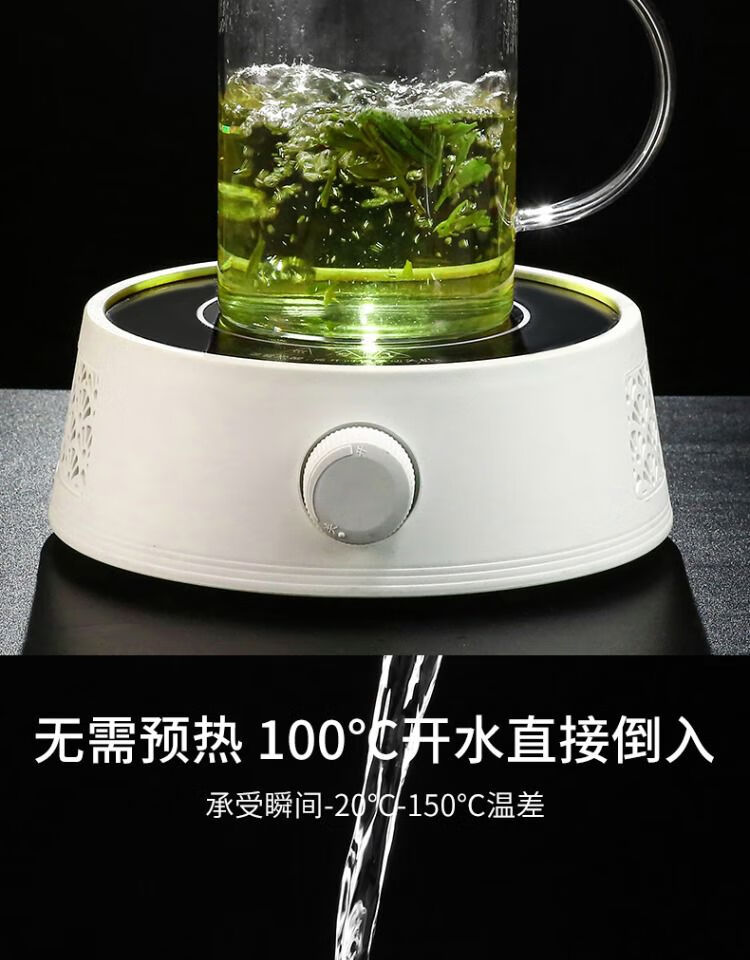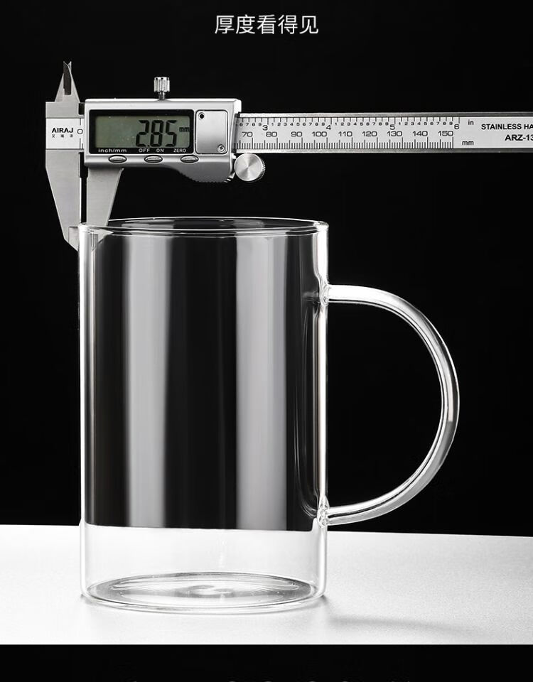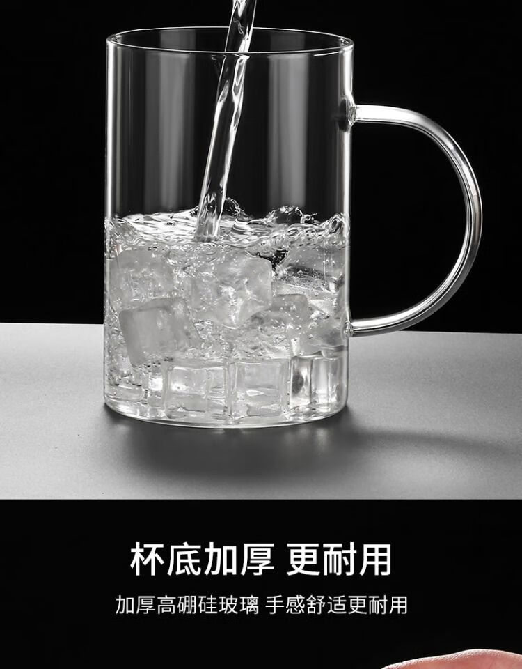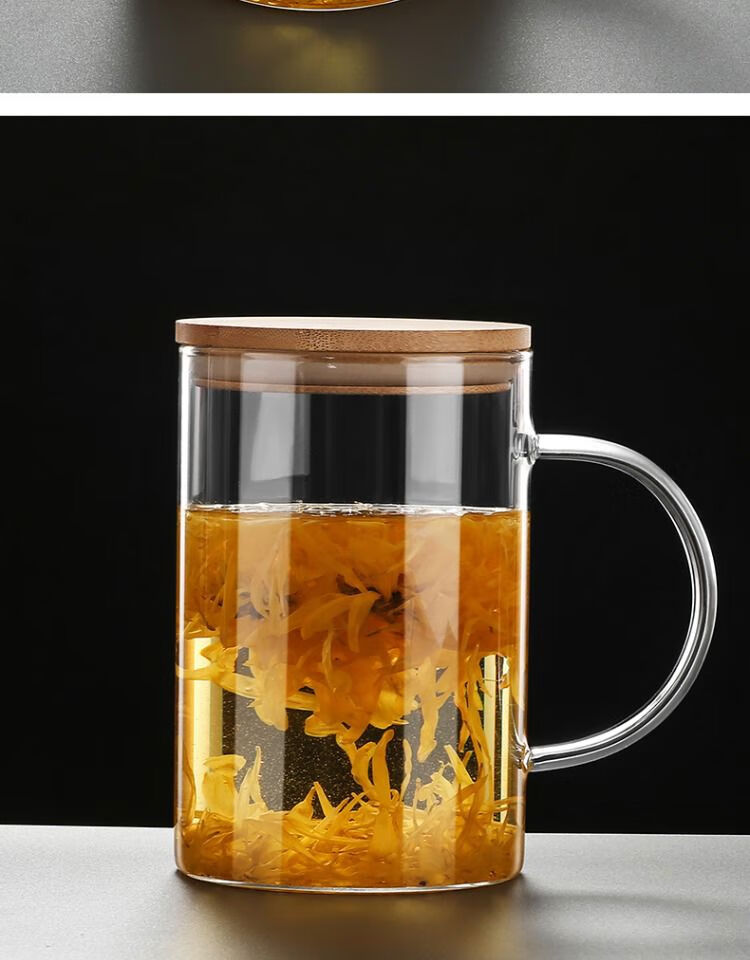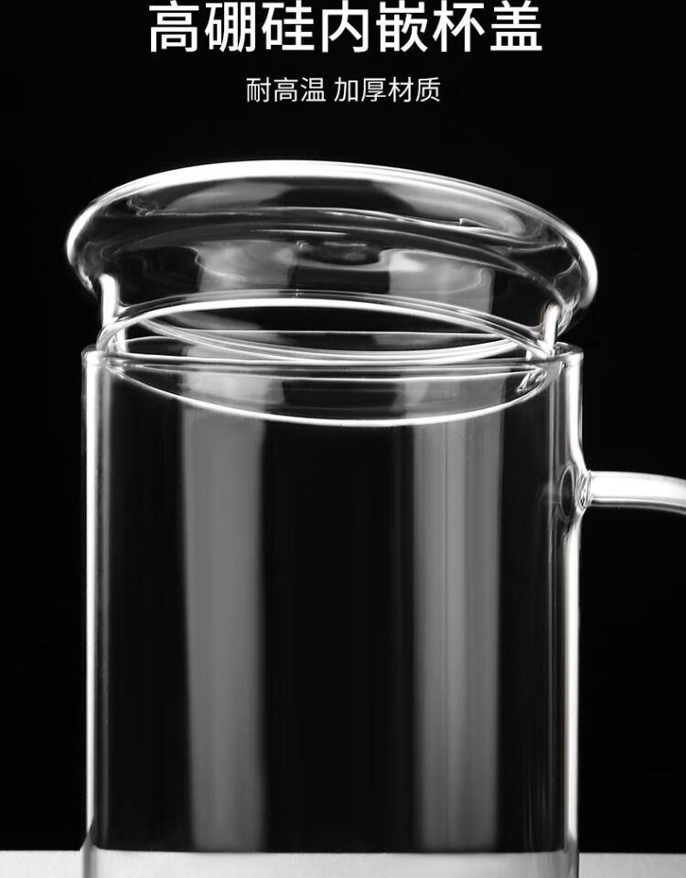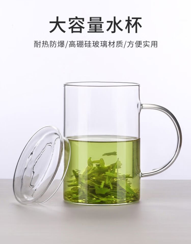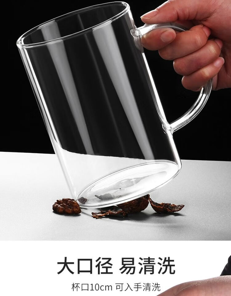 溥畔玻璃杯耐热防爆耐高温茶杯1000ml大容量办公室水杯男士杯子啤酒杯 刻度畅饮杯1200ml玻璃盖带刻度-耐高温可明火加热