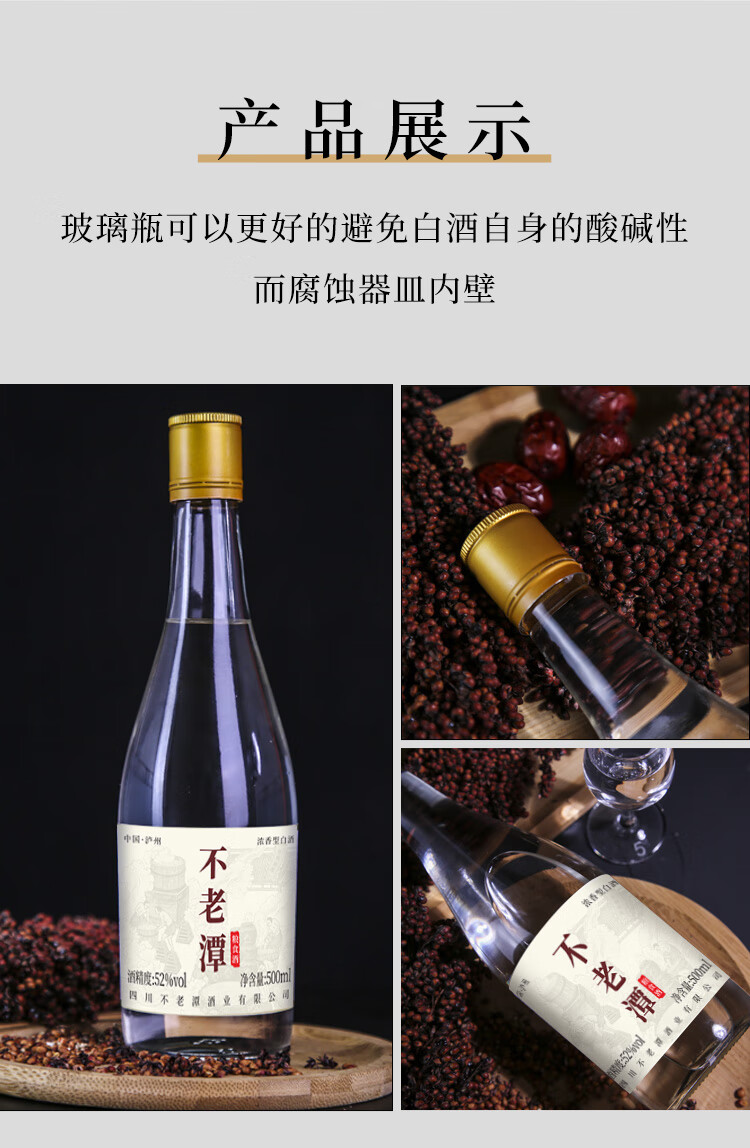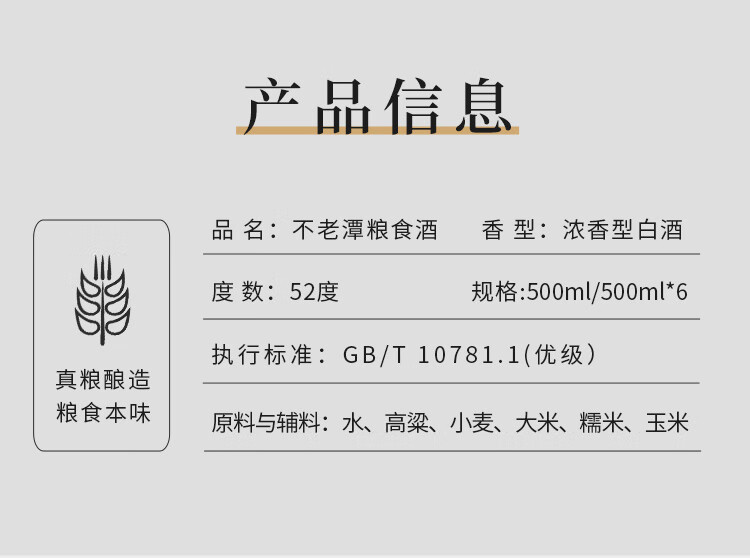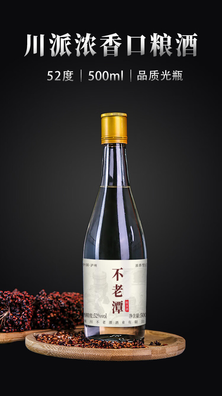 不老潭浓香型高度白酒纯粮食酒瓶装高粱酒自饮收藏送礼口粮酒 52度 500mL 6瓶 102
