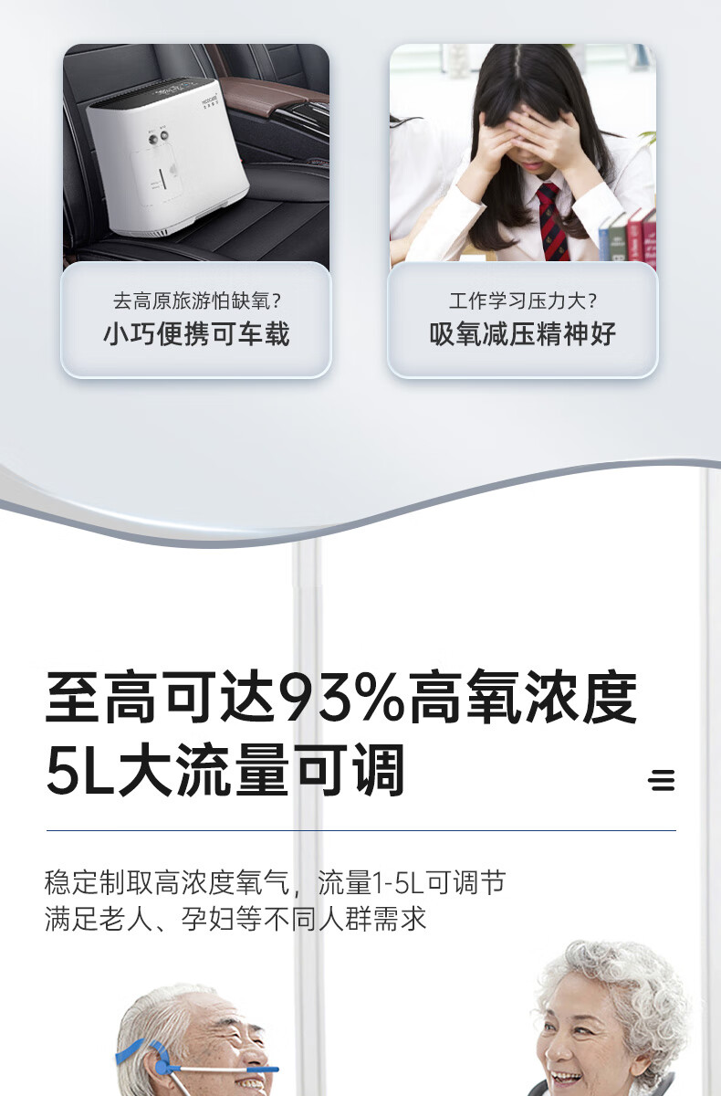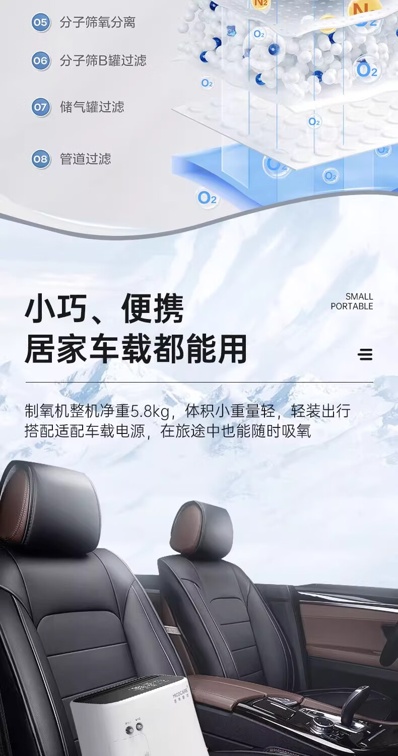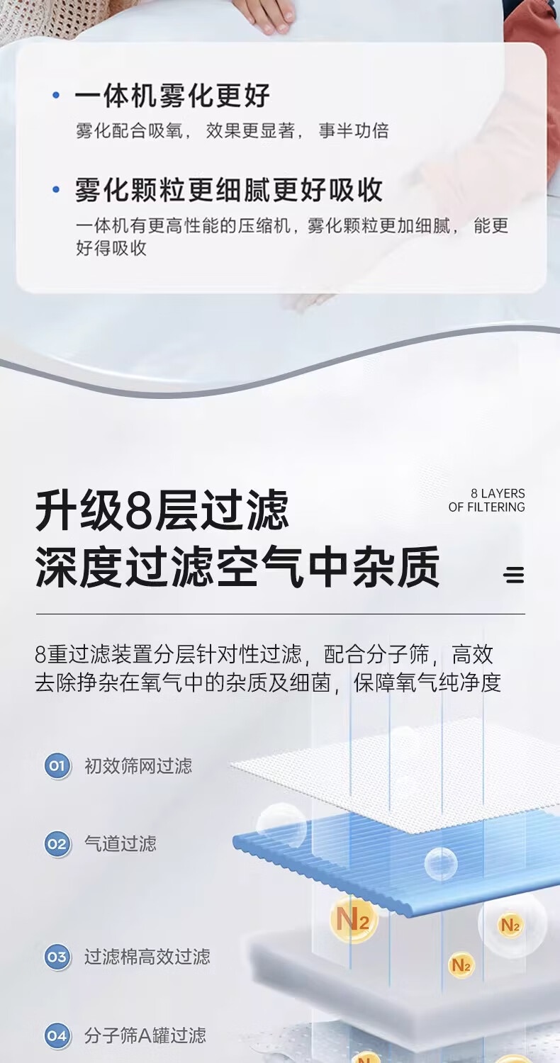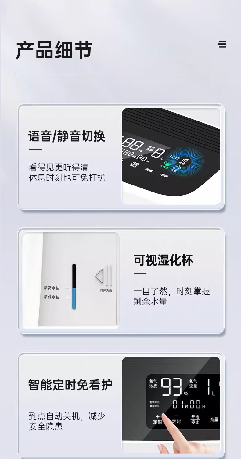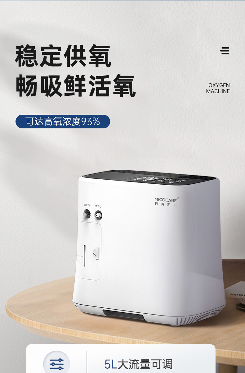 迈克凯尔吸氧机5升L家用制氧机老人孕妇用呼吸制氧雾化一体机轻音吸氧机 【医院雾化款】5升大流量可调+轻音制氧+ 定时供氧