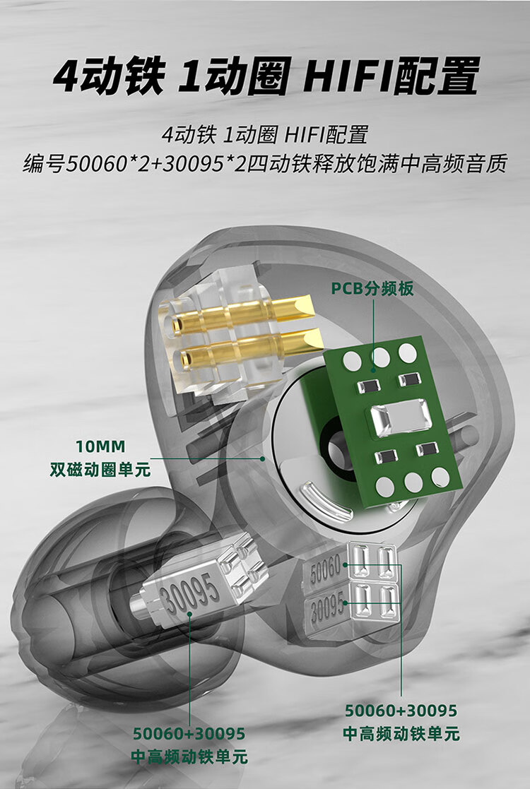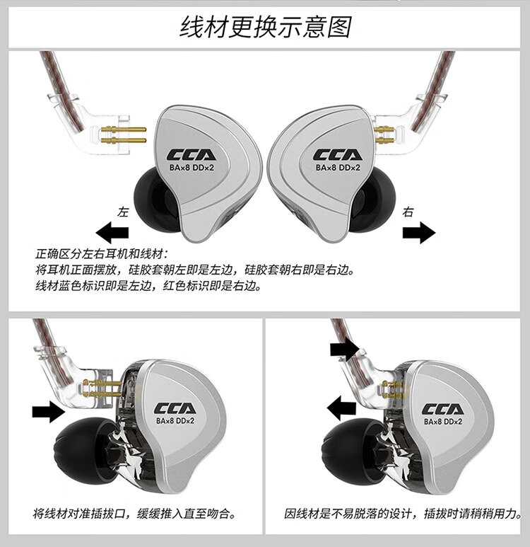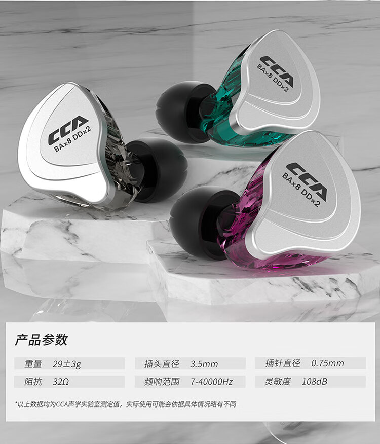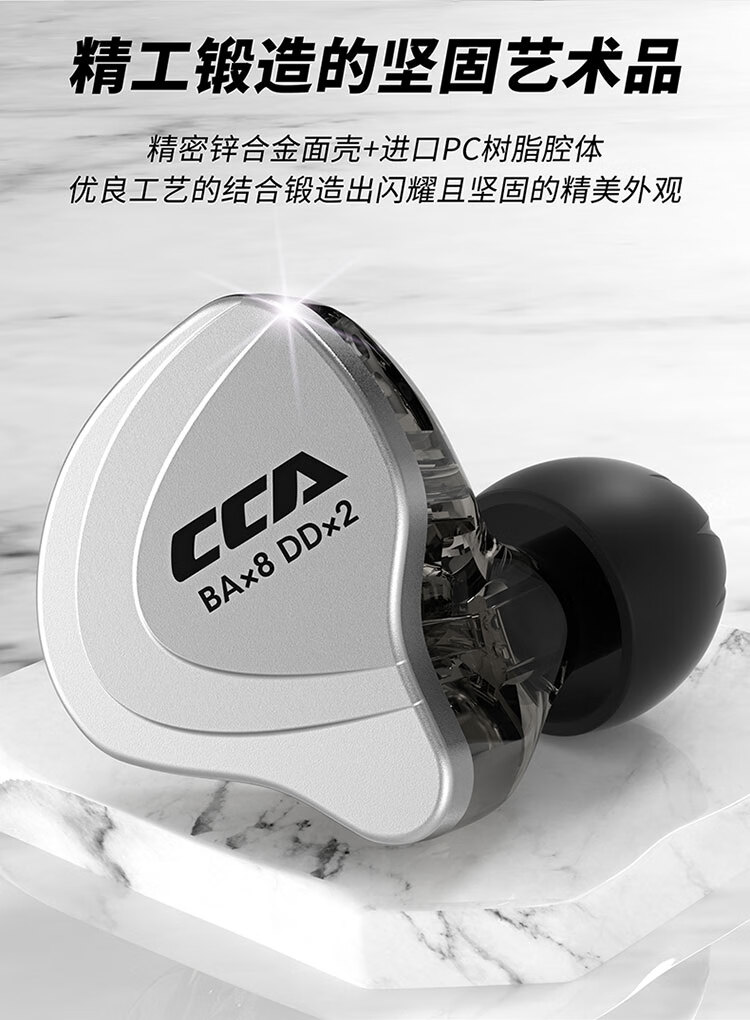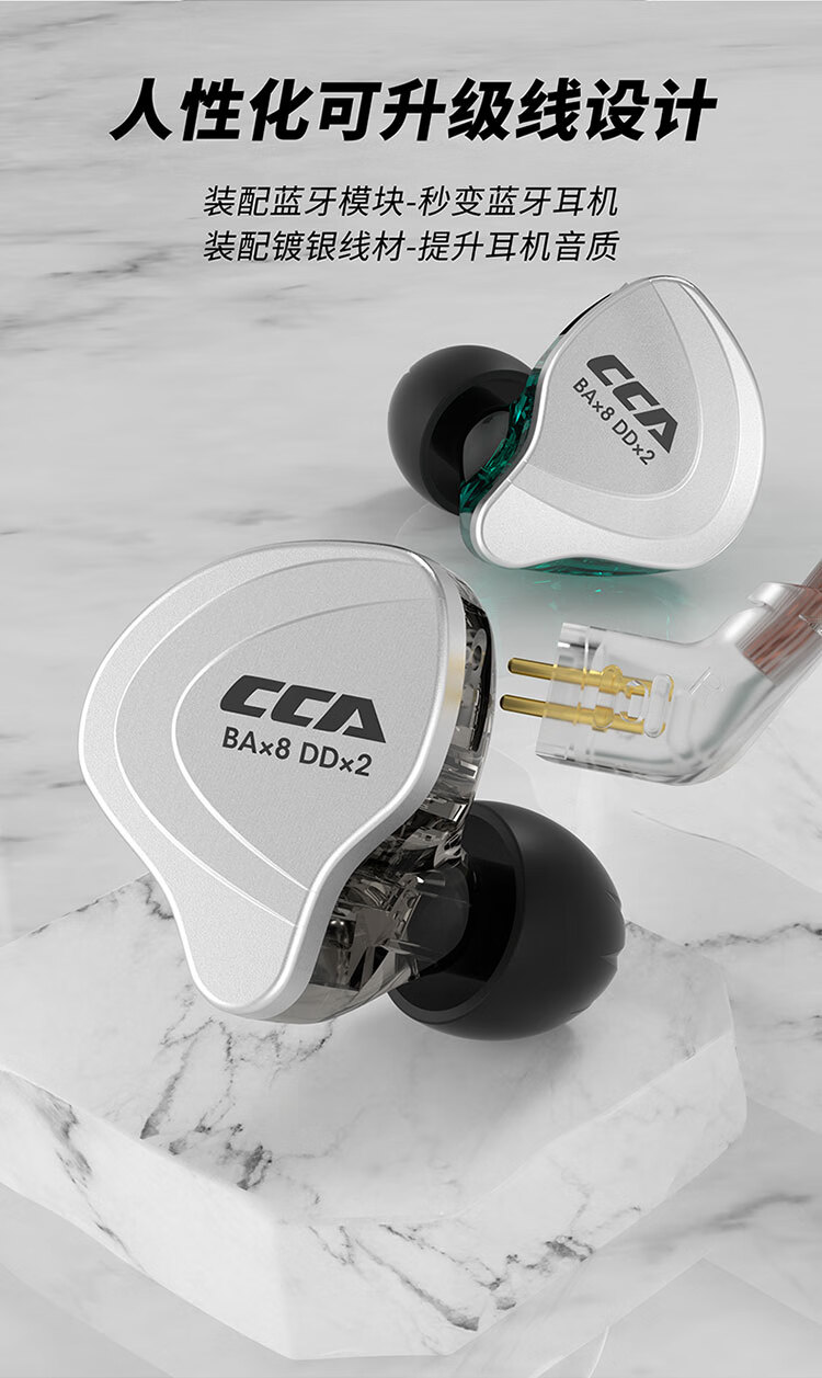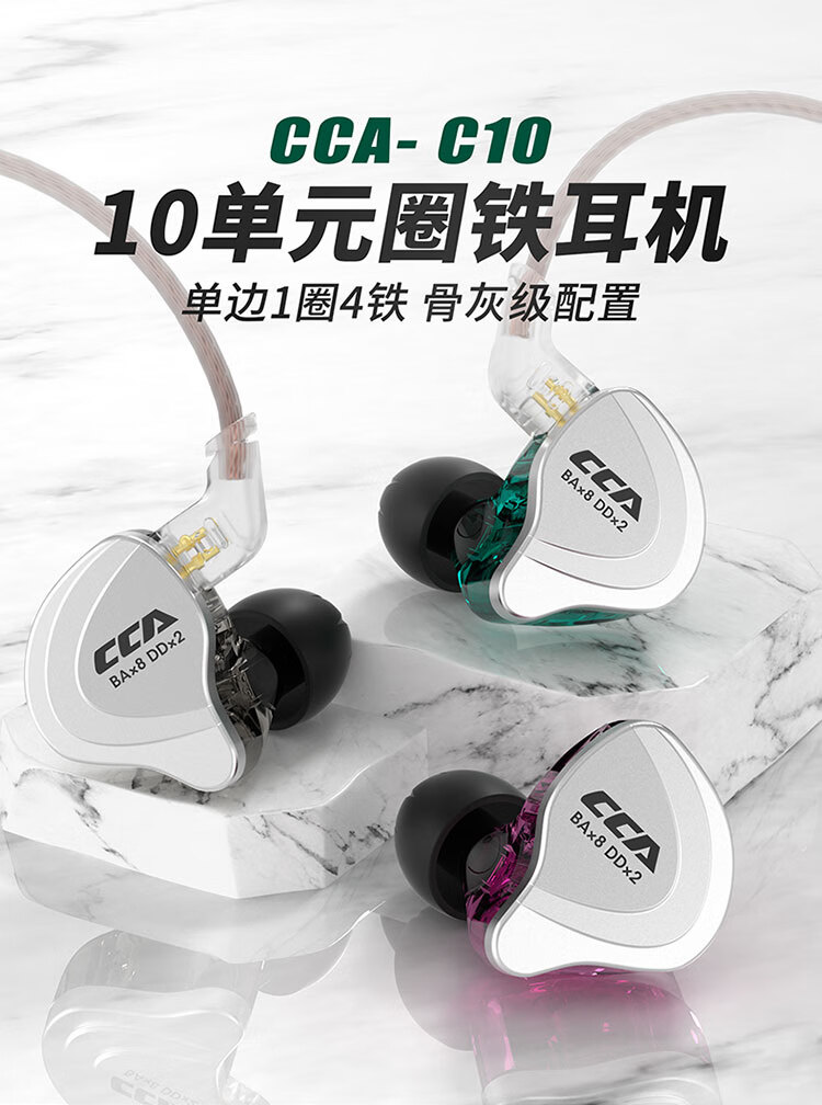 CCA C10十单元圈铁耳机入耳式有线带麦高音质重低音手机运动游戏降噪HiFi发烧音乐耳塞可换线蓝牙 青色【3.5mm圆孔 无麦款】