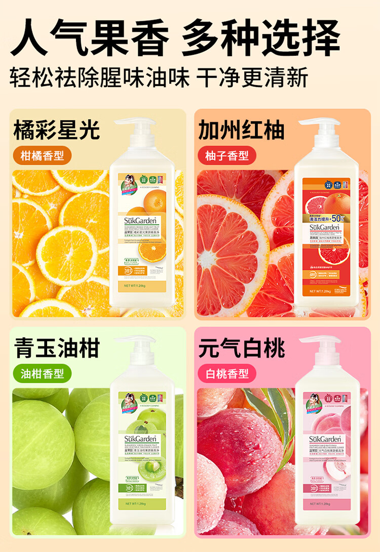 蔬果园洗洁精 食品用A类 果蔬清洗剂 天然去农残去油不伤手洗碗液洗涤灵 【橘彩+红柚】1.28kg*2瓶