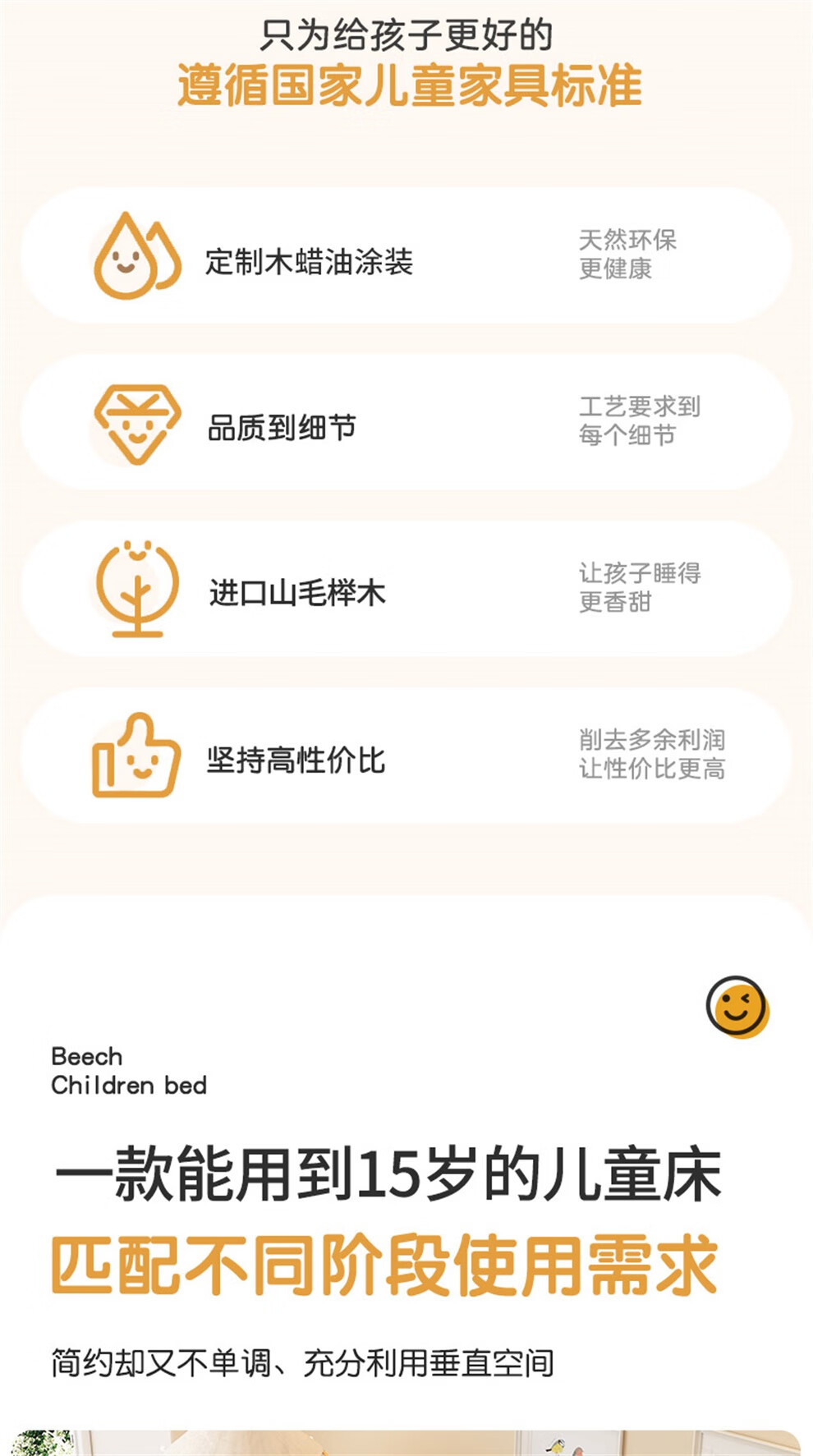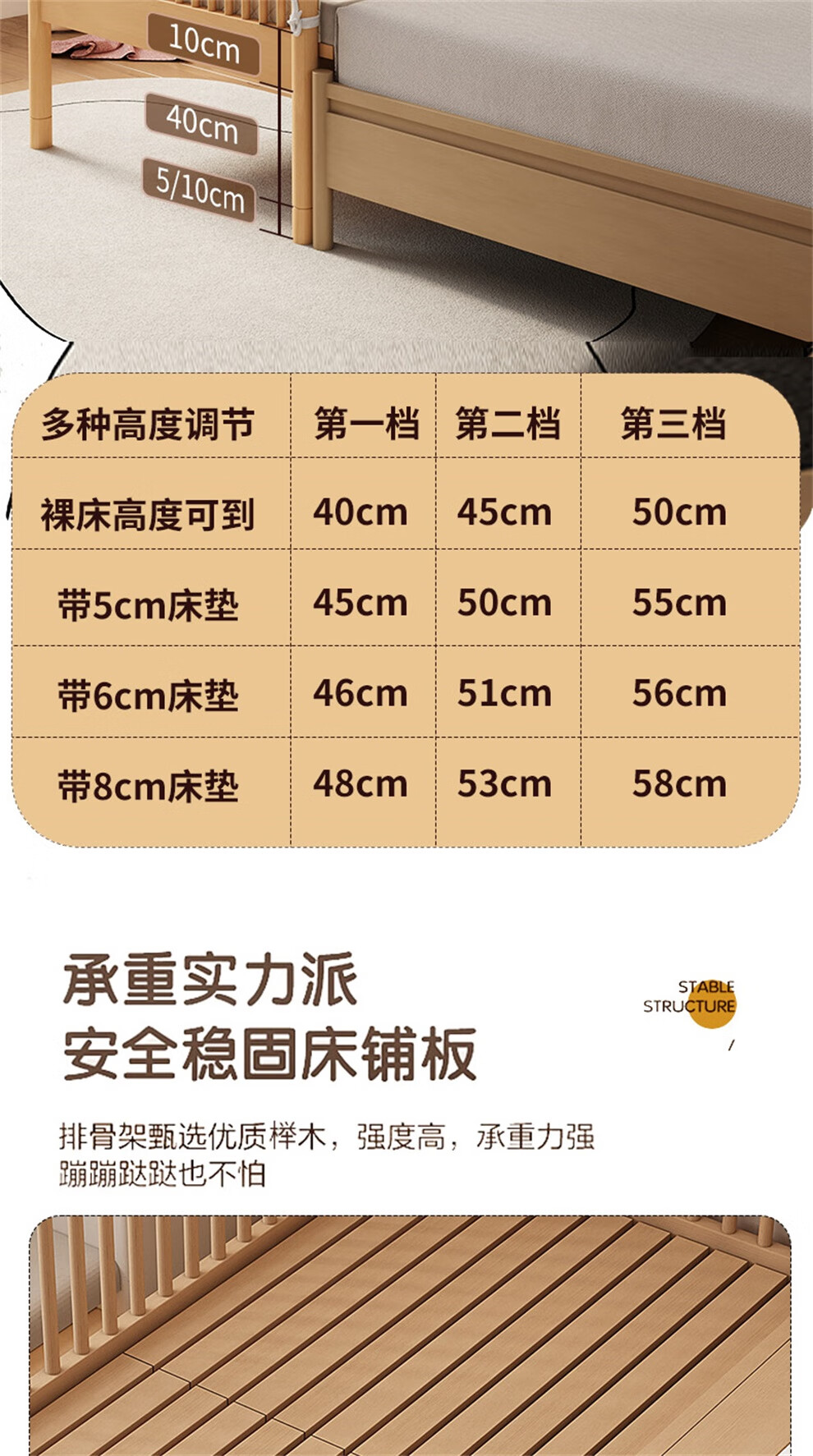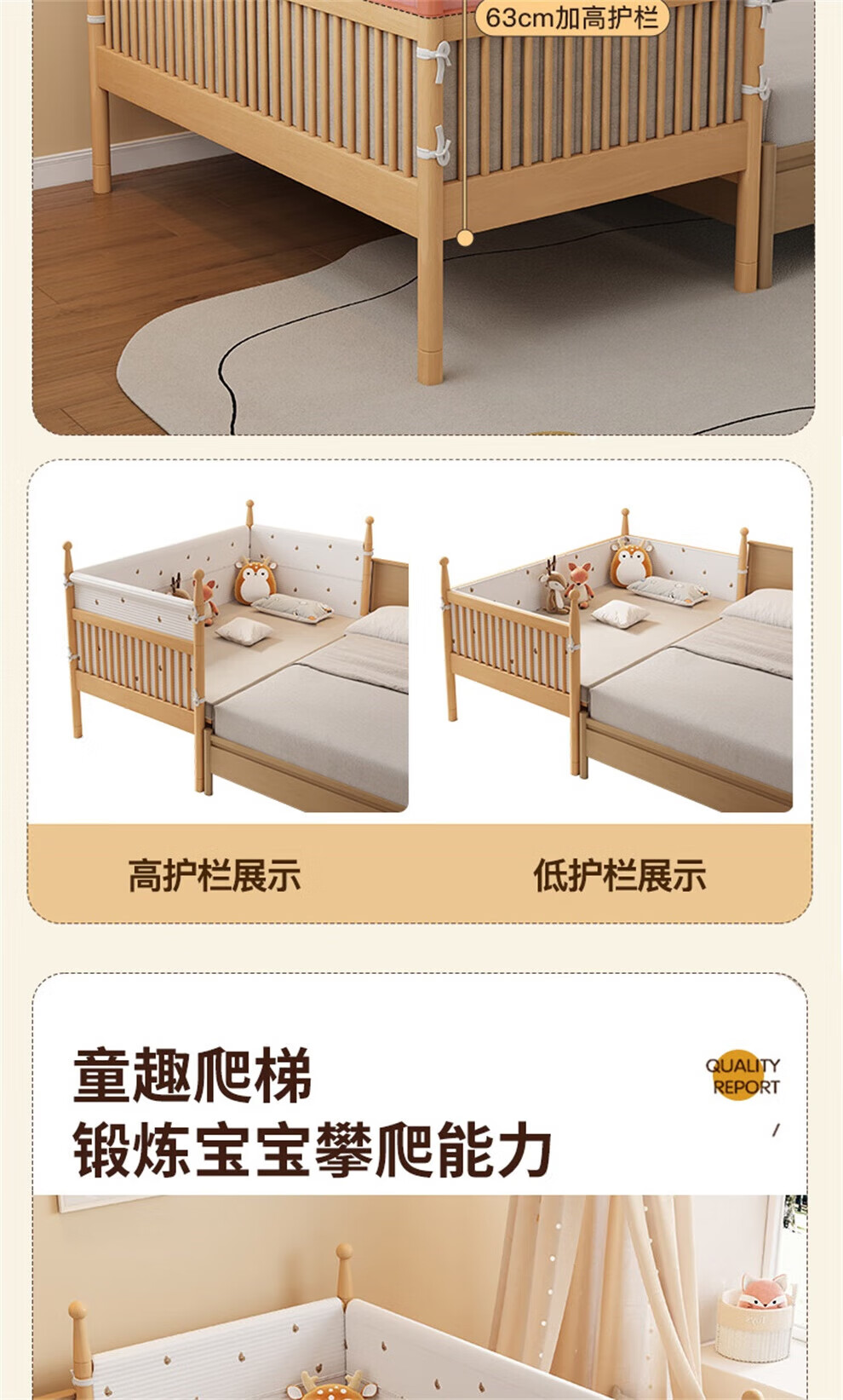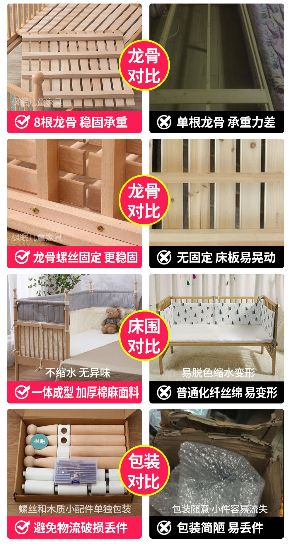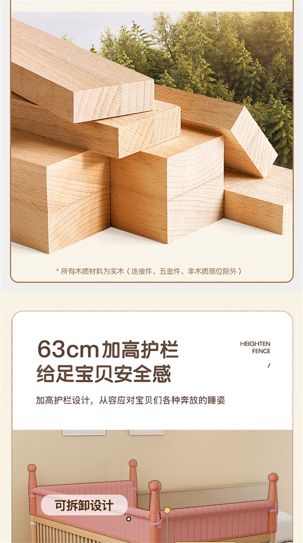 枫眠 儿童床拼接床婴儿床带护栏边床婴幼儿床男女孩床 进口榉木 床+小熊床围+5cm椰棕床垫 180cm*60cm(外径)