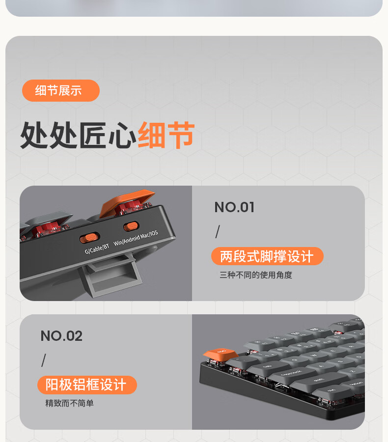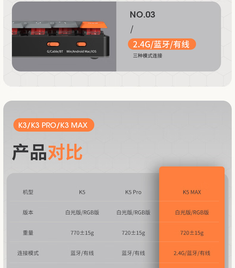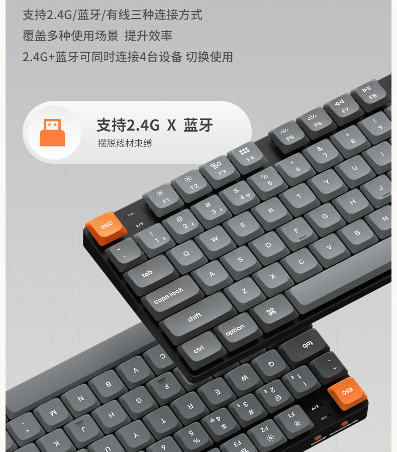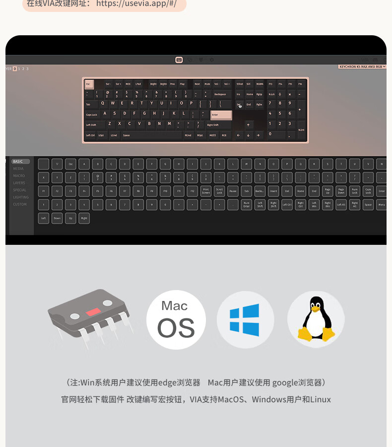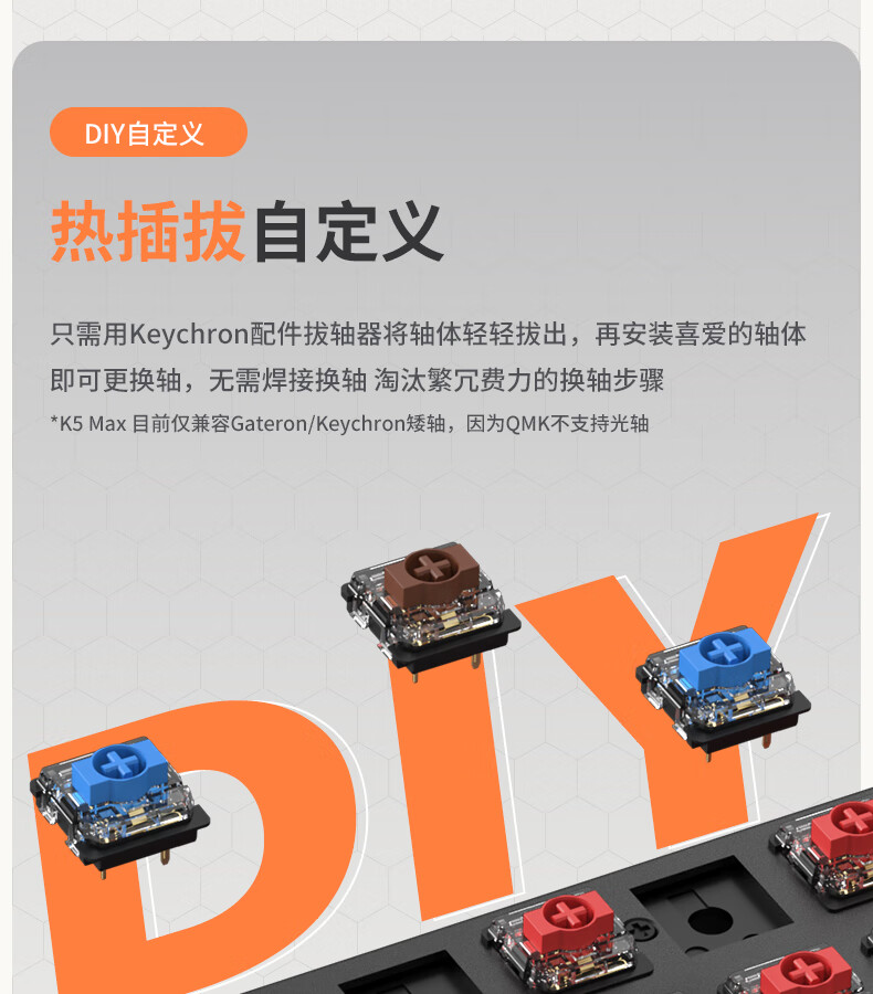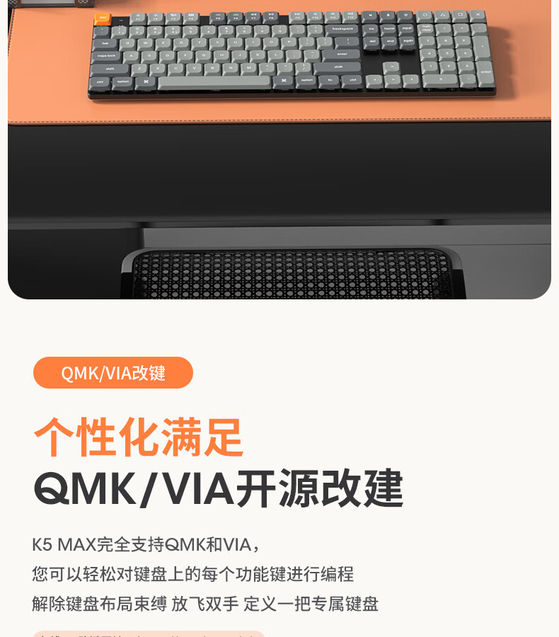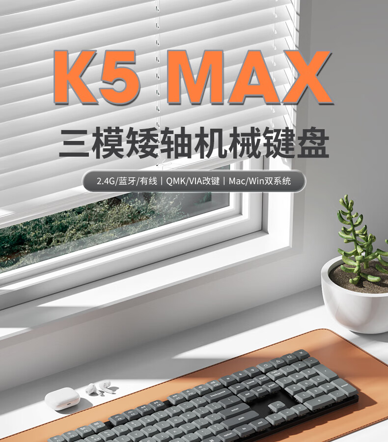 keychron渴创 K5Max 机械键盘 无线三模键盘 QMK/VIA开源改建 客制化键盘 矮轴办公键盘 兼容Mac/Win系统 K5Max-不可插拔 白光版茶轴