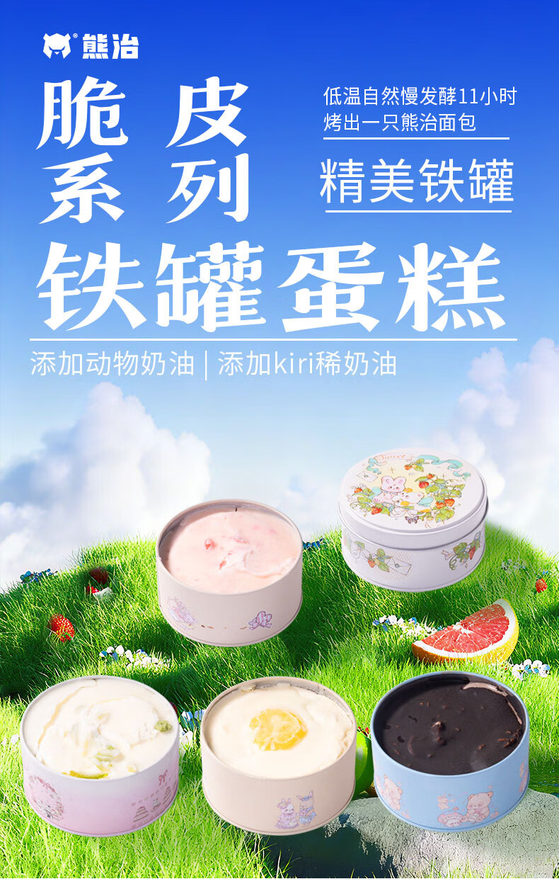 熊治杨枝甘露4寸脆皮动物奶油罐罐蛋糕甜品盒子蛋糕110g Kiri淡奶油 【5味*1】罐罐全家桶
