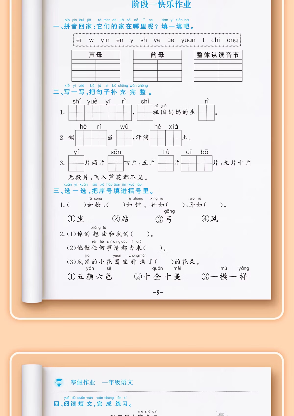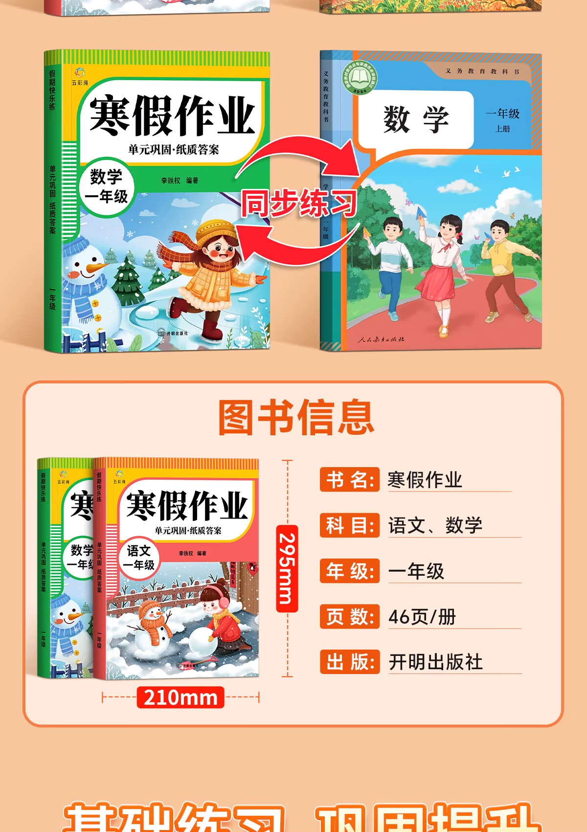 金枝叶一年级上册寒假作业人教版语文数学全套小学1年级预习复习练习册衔接教材小学生同步练习题单元测试专项训练 一年级【语文+数学】寒假作业