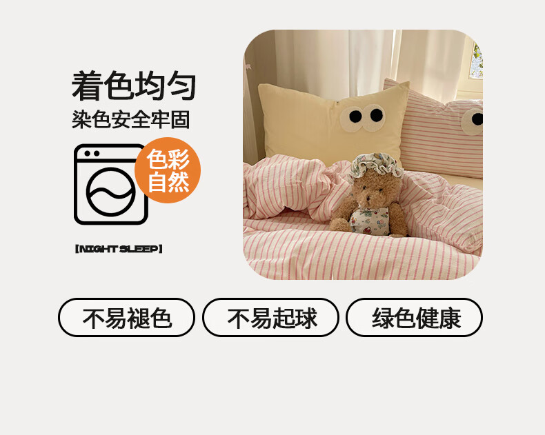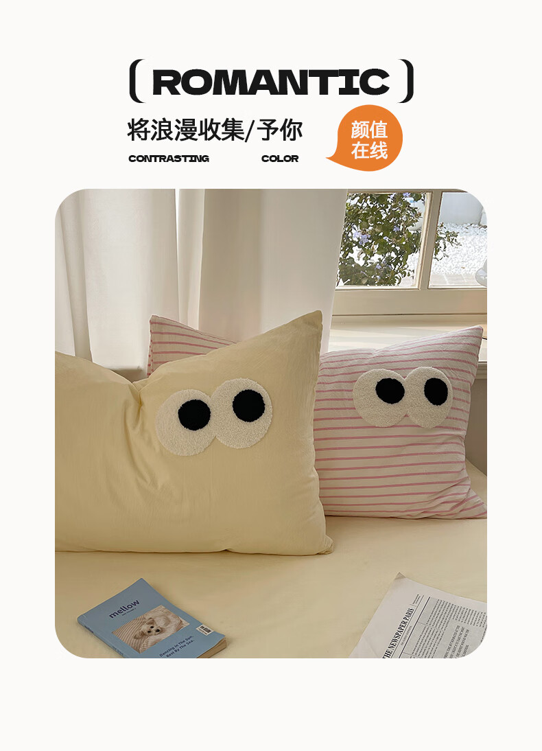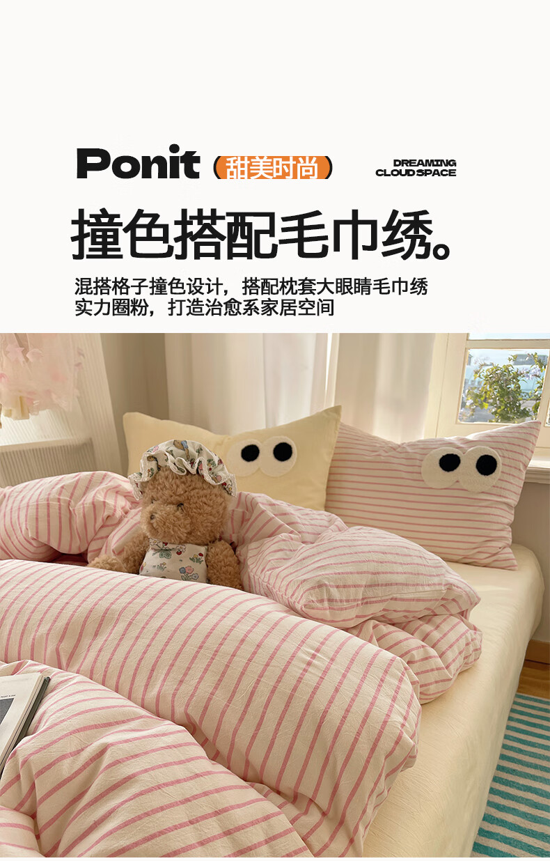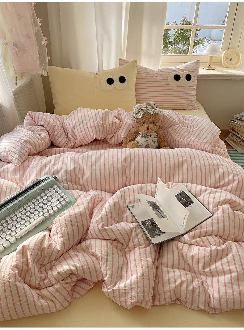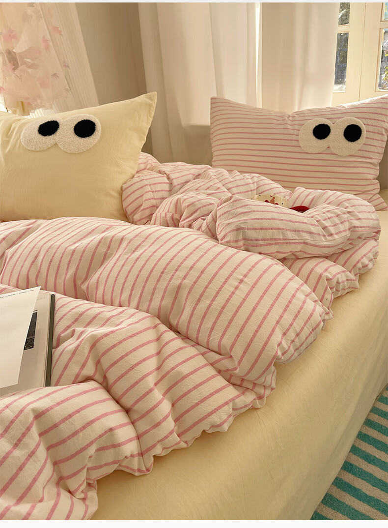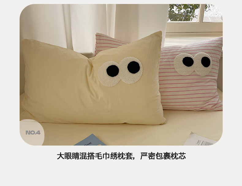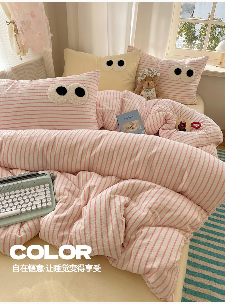 VJEA类水洗棉四件套亲肤软糯毛巾绣床单被套混搭学生宿舍三件套床品 云柔水洗棉-大眼海盐奶黄 三件套0.9m 床单款 -被套150*200cm