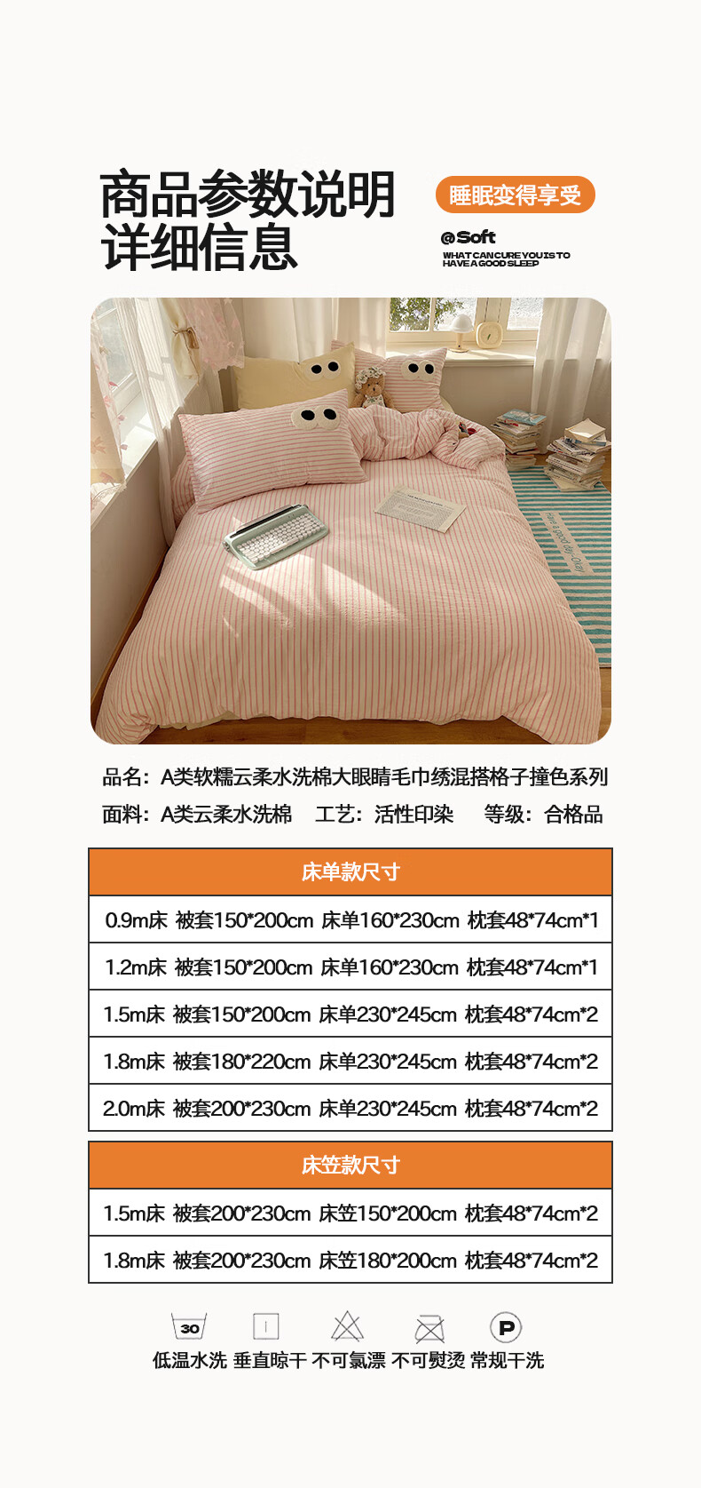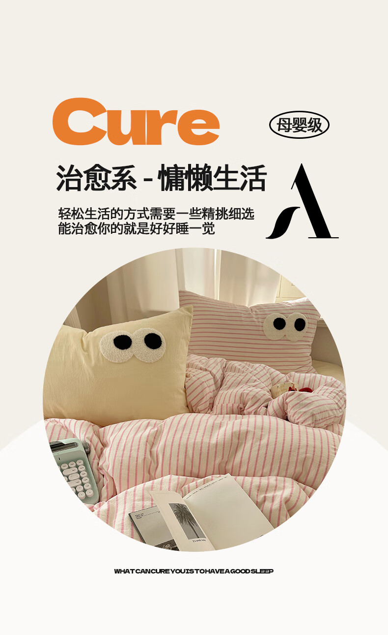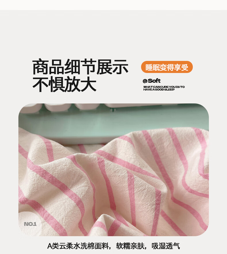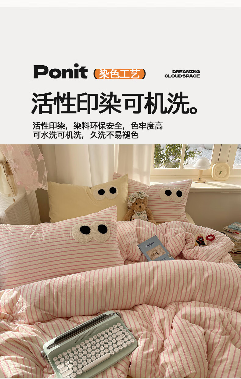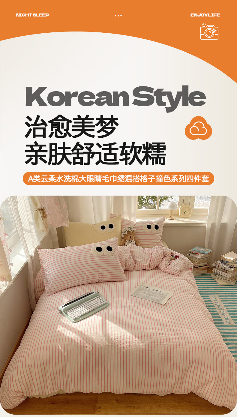 VJEA类水洗棉四件套亲肤软糯毛巾绣床单被套混搭学生宿舍三件套床品 云柔水洗棉-大眼海盐奶黄 三件套0.9m 床单款 -被套150*200cm