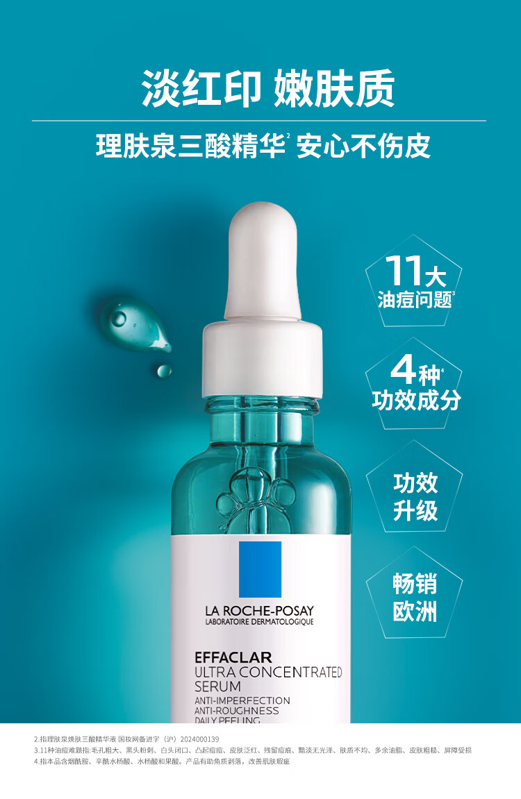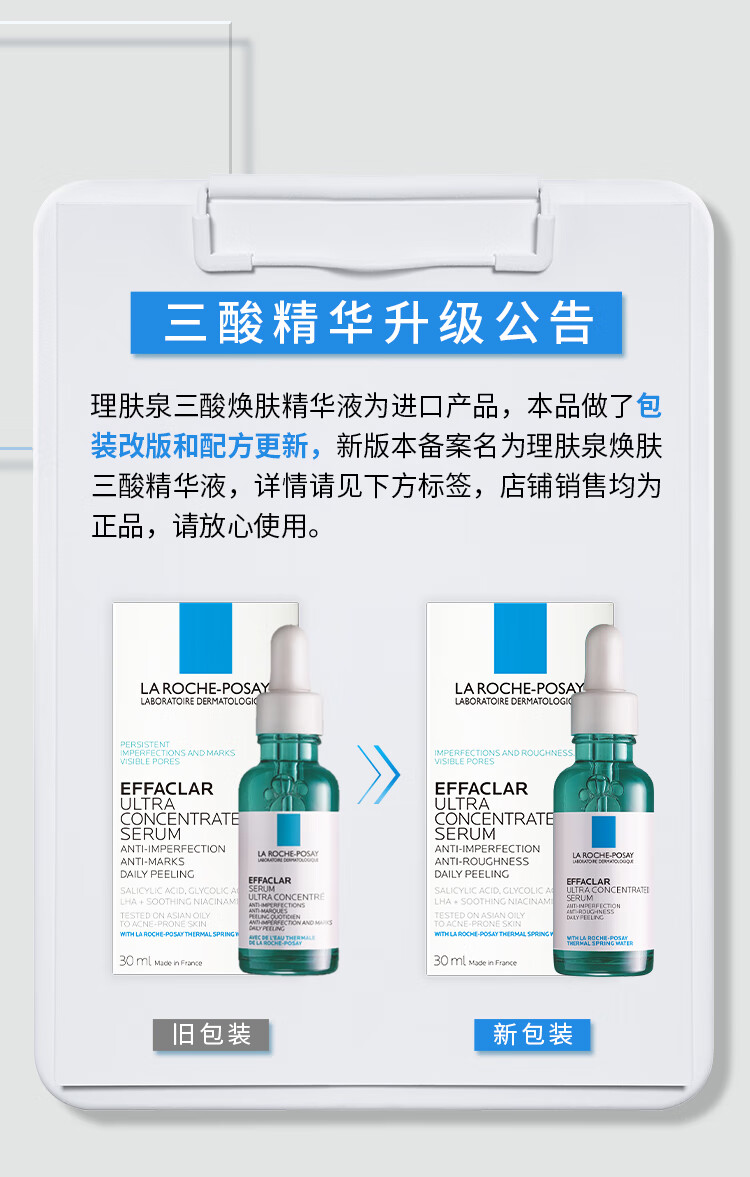 理肤泉【孙颖莎推荐】三酸精华30ml*2支装 水杨酸褪油痘护肤品 直播专属
