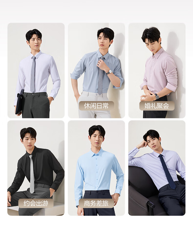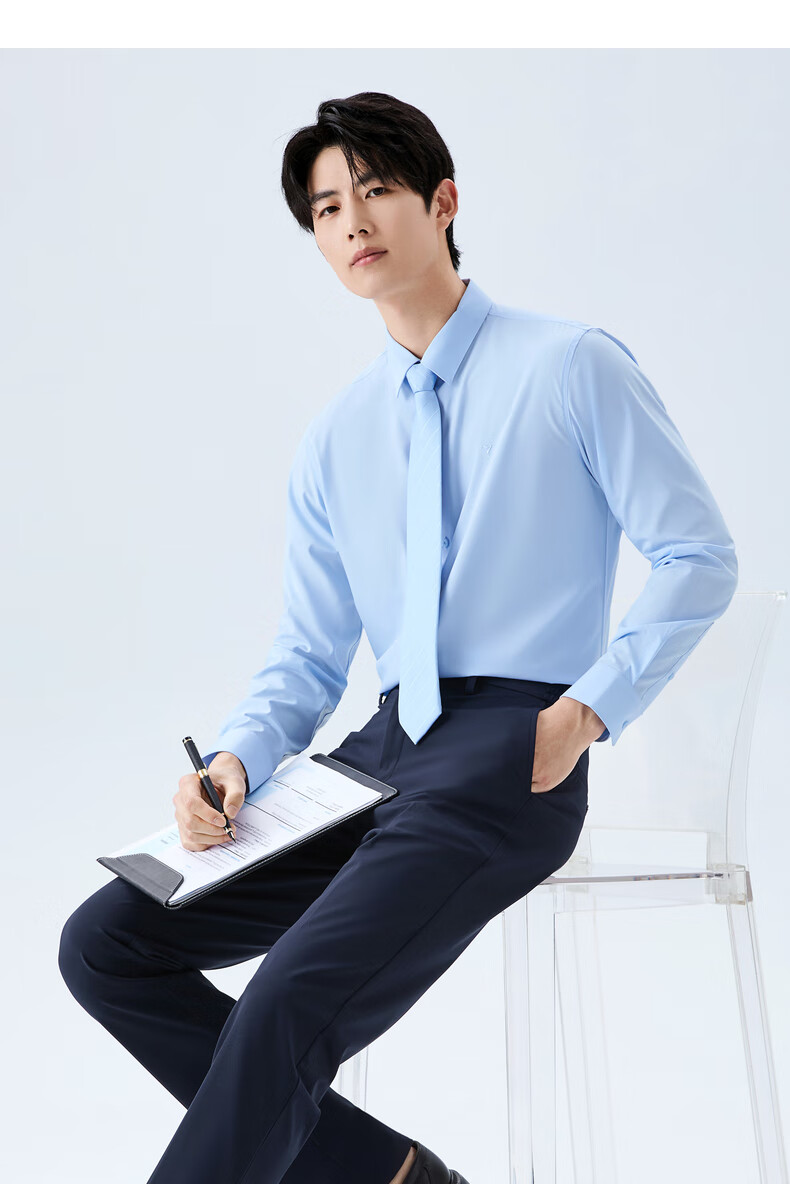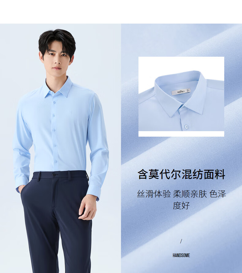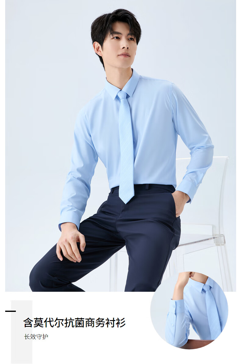 柒牌【10A抗菌莫代尔】男装商务长袖衬衫春秋男士结婚白衬衣正装上衣