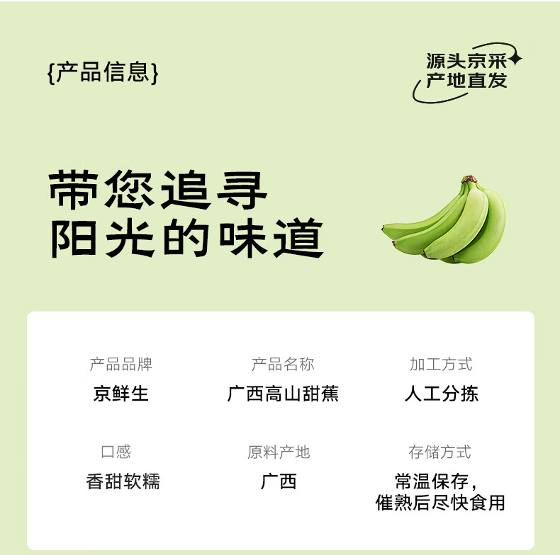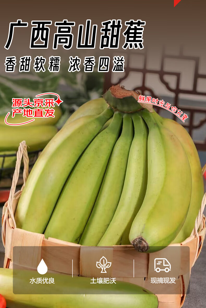 京鲜生广西高山绿皮甜香蕉净重9斤 单根套网100g+ 变软即食源头直发包邮