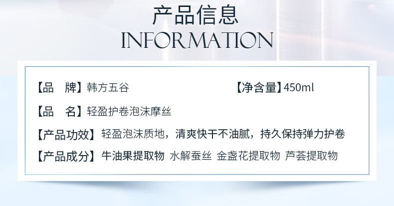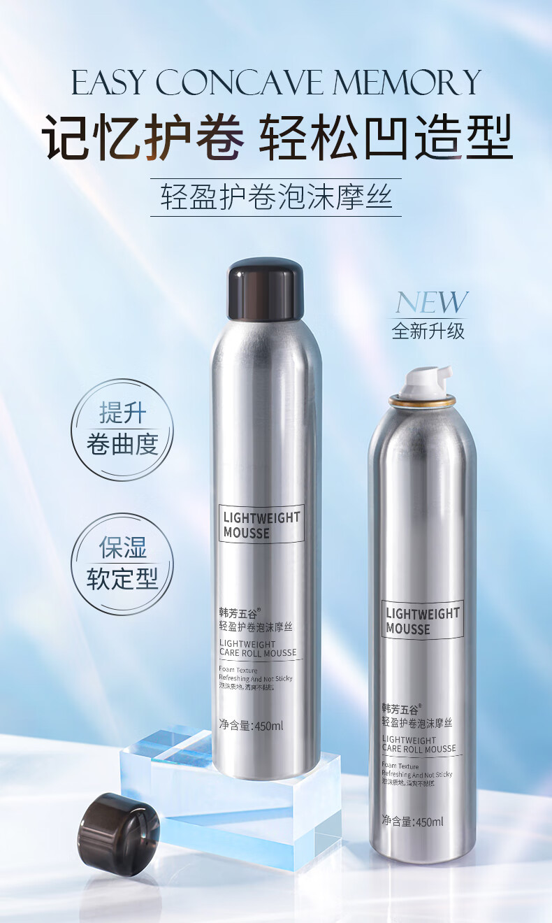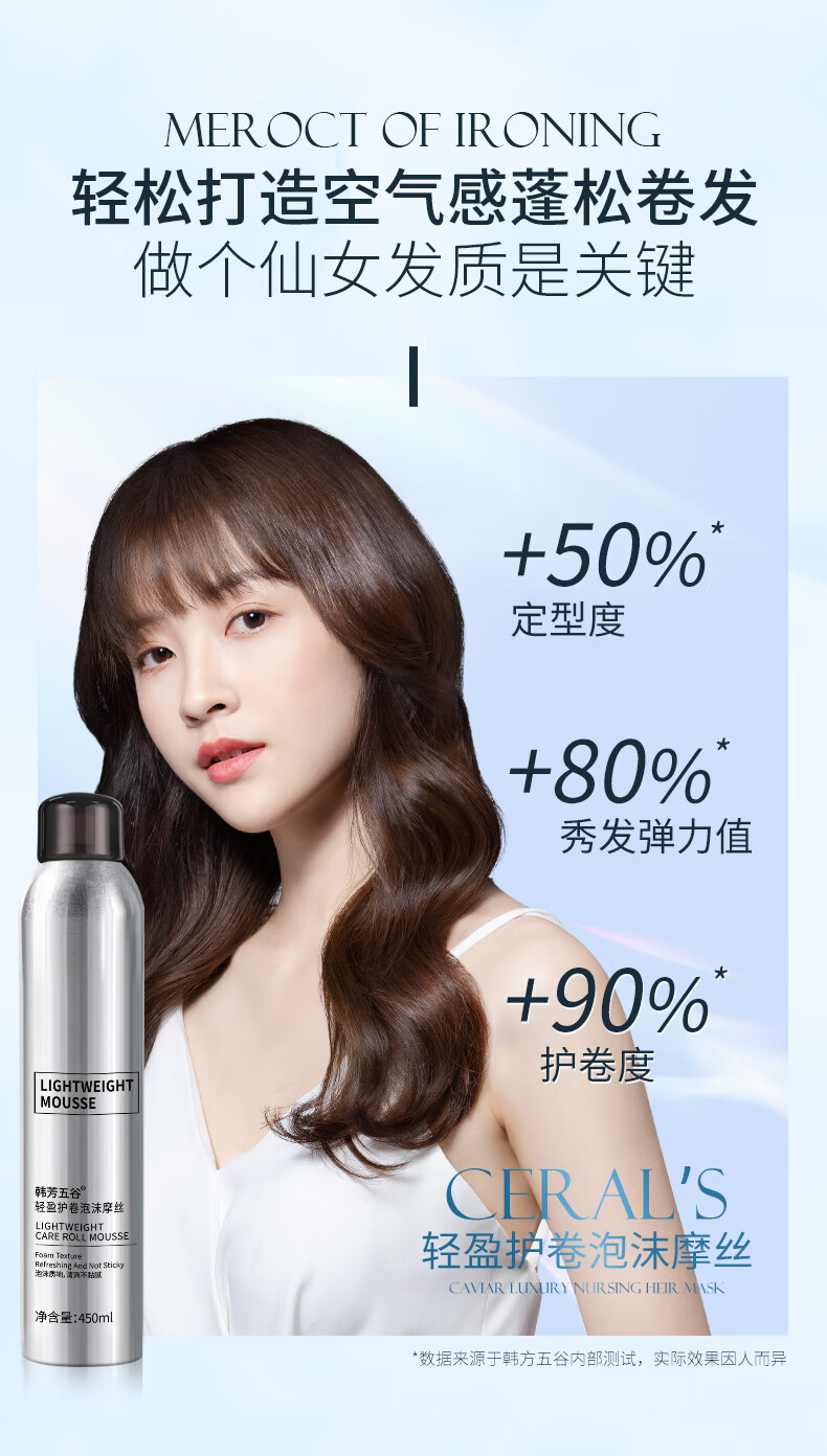 韩方五谷泡沫发蜡弹力护卷摩丝烫卷发喷雾保湿定型蓬松弹力素男女士450ml