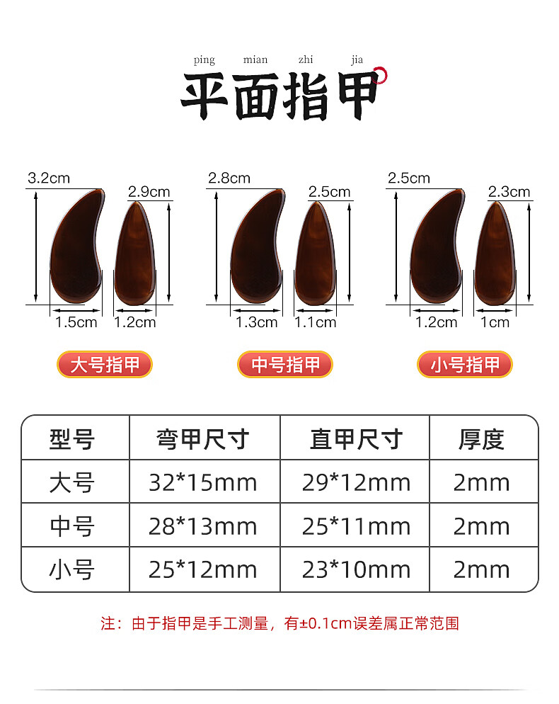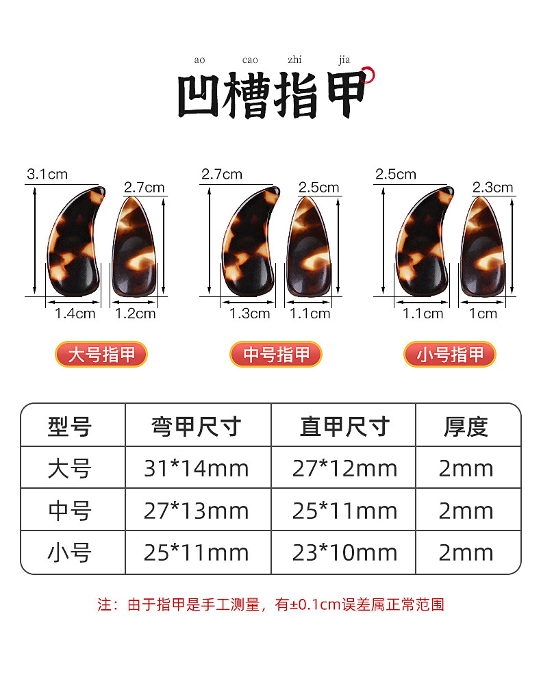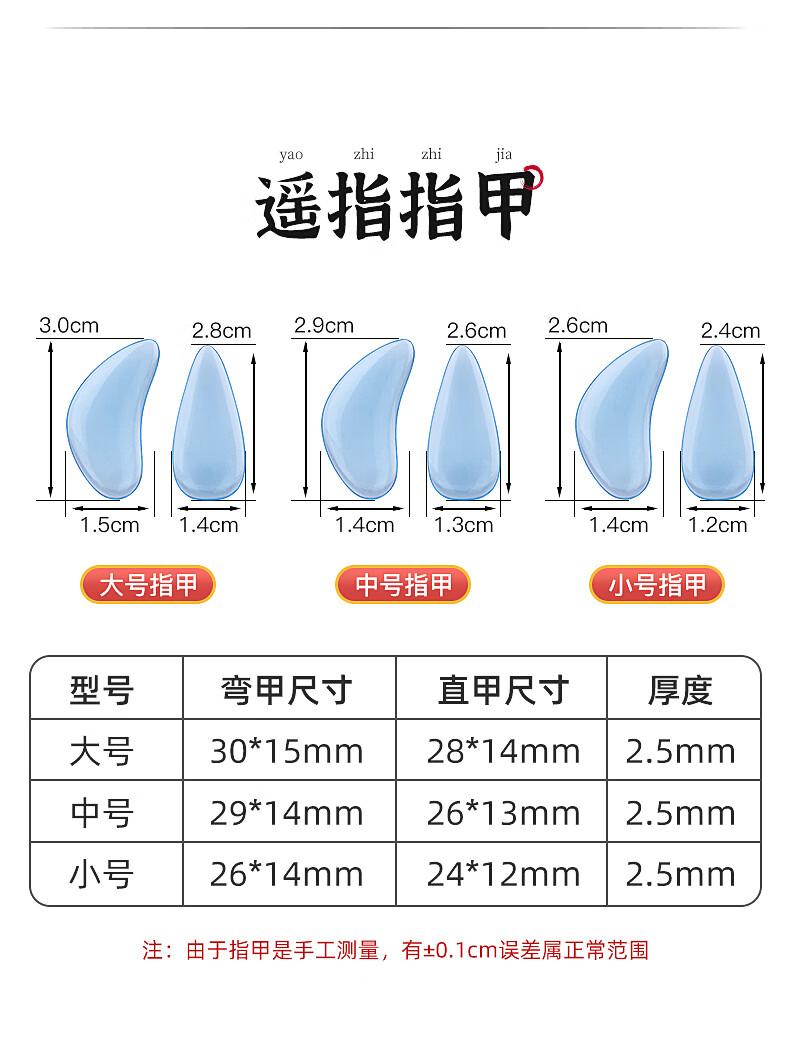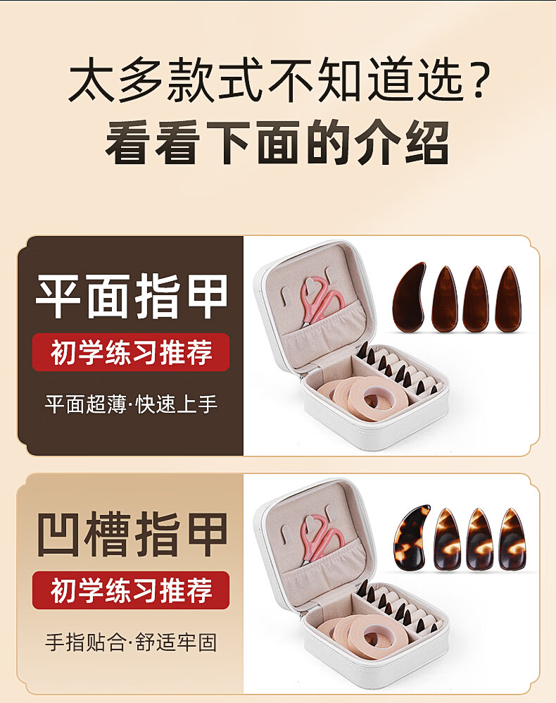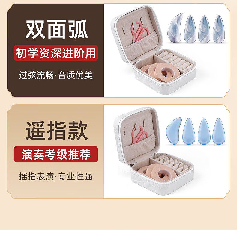 曼尔乐器古筝指甲演奏级儿童成人初学双面弧指甲片含古筝胶布礼盒款