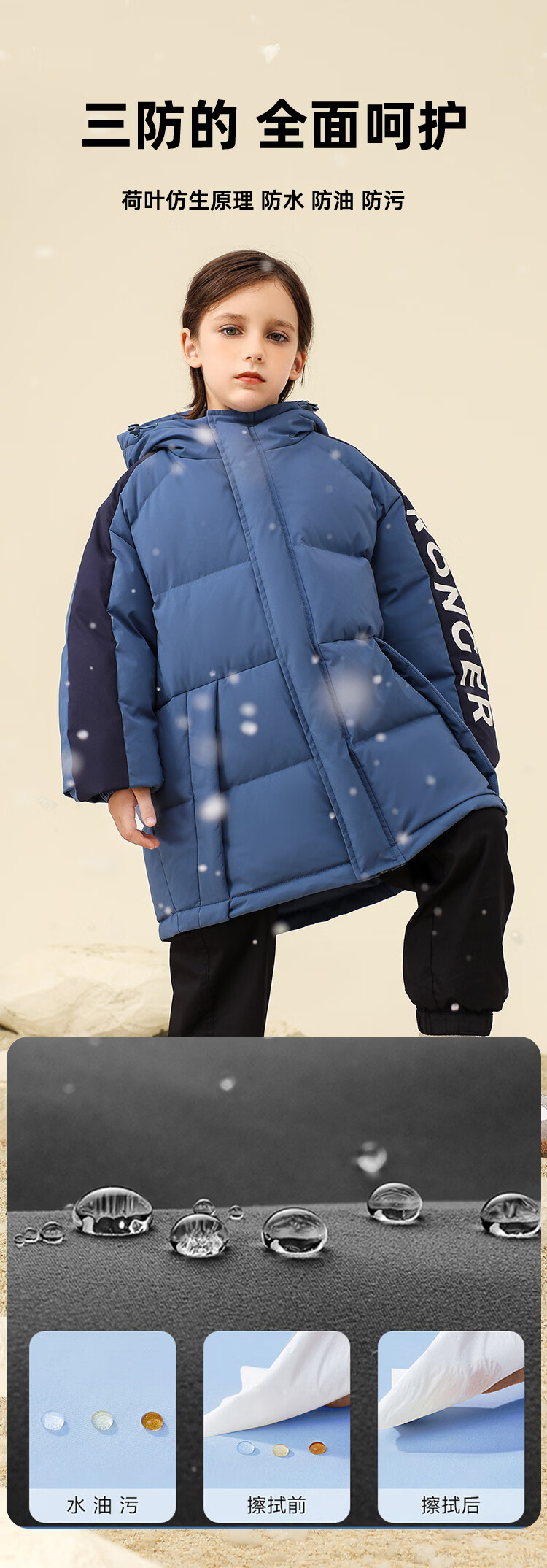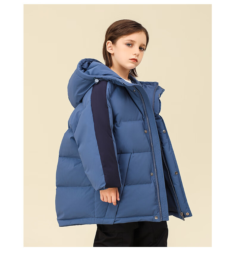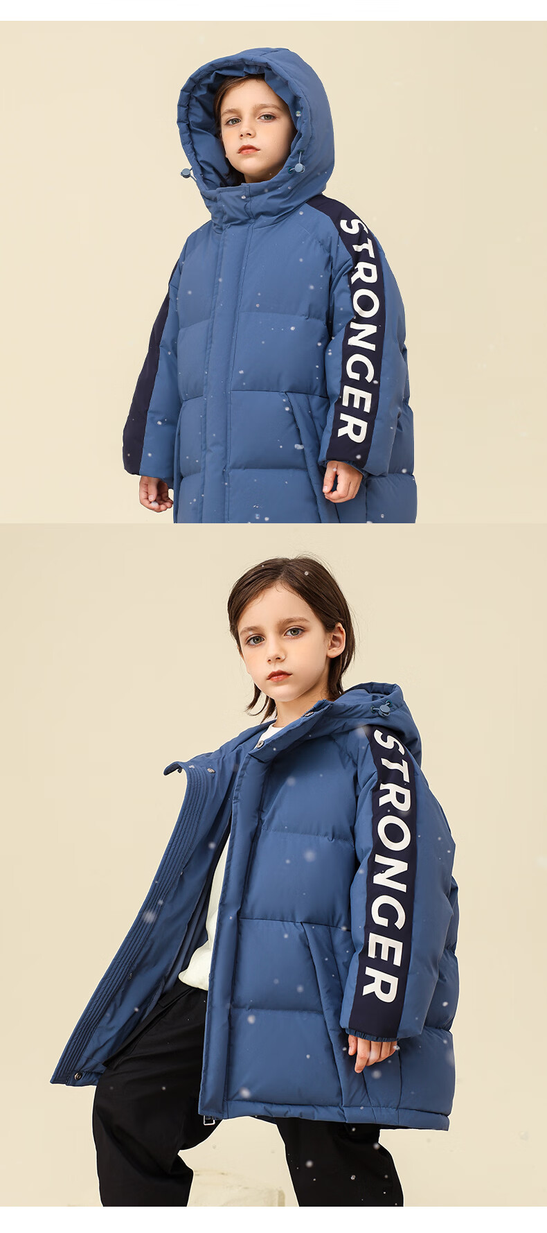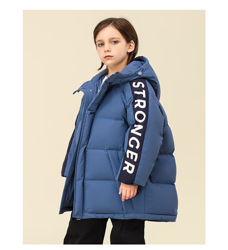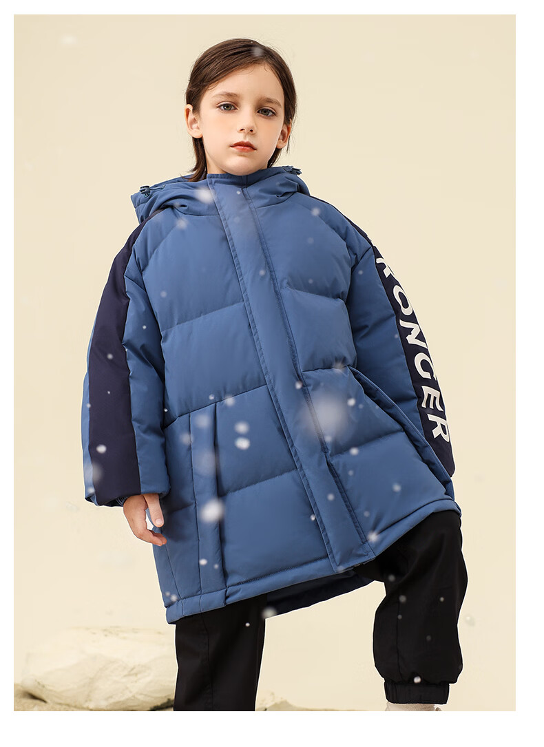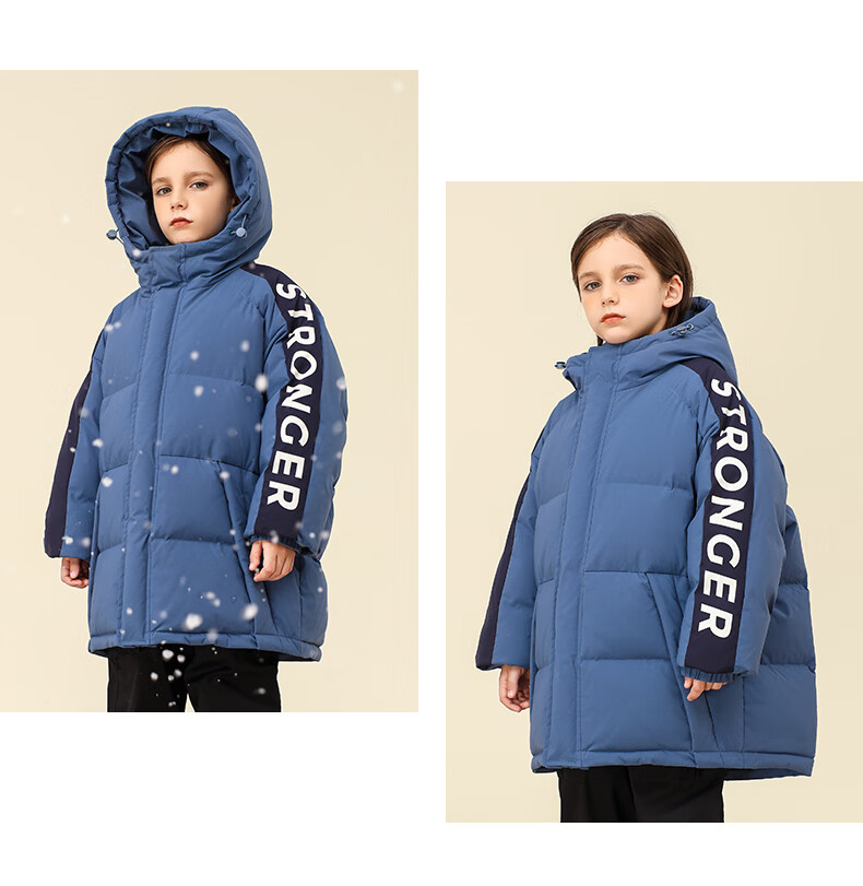 康博儿童男童冬季中长款羽绒服新款宝宝中大童宽松洋气保暖厚外套 牛仔蓝 160