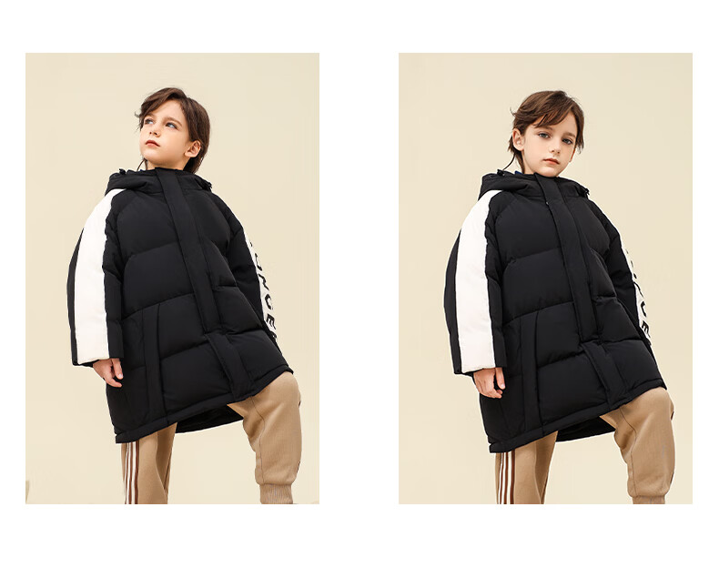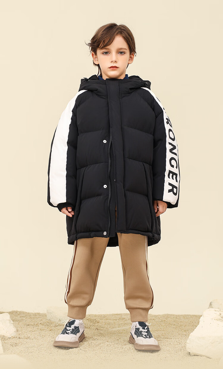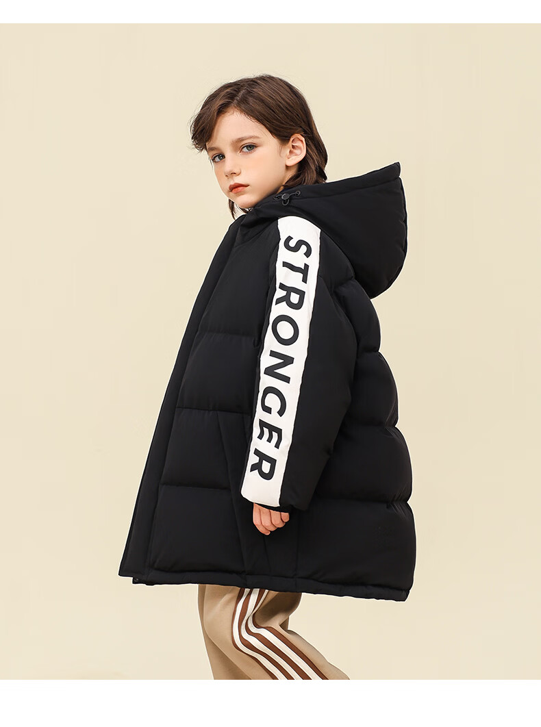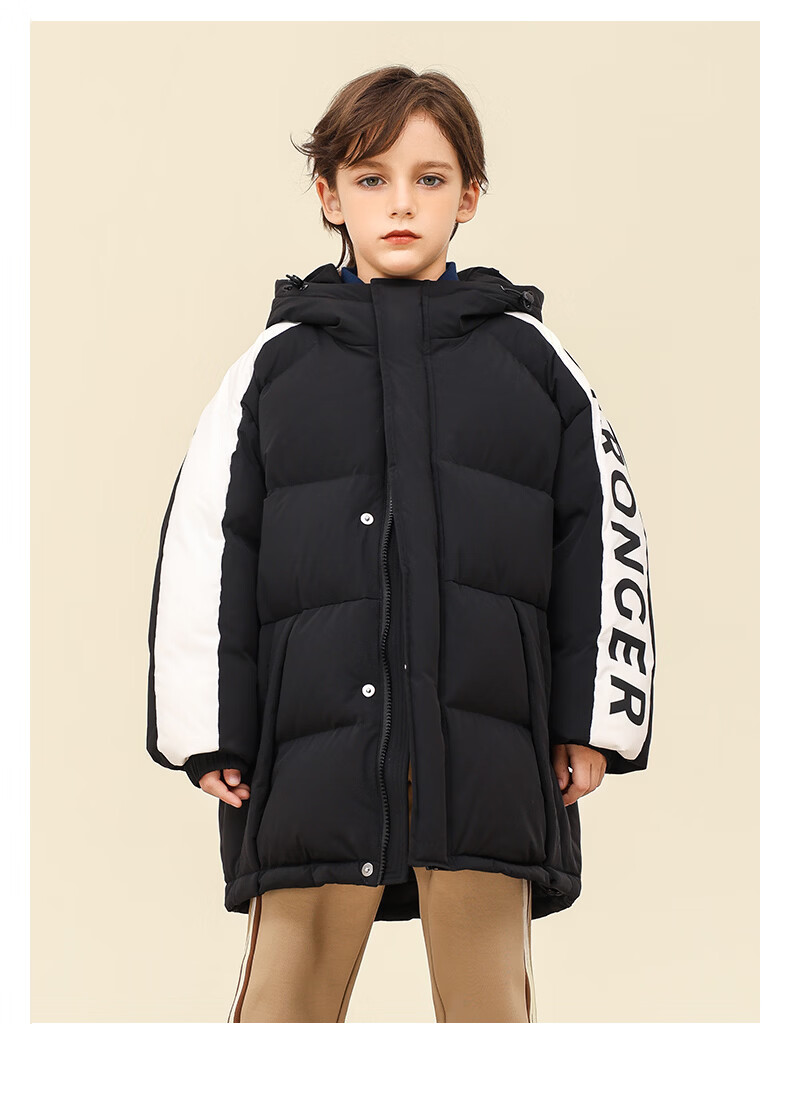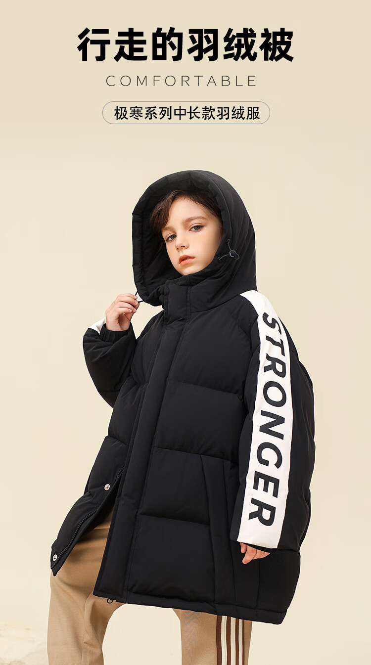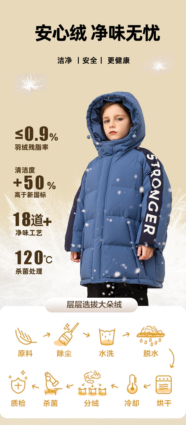 康博儿童男童冬季中长款羽绒服新款宝宝中大童宽松洋气保暖厚外套 牛仔蓝 160