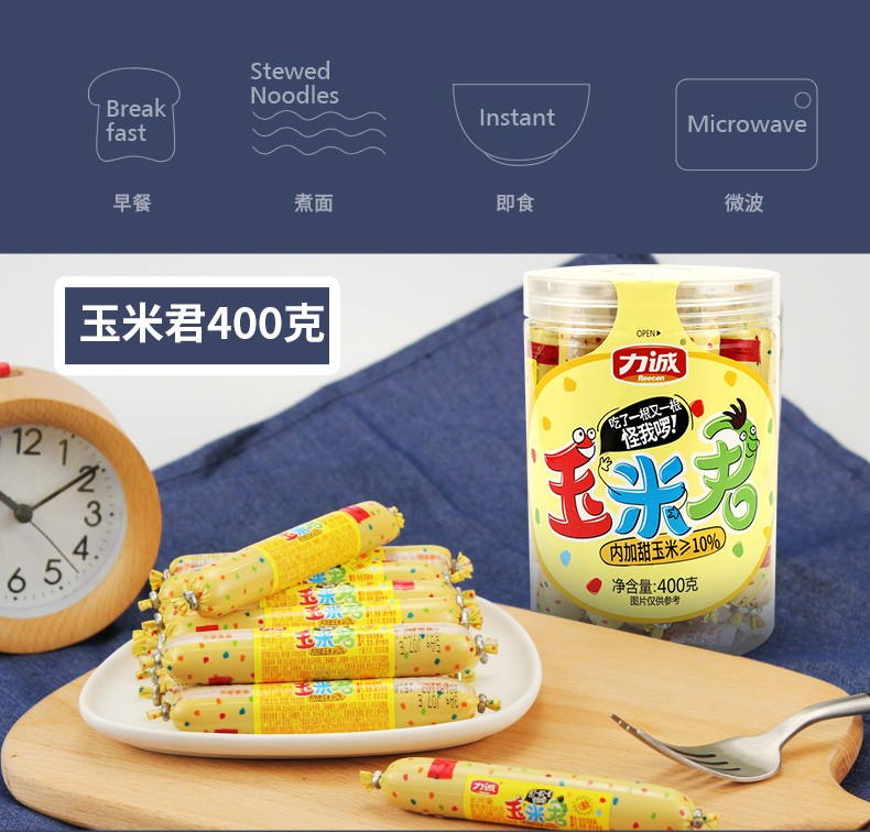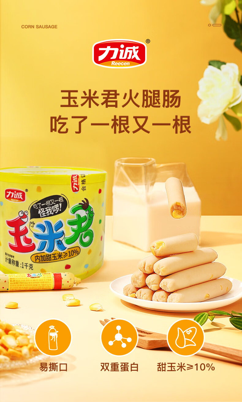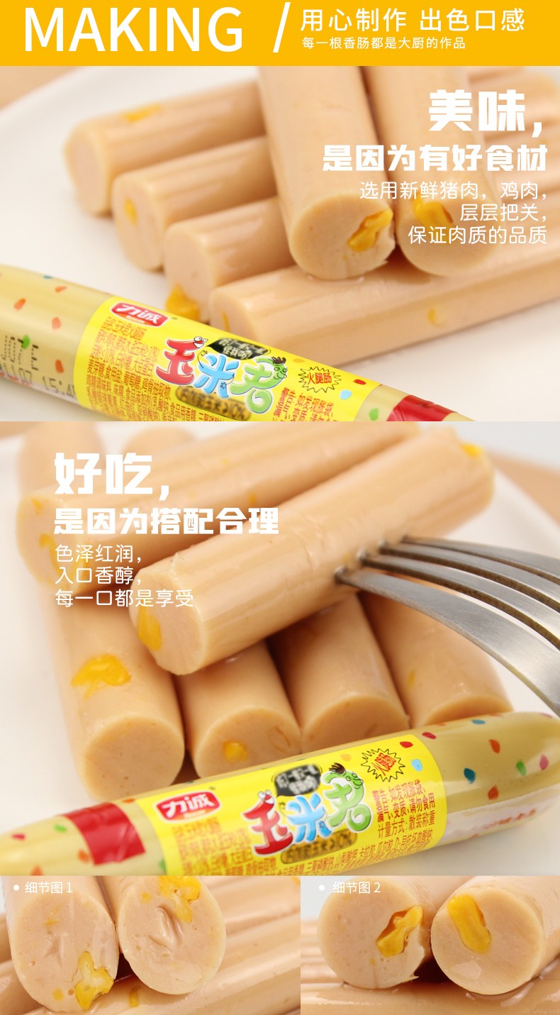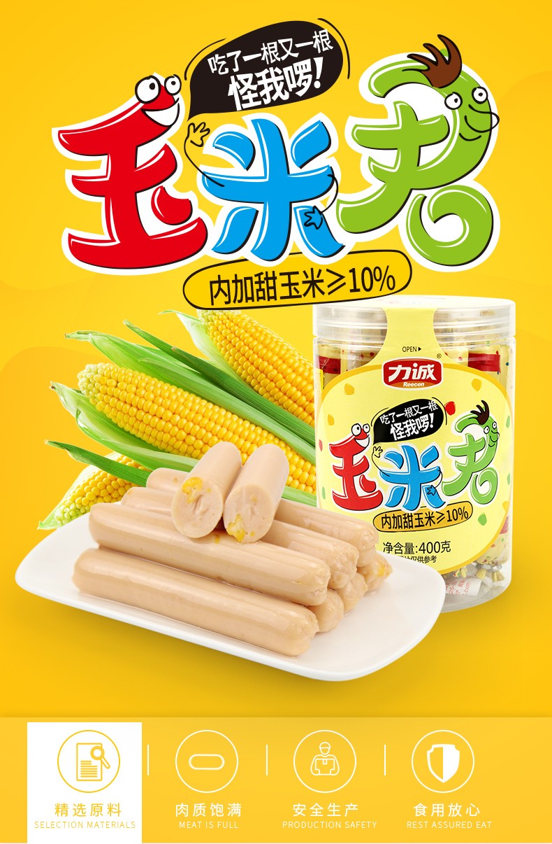 力诚玉米君休闲零食香甜玉米肠即食火腿肠热狗下午茶小香肠 玉米君 20g*50根 清仓版【4月11到期】