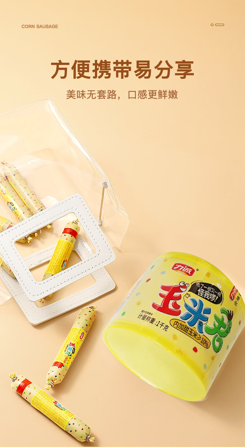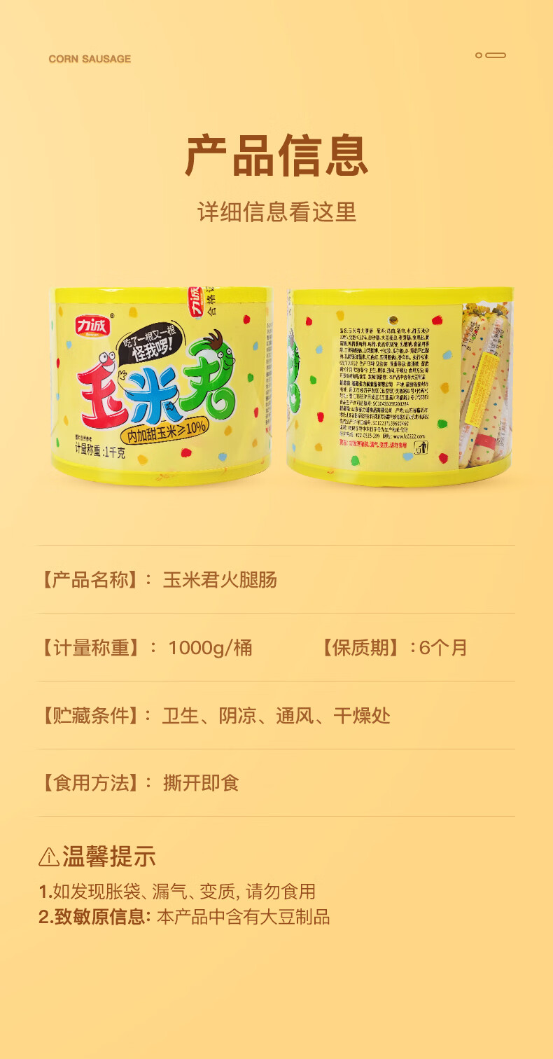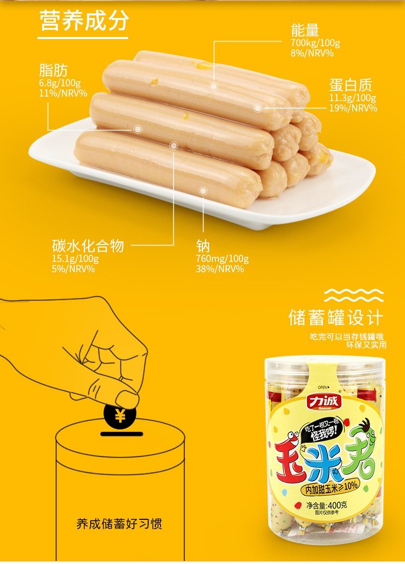 力诚玉米君休闲零食香甜玉米肠即食火腿肠热狗下午茶小香肠 玉米君 20g*50根 清仓版【4月11到期】