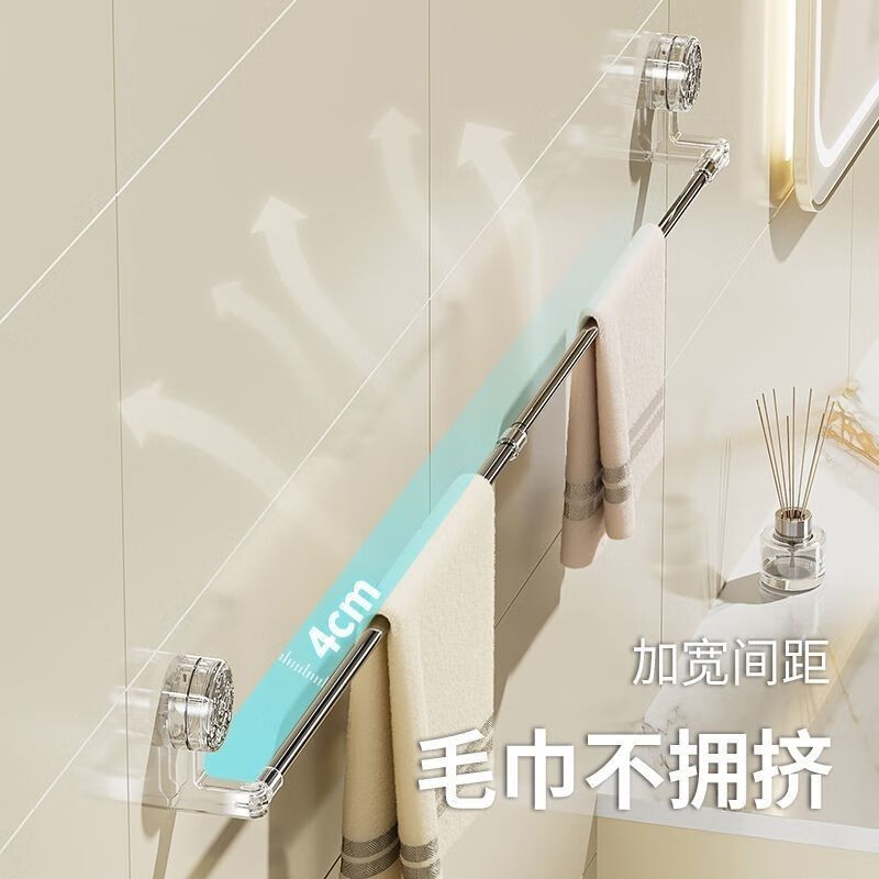 【买一送一】浴室毛巾杆浴巾打孔挂架吸盘毛巾架置物架伸缩收纳 【买一送一】超长伸缩60cm-120cm