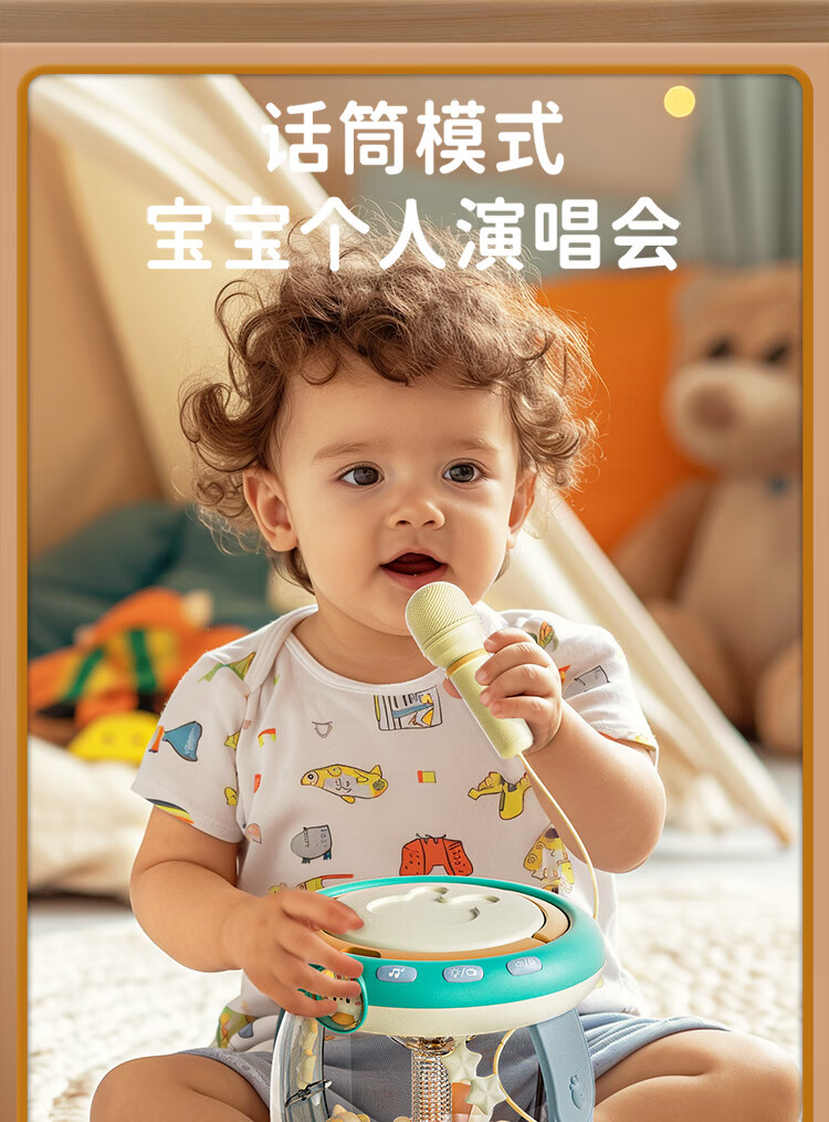 奥智嘉婴儿玩具手拍鼓0-1岁宝宝音乐拍拍鼓早教启蒙故事机周岁新年礼物