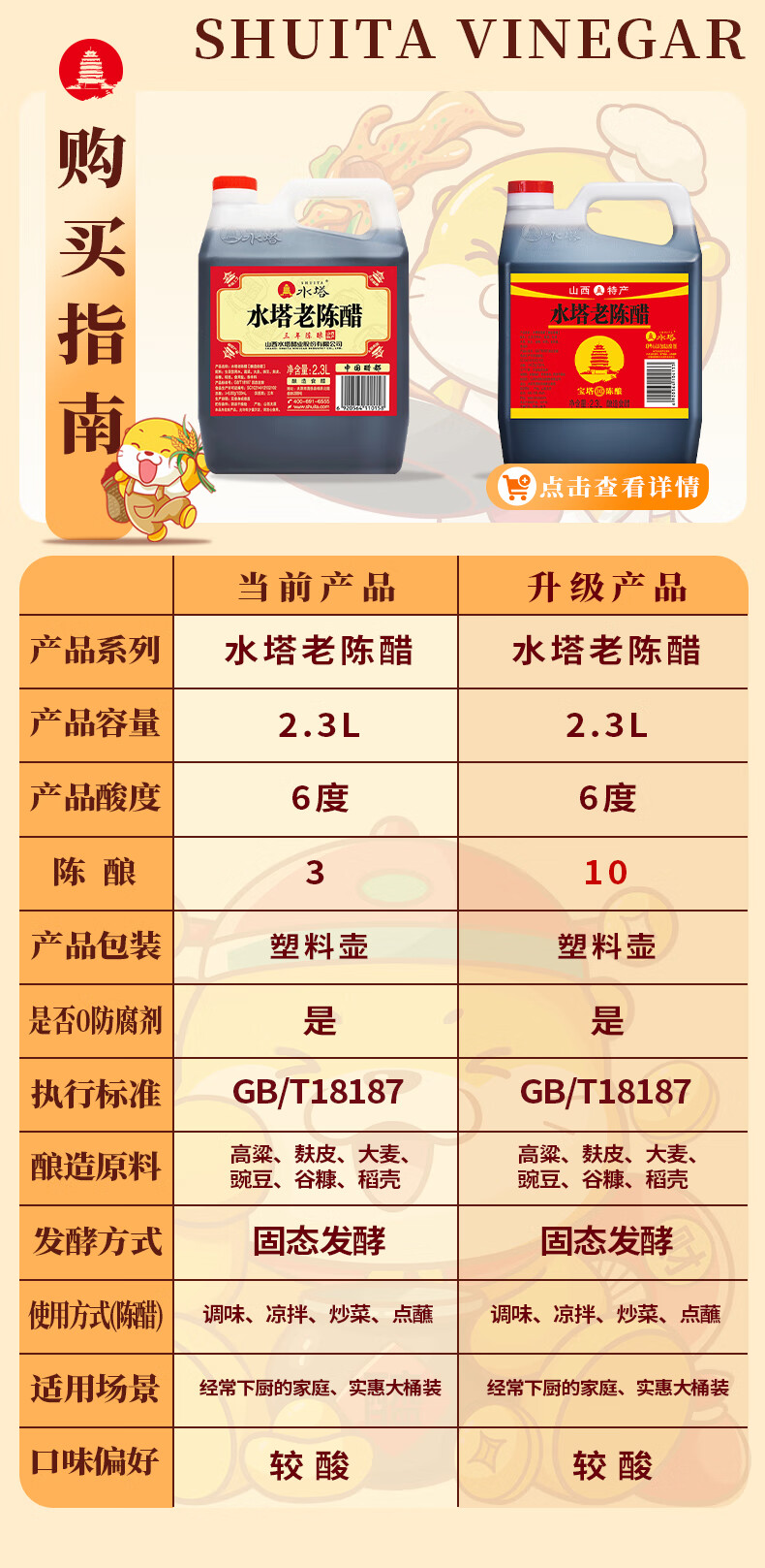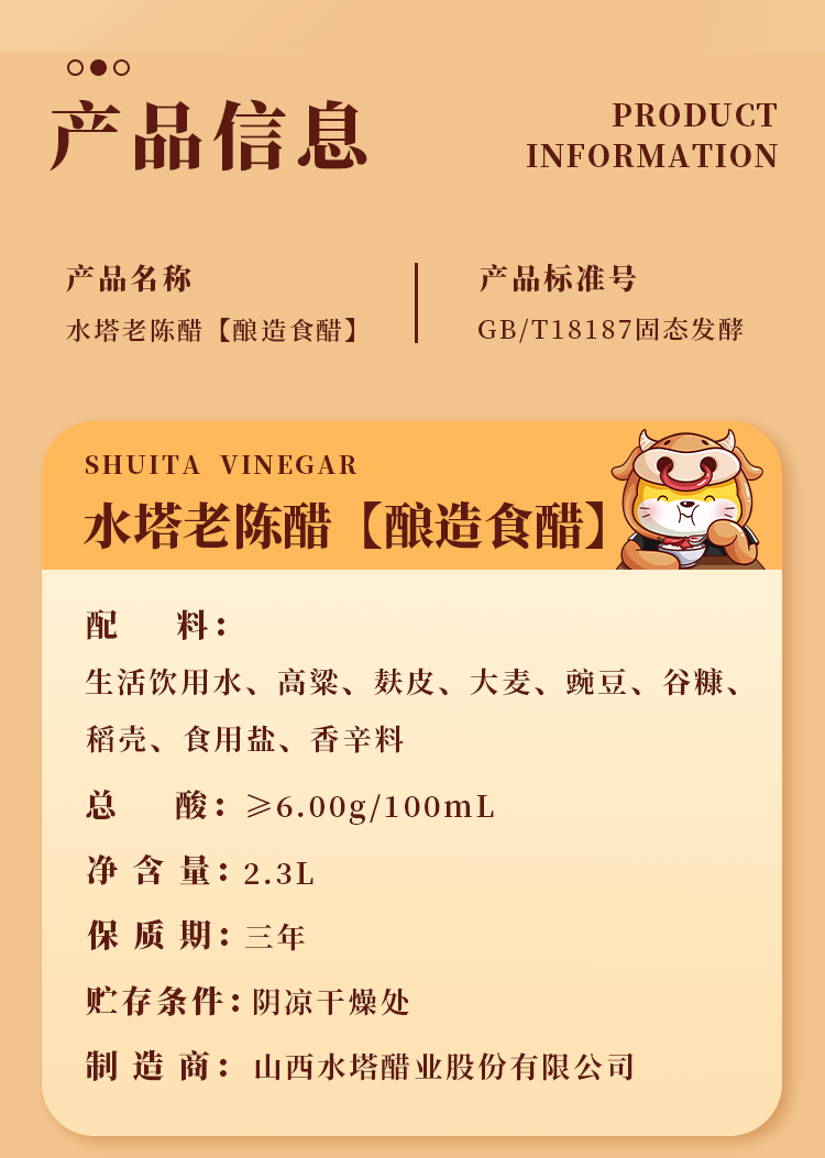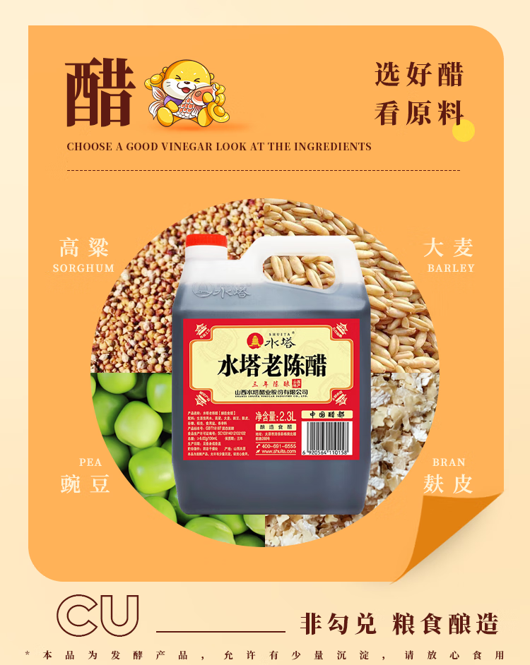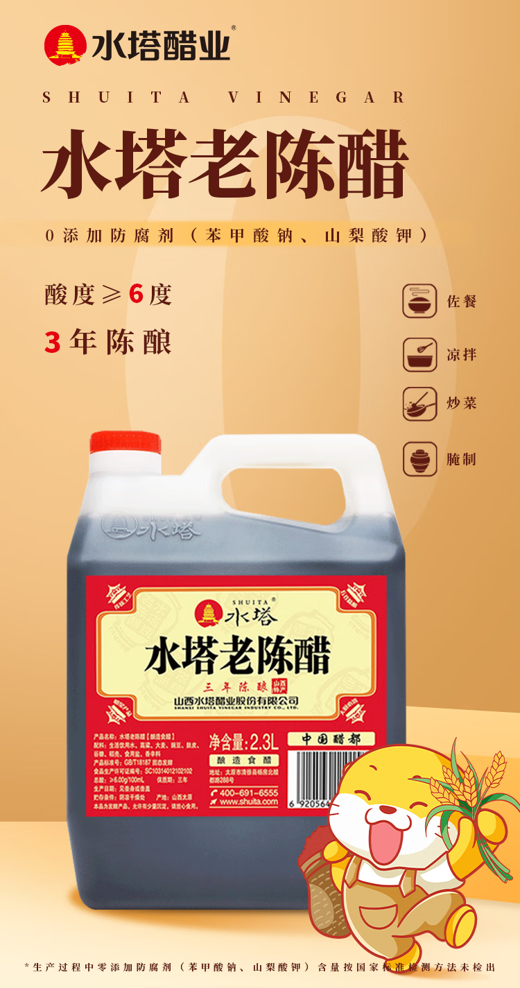 水塔红盖老陈醋6度2.3L【3陈酿 山西醋】家用食醋凉拌调味饺子蘸料