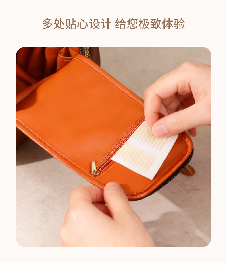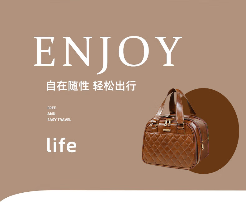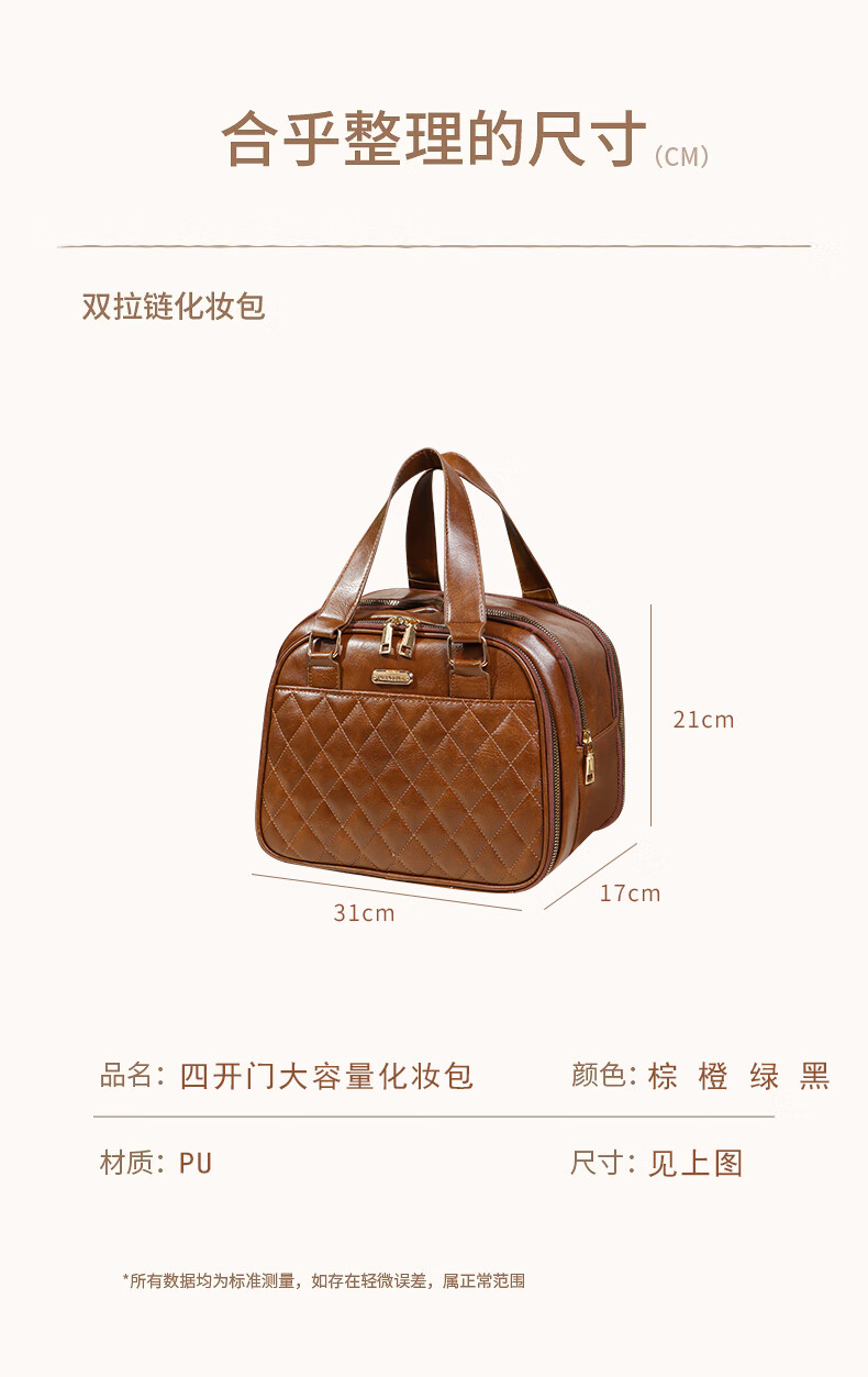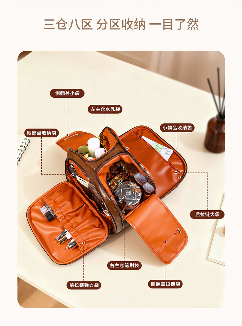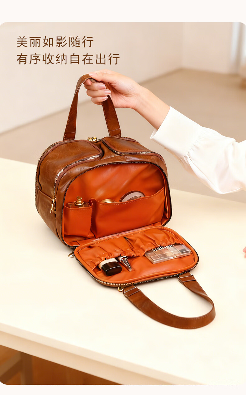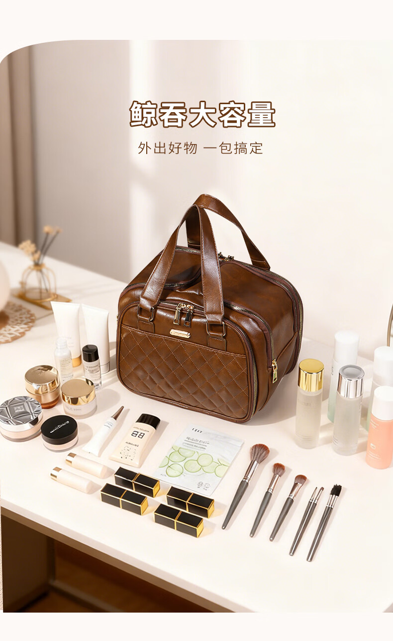 年多多圣诞节礼物高端轻奢手提化妆包女便携洗漱化妆品皮质防水收纳包 美拉德棕【真皮质感】